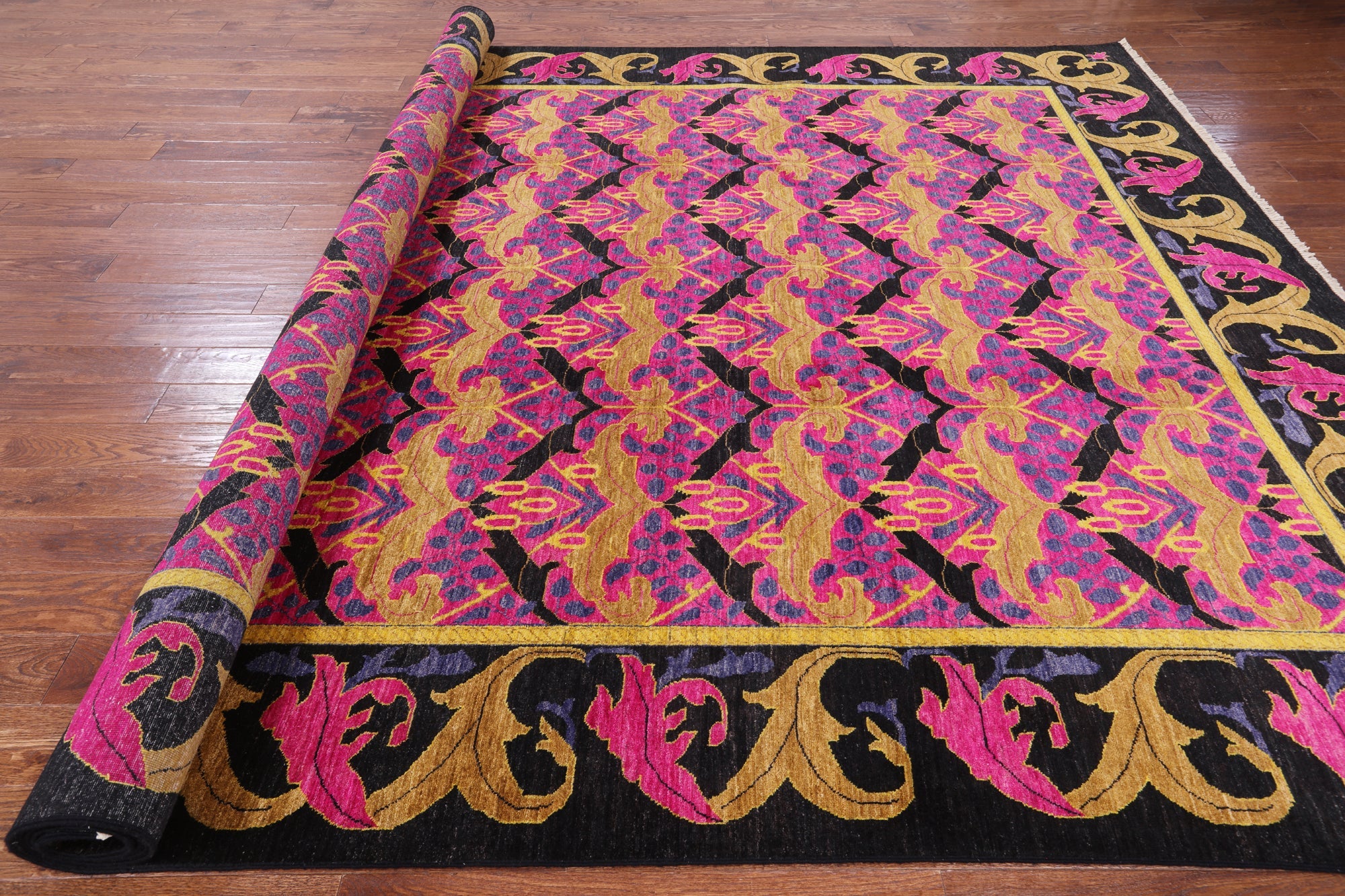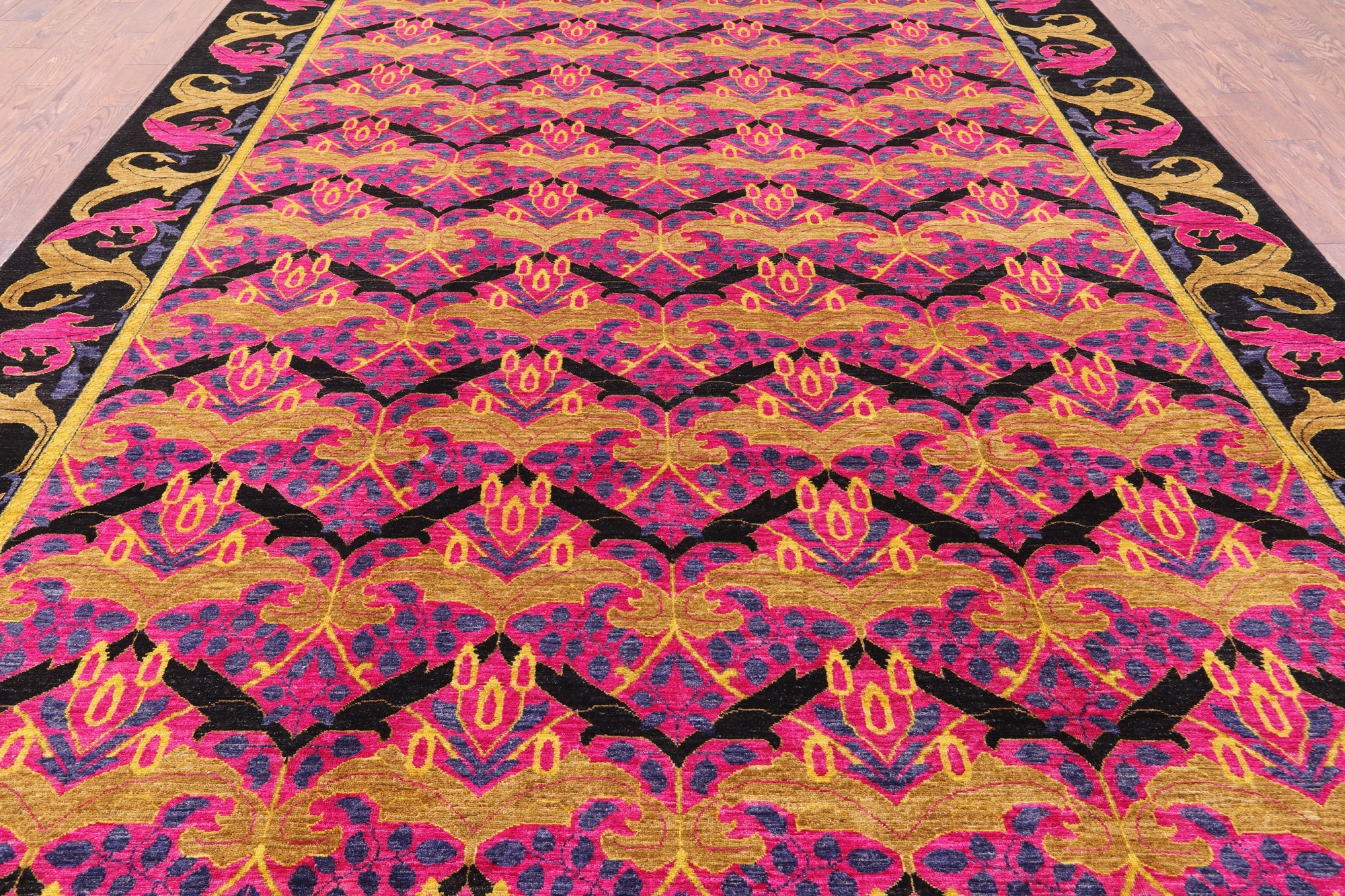 William Morris design are part of arts and crafts movement often including natural forms. These 19th and early 20th century designs are distinctive for their stylized natural forms, their symmetry and their vibrant colors. William Morris patterns are based on nature such thistles, ginkgo leaves, willow trees and flowers. These modern hand knotted rugs are woven with high quality wool, silk or both.