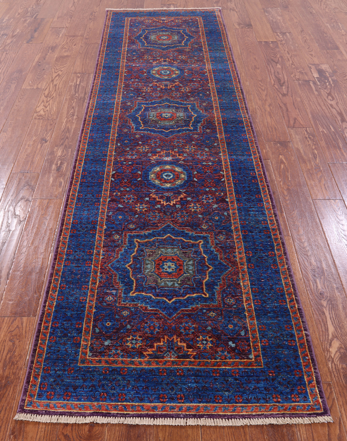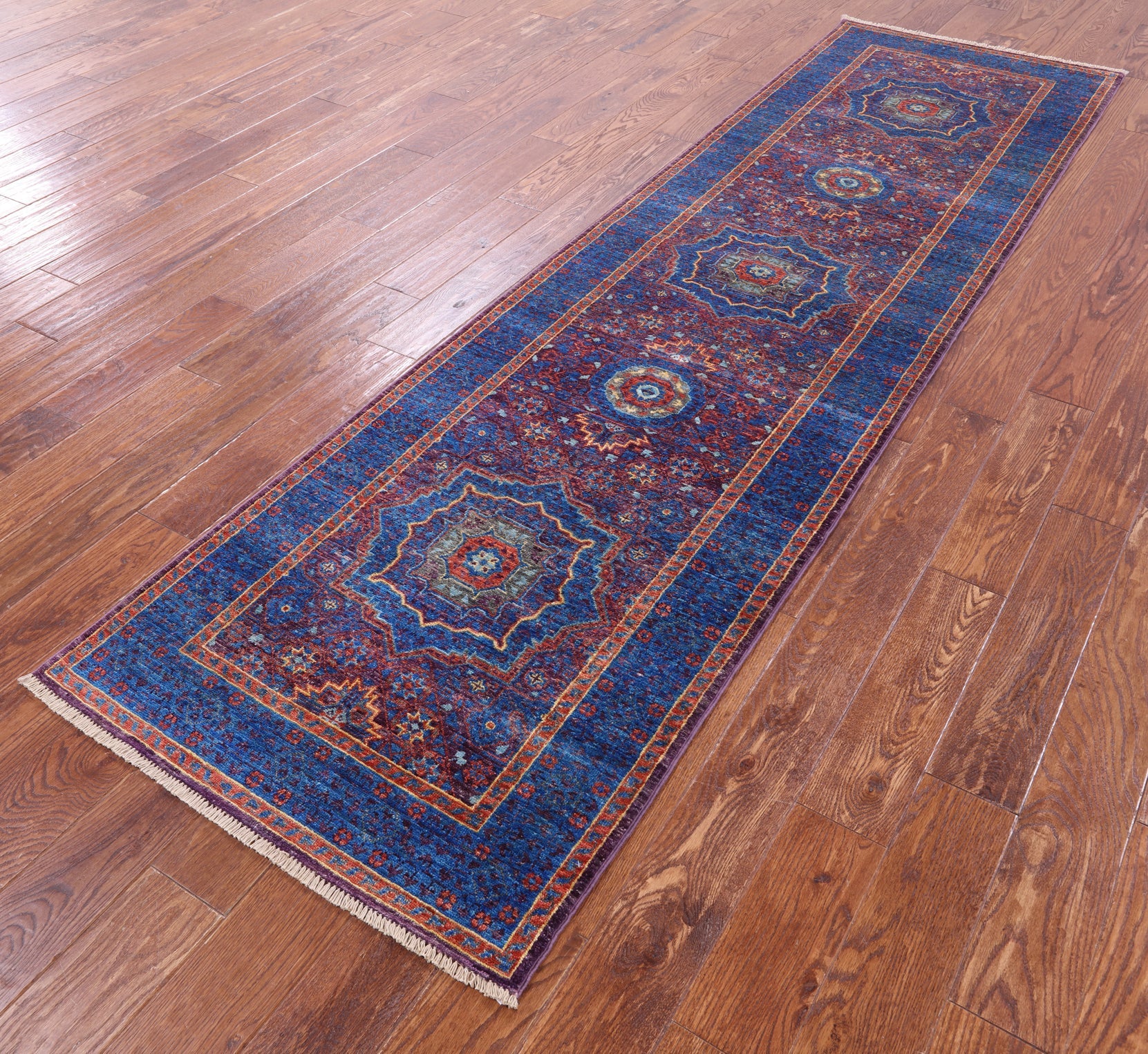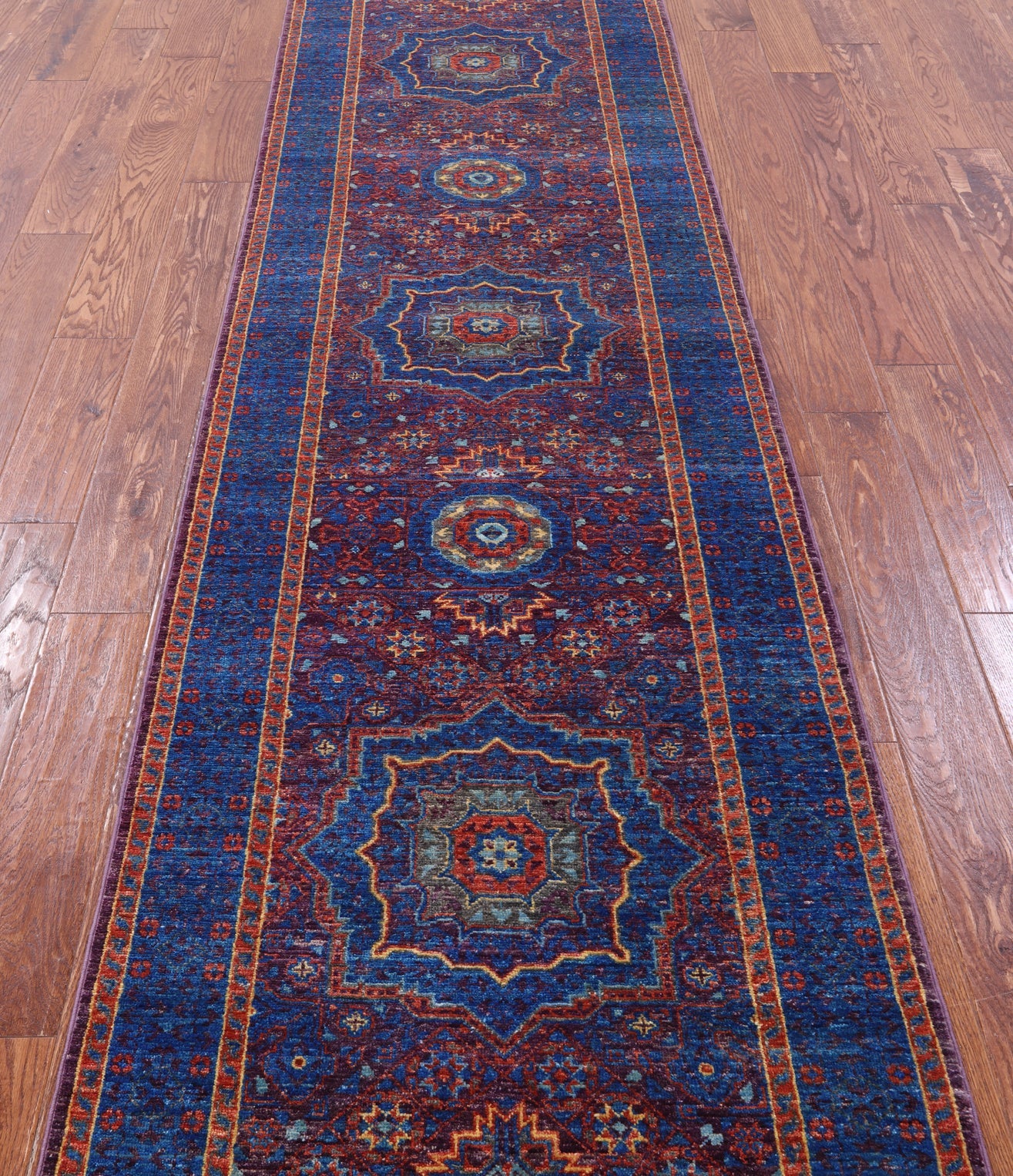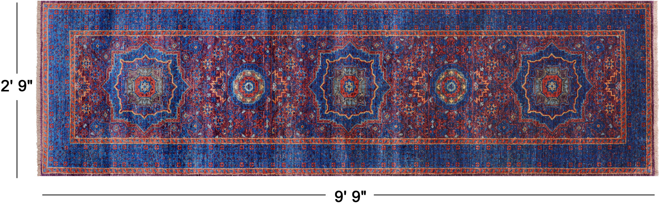 Purple Geometric Mamluk Hand-Knotted Wool Runner Rug 2' 9" X 9' 9" - Q12278 is backordered and will ship as soon as it is back in stock.