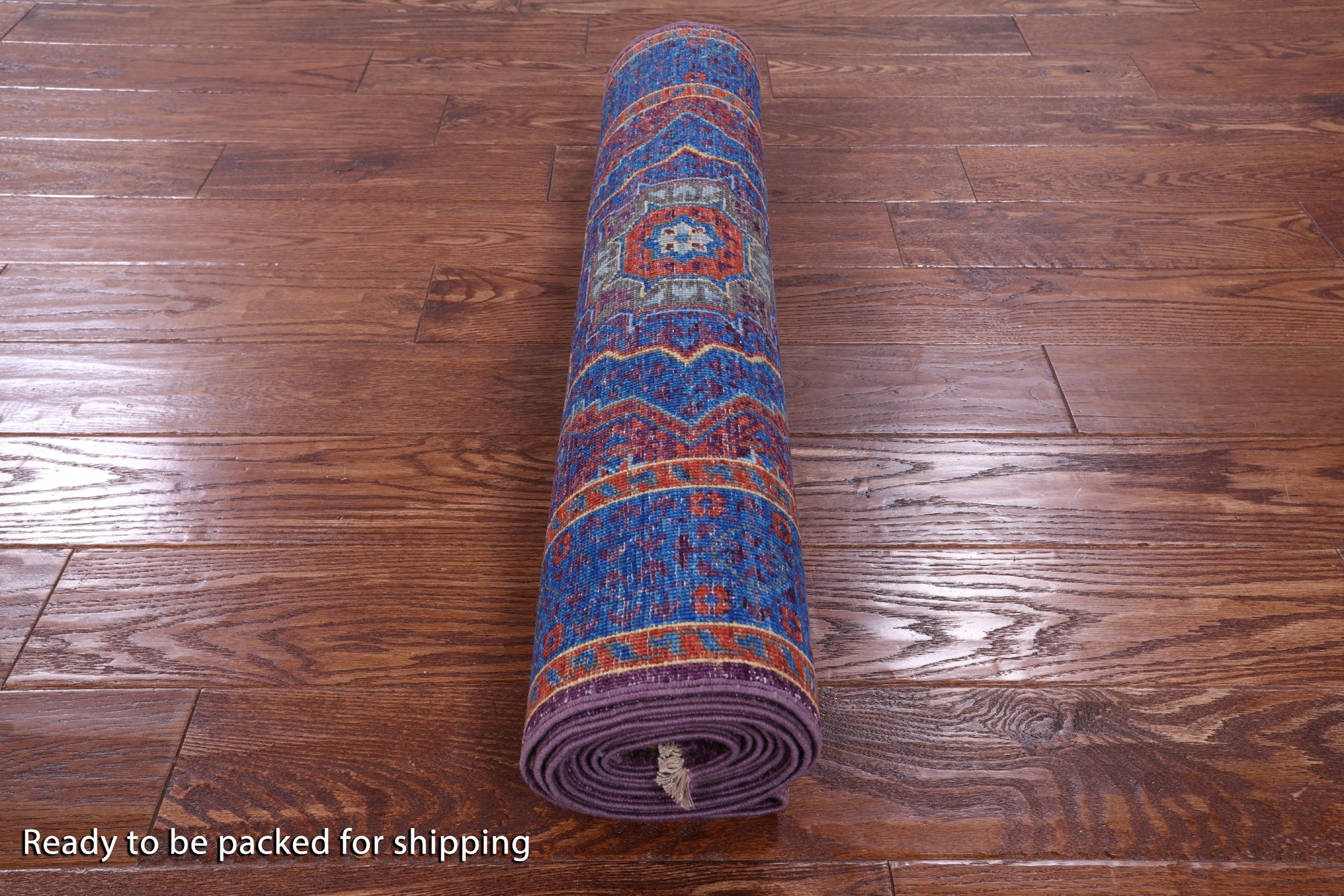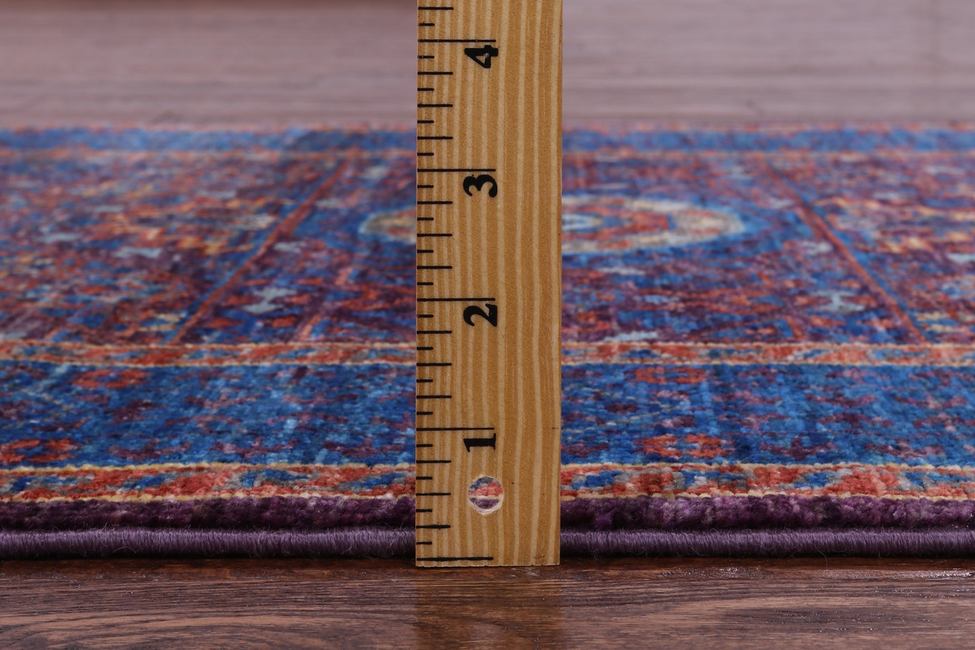 Purple Geometric Mamluk Hand-Knotted Wool Runner Rug 2' 9" X 9' 9" - Q12278