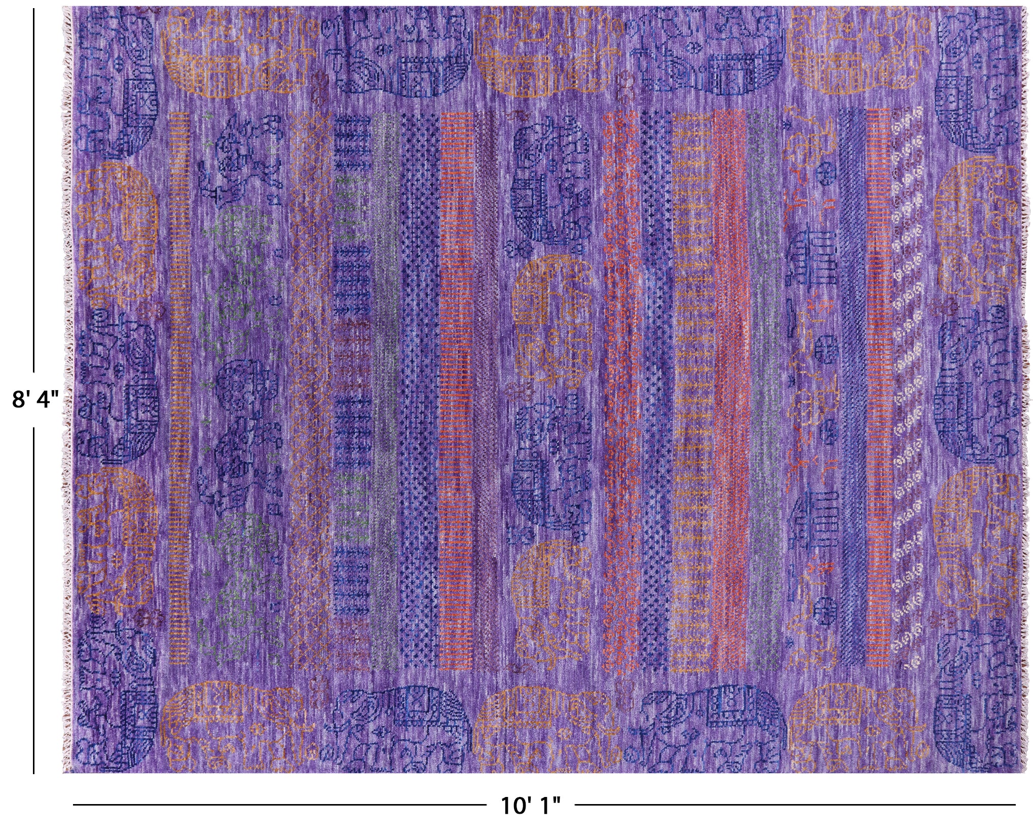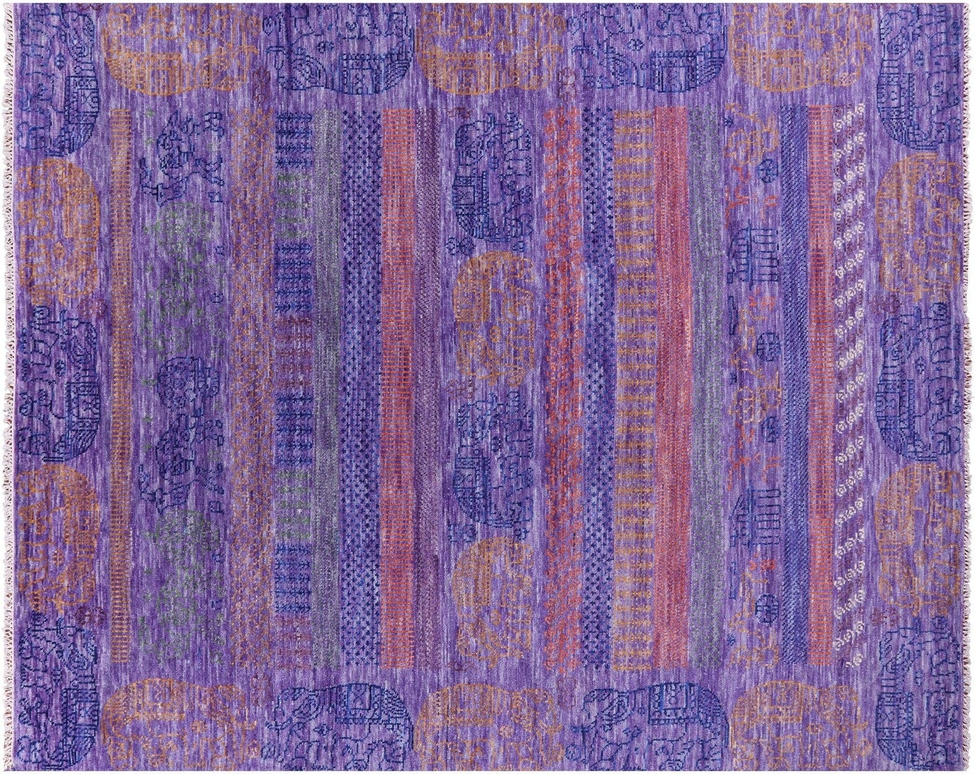 Purple 8' 4" X 10' 1" Persian Gabbeh Elephant Design Handmade Wool Rug - Q13623