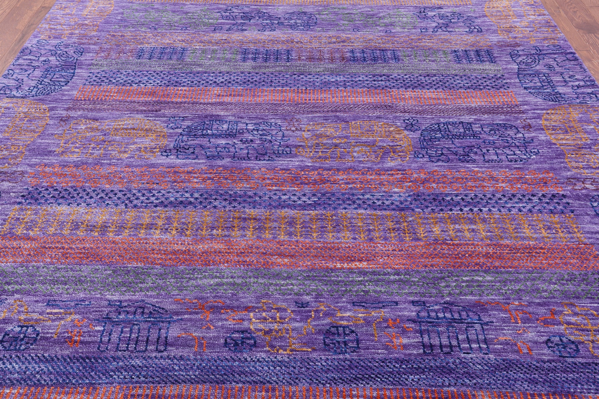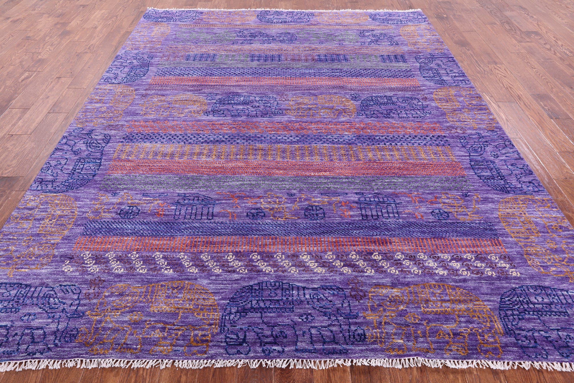 Purple 8' 4" X 10' 1" Persian Gabbeh Elephant Design Handmade Wool Rug - Q13623 is backordered and will ship as soon as it is back in stock.
