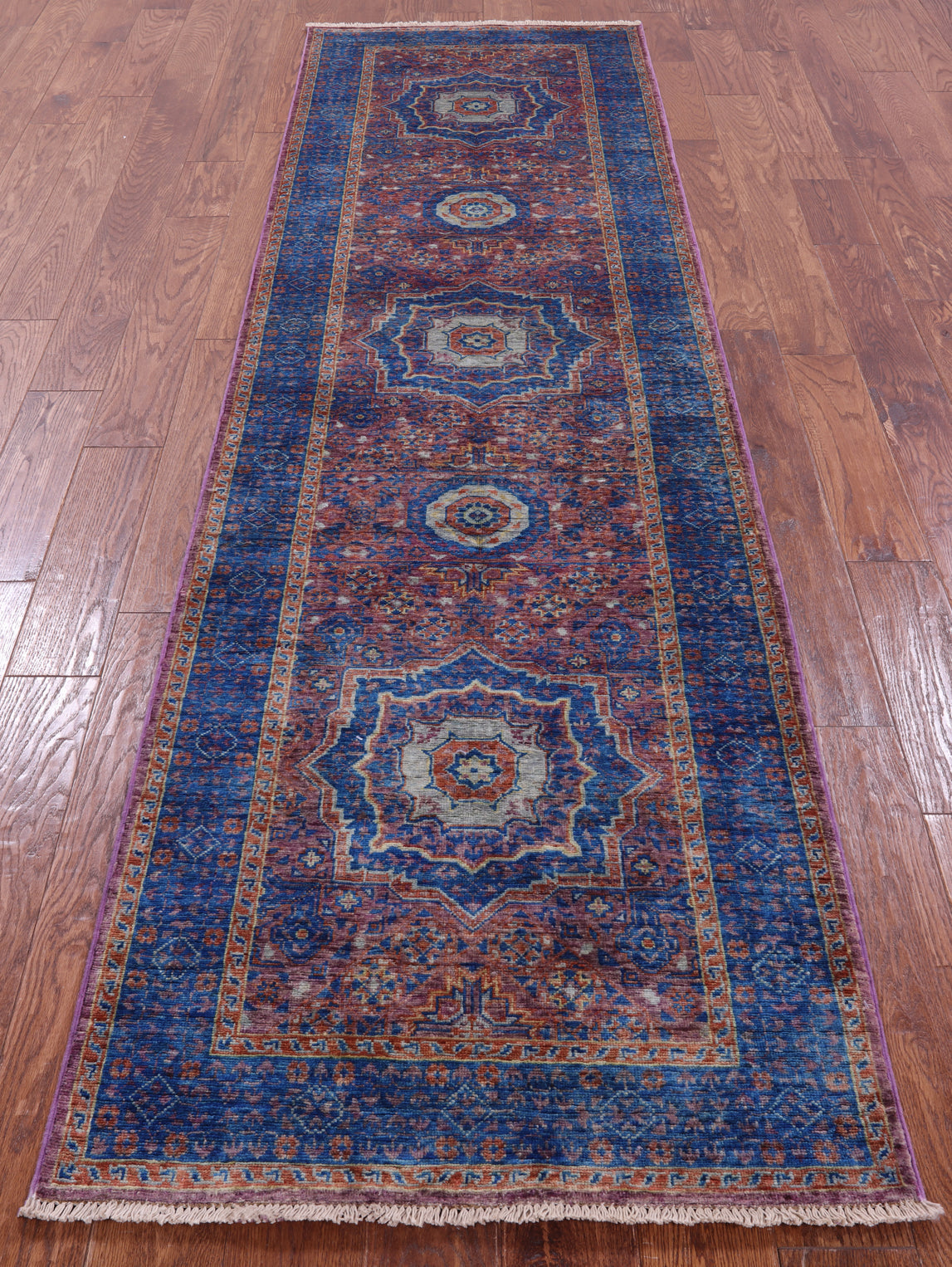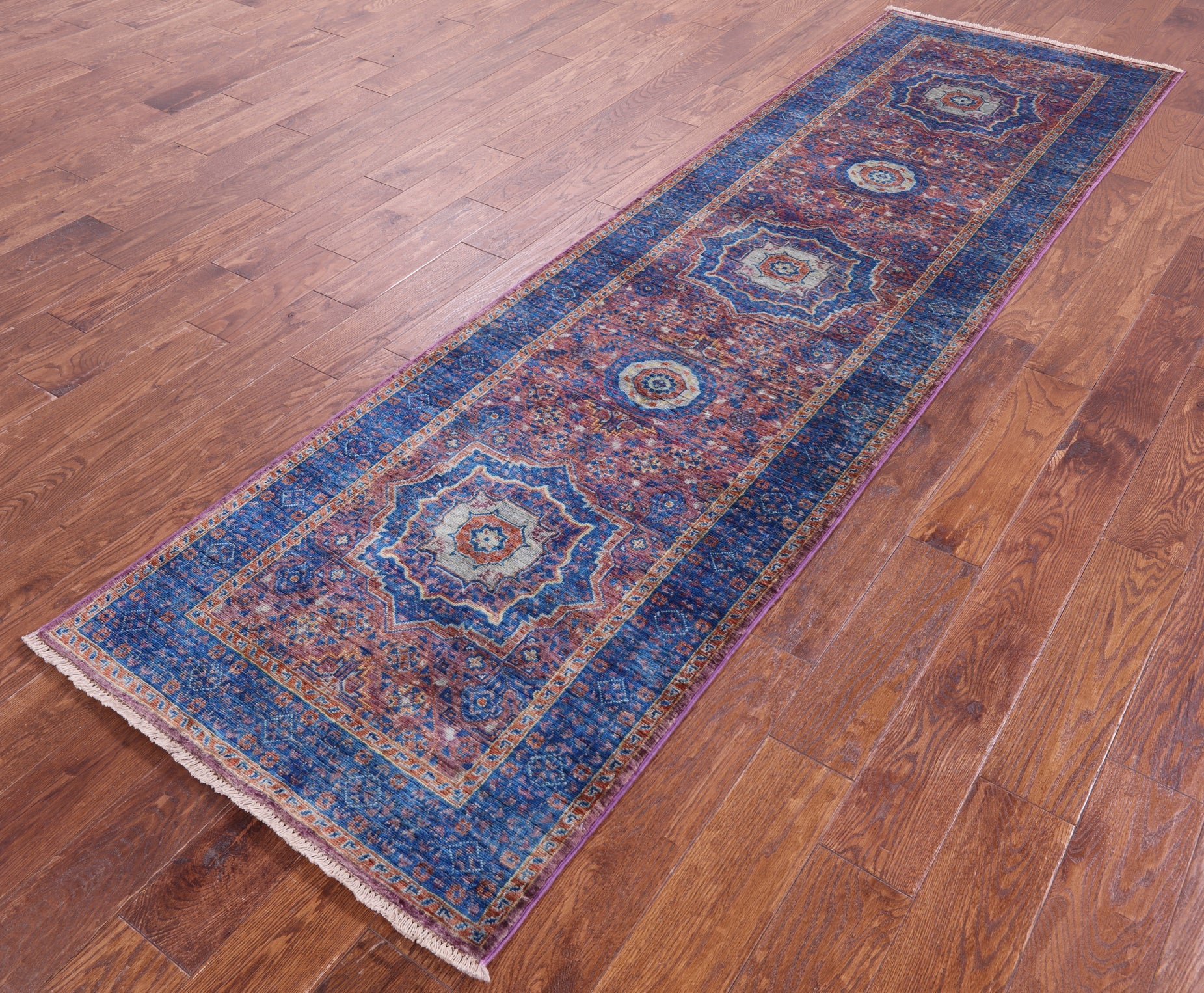 Purple Runner Mamluk Hand-Knotted Wool Rug 2' 9" X 9' 9" - Q14181