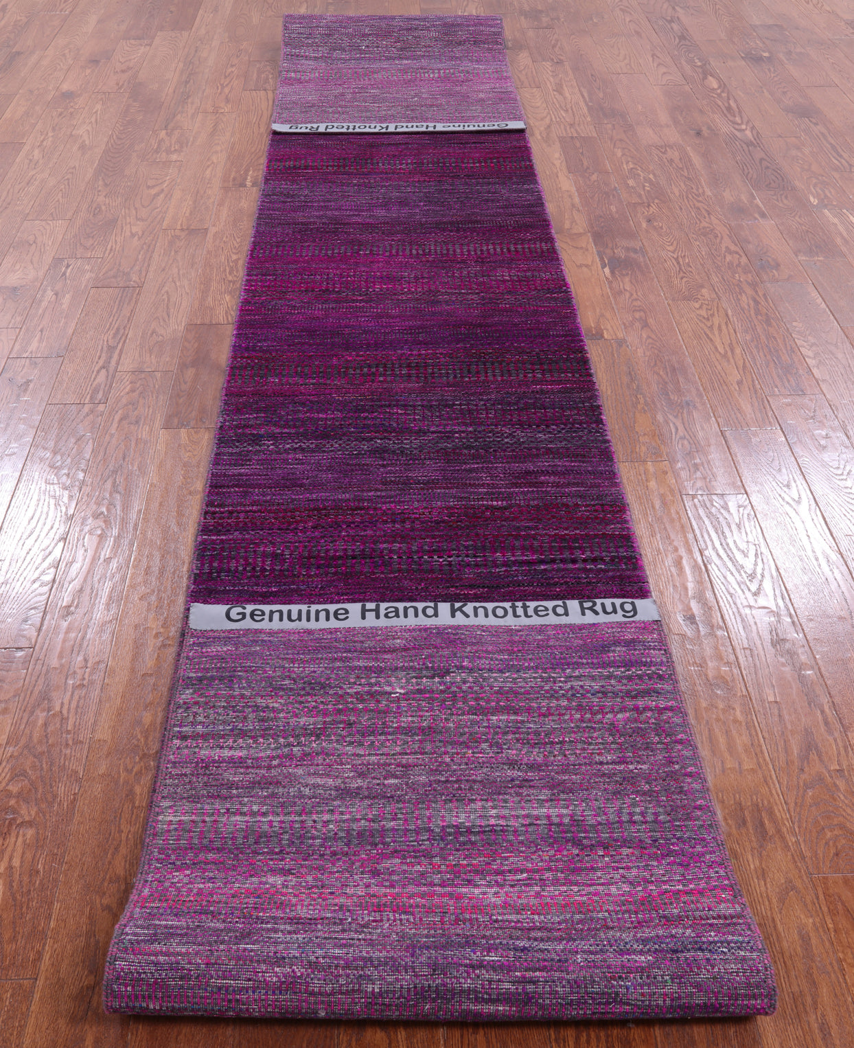 Purple Super Savannah Gabbeh Wool & Silk Hand Knotted Runner Rug 2' 7" X 18' 1" - Q6884