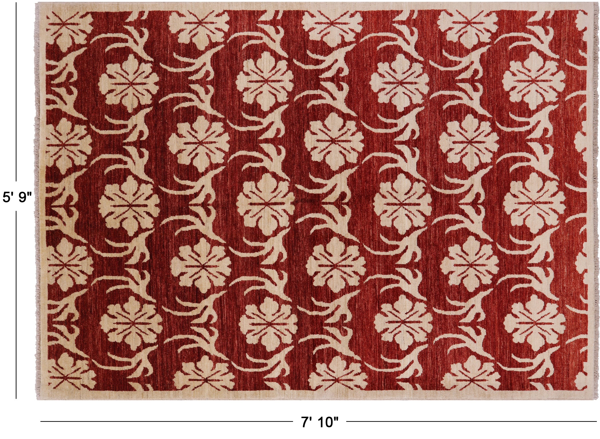 Red 5' 9" X 7' 10" Hand Knotted Persian Gabbeh Wool Rug - H8421