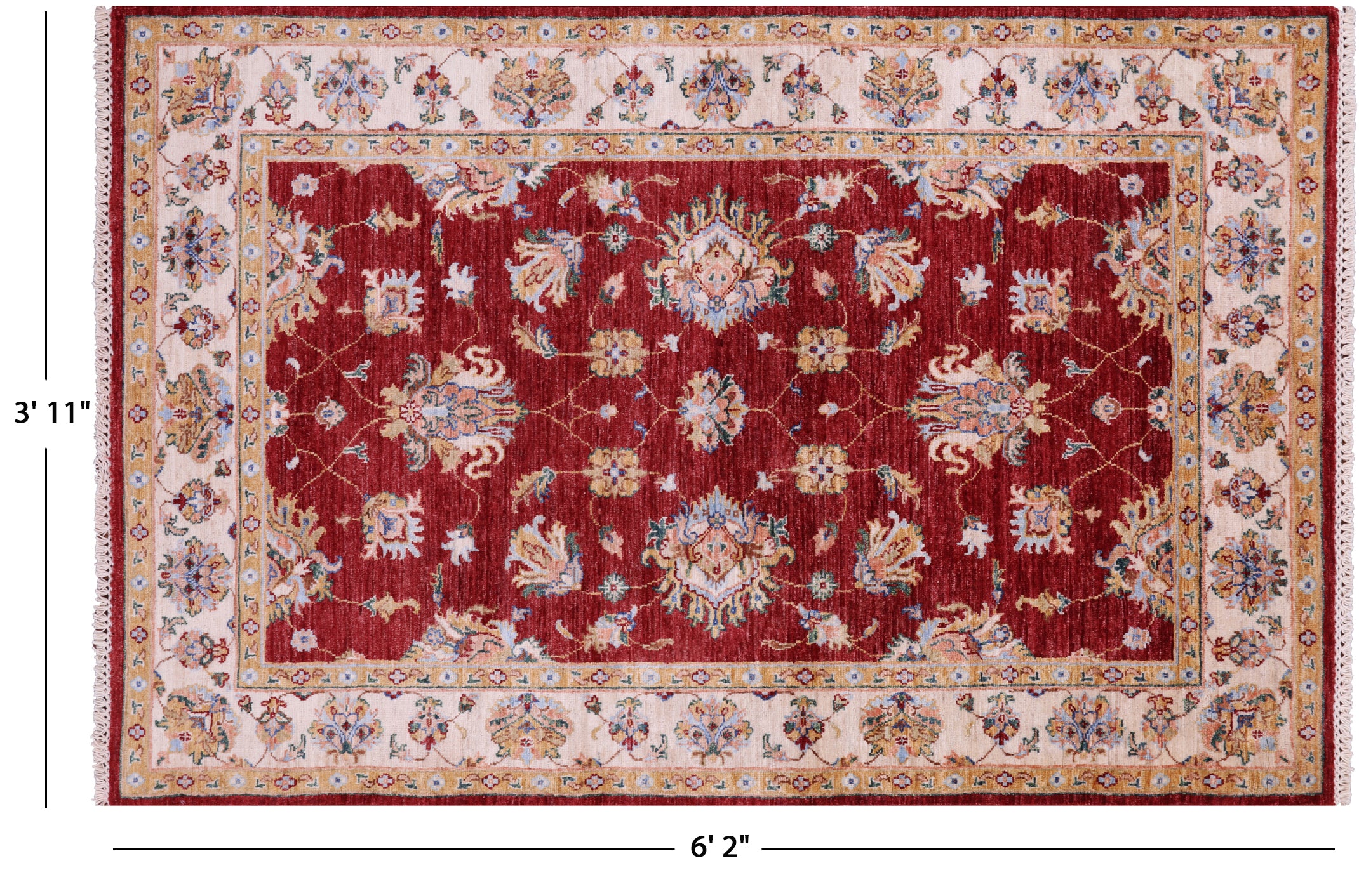 Red Hand-Knotted Persian Tabriz Wool Rug 3' 11" X 6' 2" - Q12785