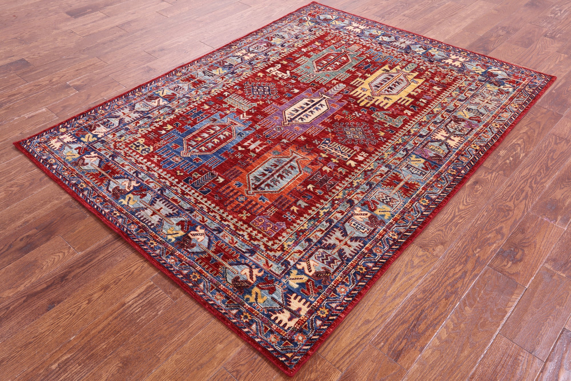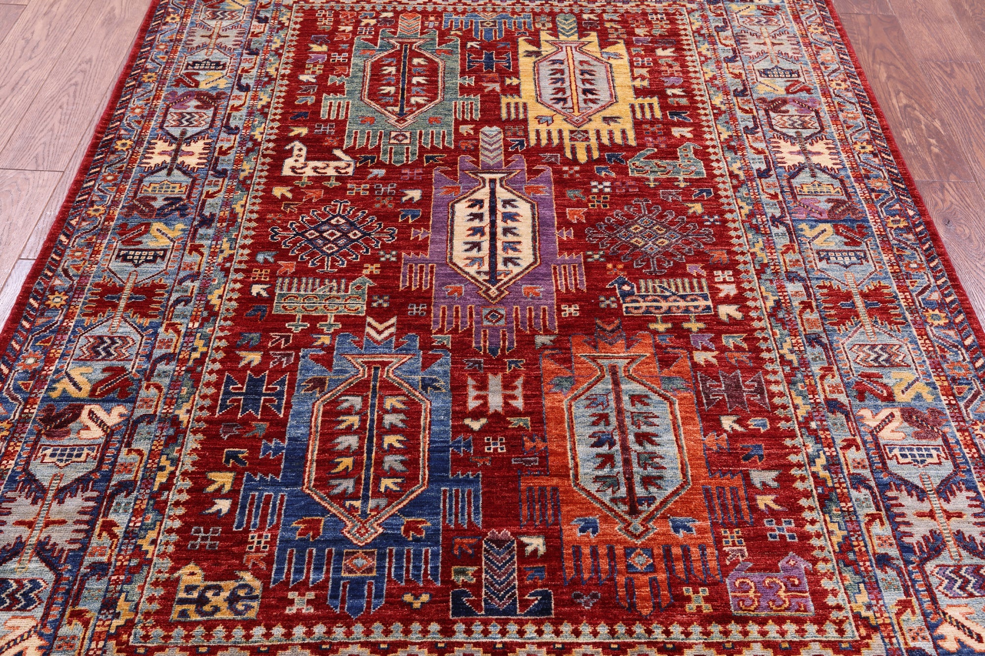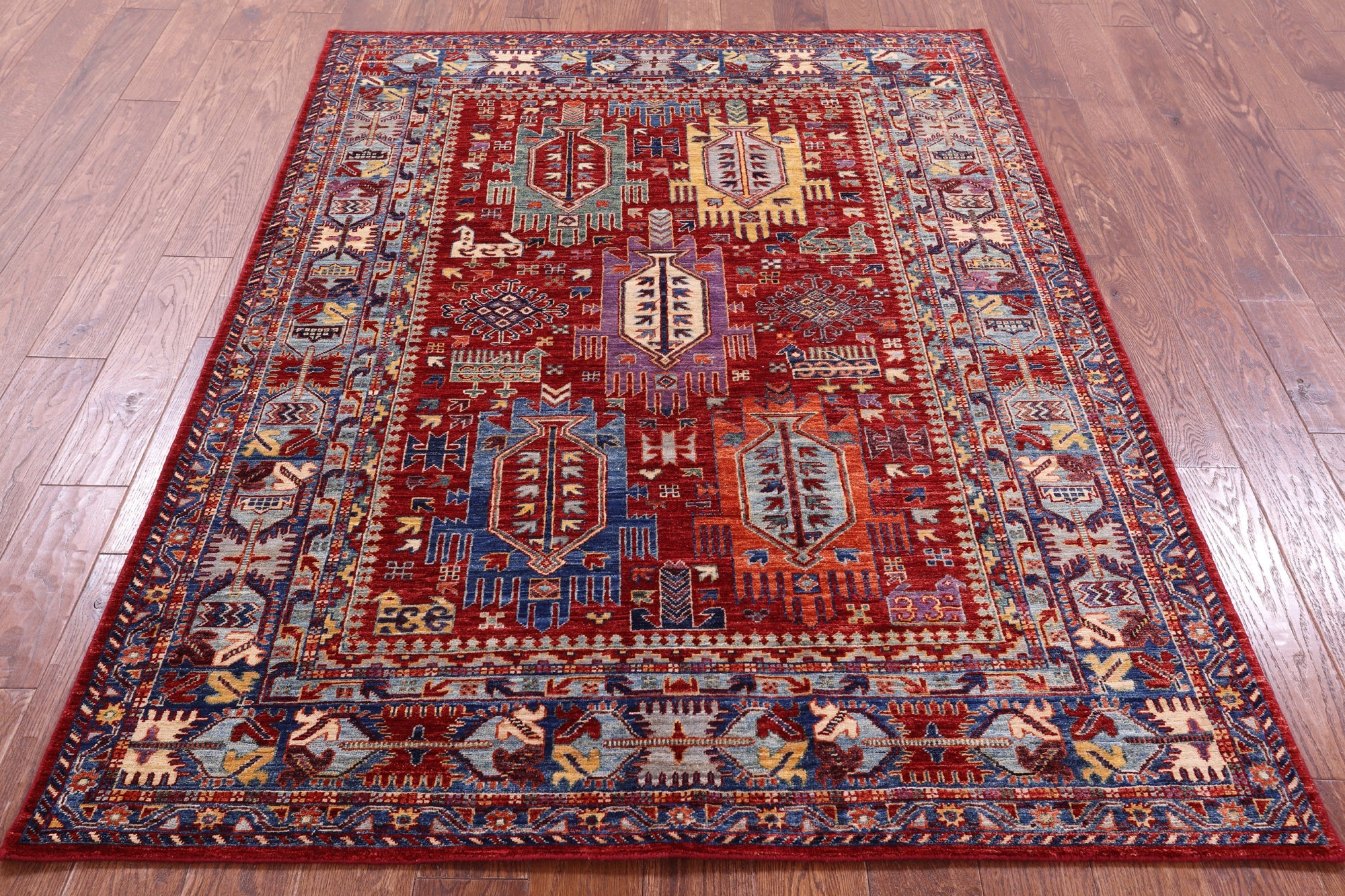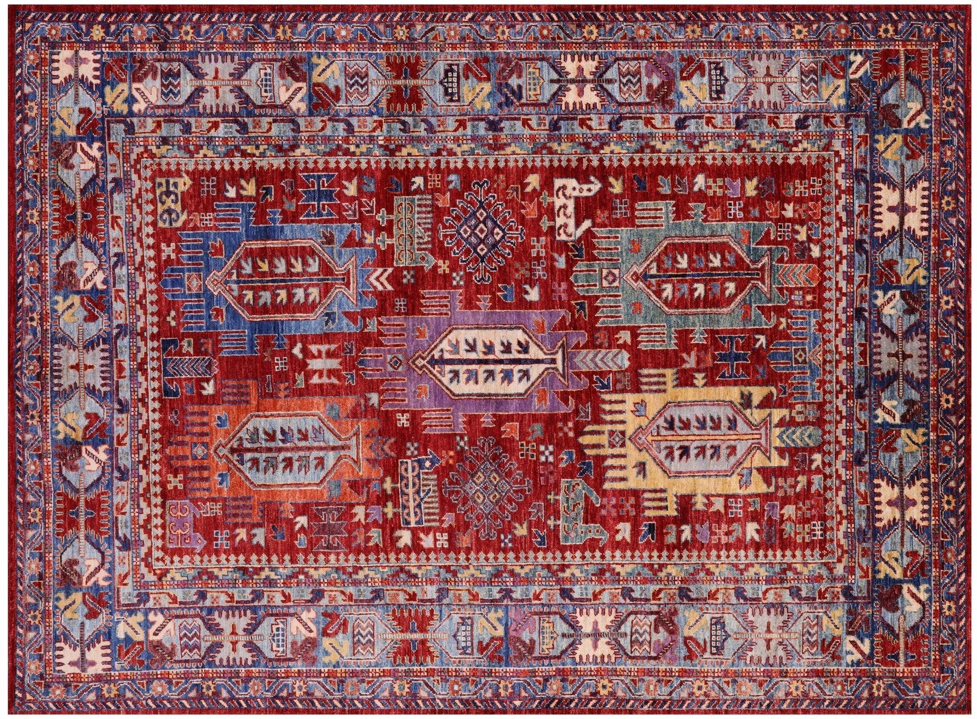 Red 5' 0" X 6' 9" Hand-Knotted Tribal Fine Serapi Wool Rug - Q20942
