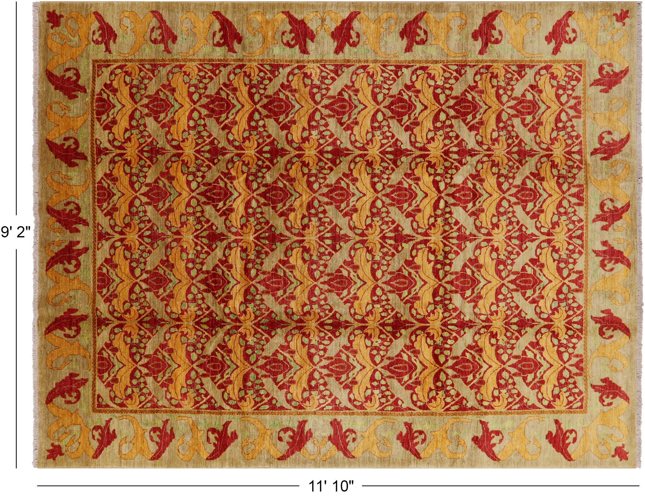 Red 9' 2" X 11' 10" Hand-Knotted William Morris Area Rug - P5221
