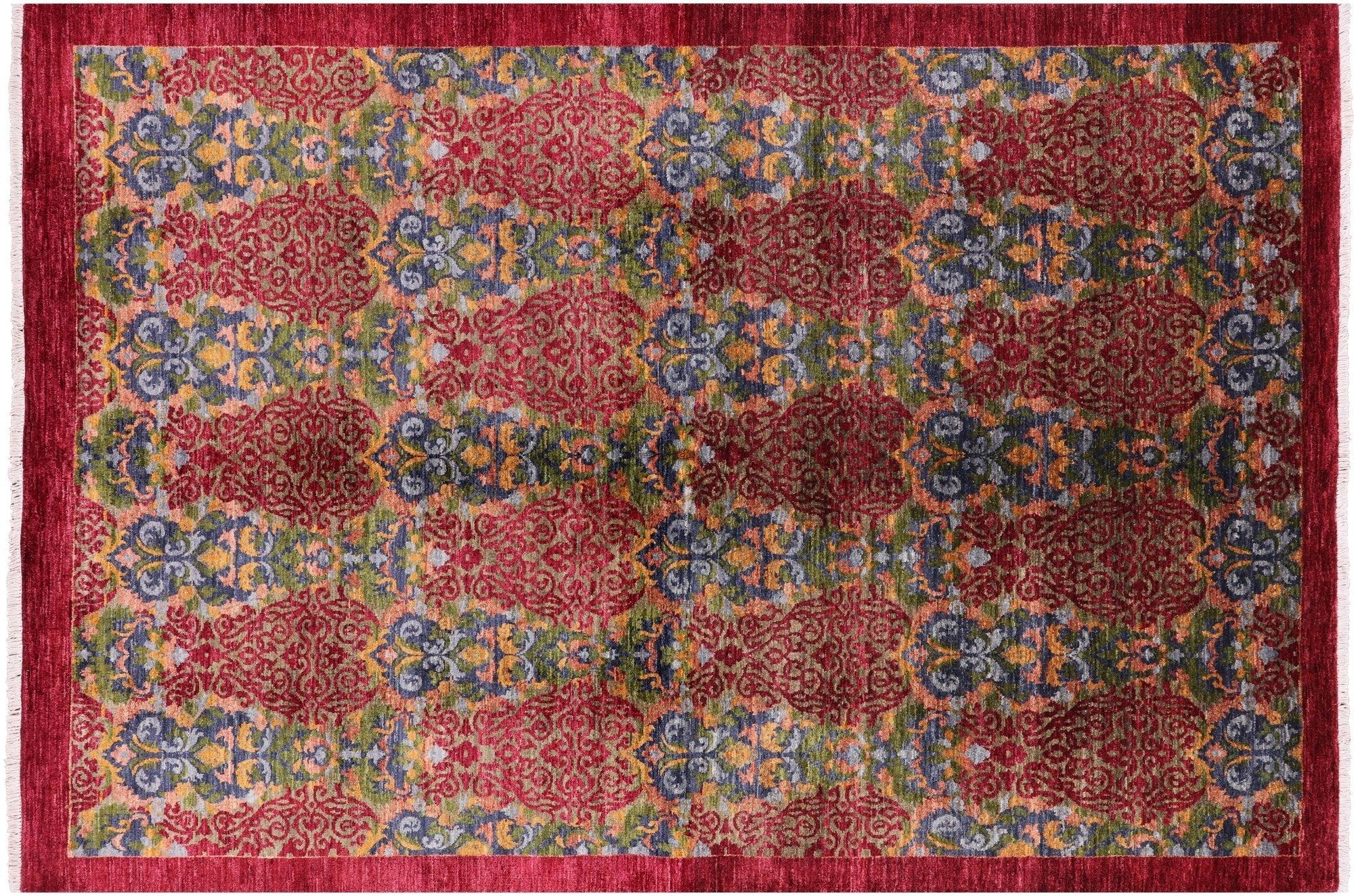 Red Hand Knotted William Morris Wool Rug 5' 8" X 9' 2" - P7078