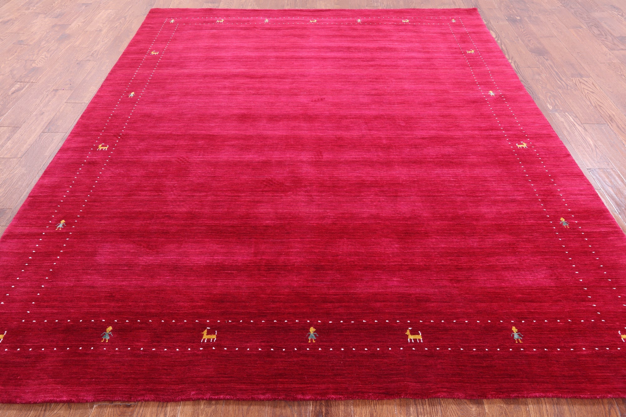 Red Hand Knotted Wool Persian Gabbeh Rug 8' 0" X 10' 0" - Q15219