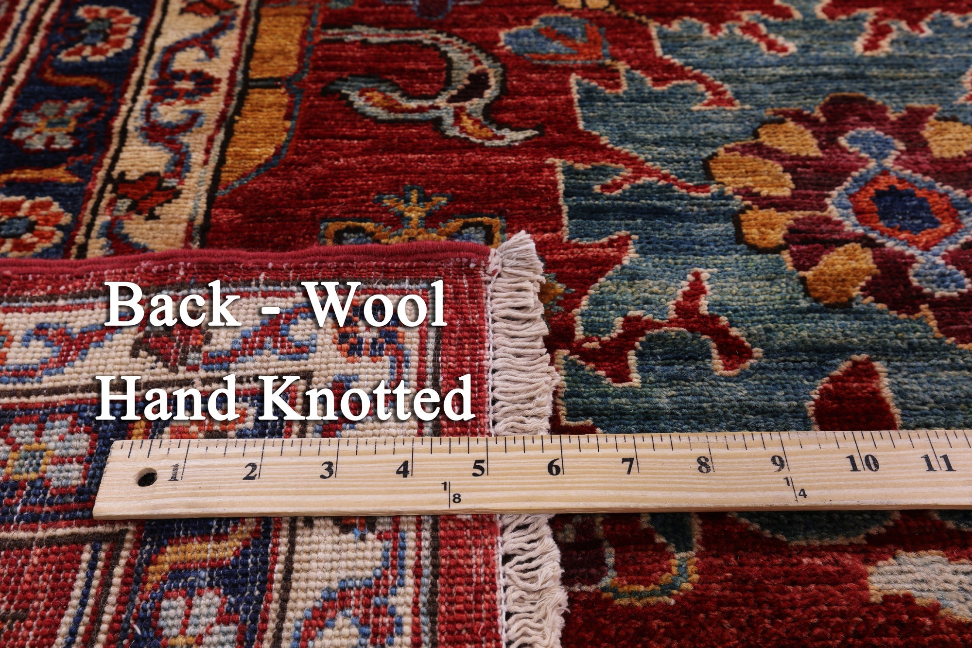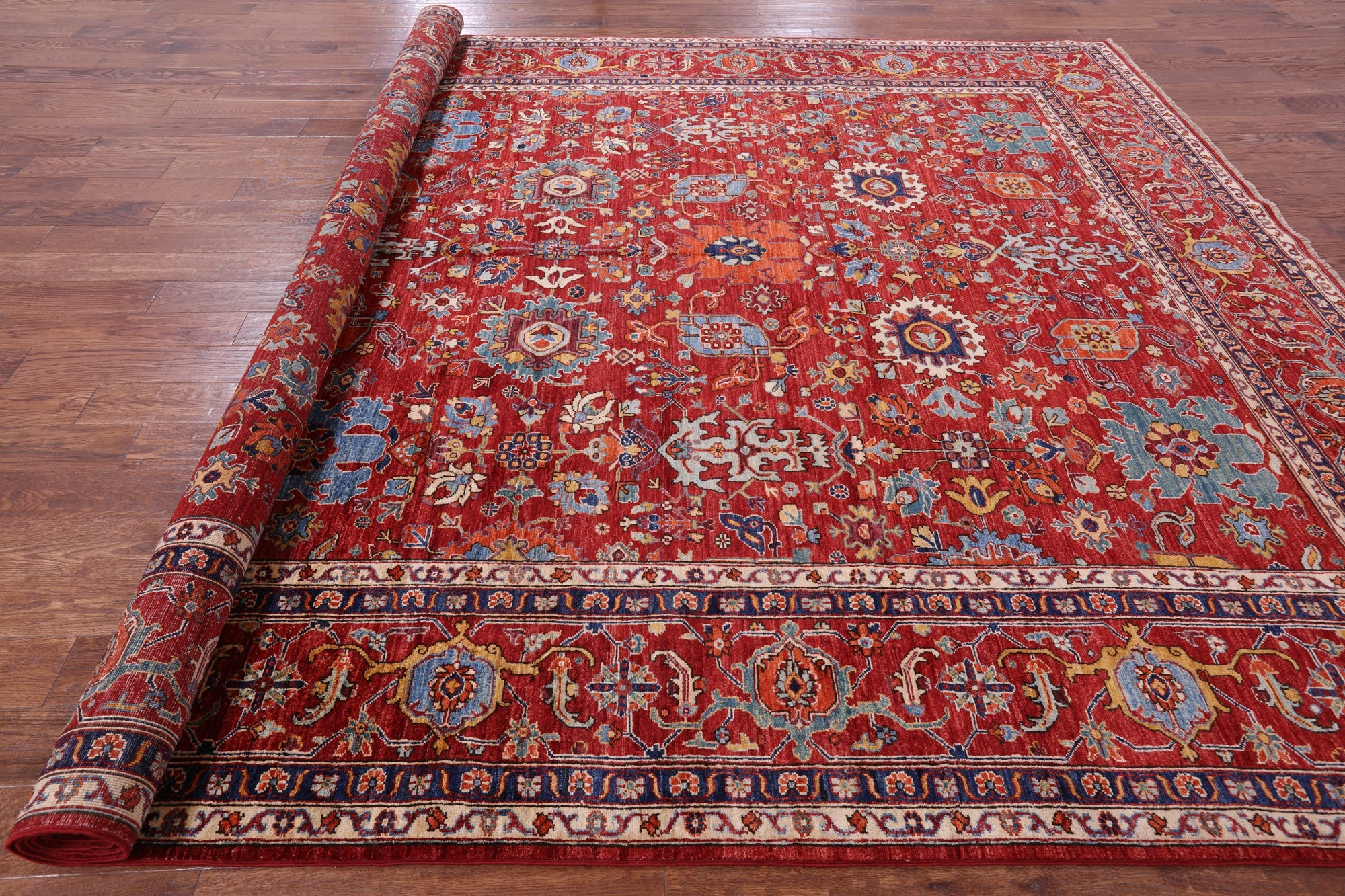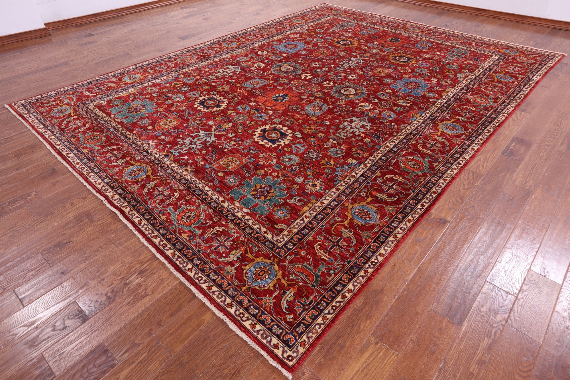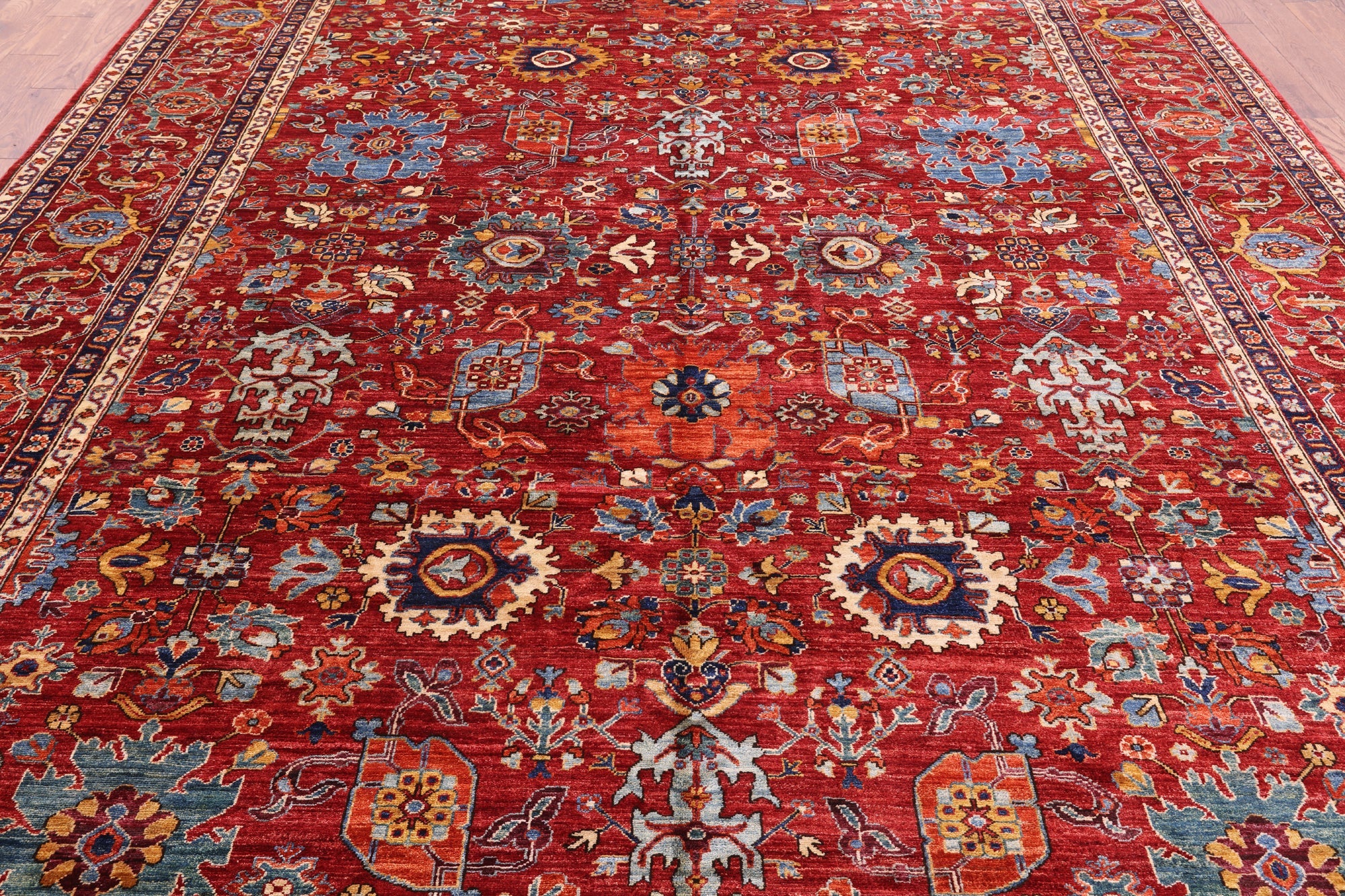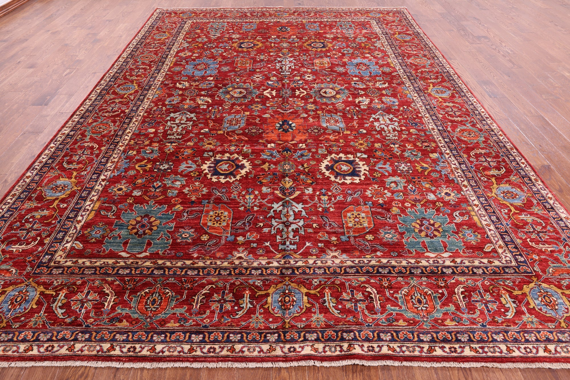 Red 9' 9" X 13' 4" Handmade Persian Fine Serapi Wool Rug - Q12636 is backordered and will ship as soon as it is back in stock.