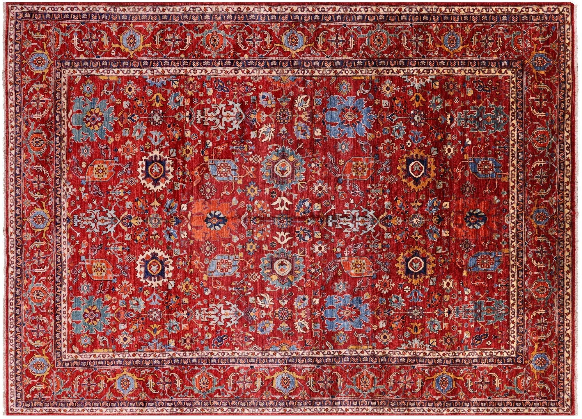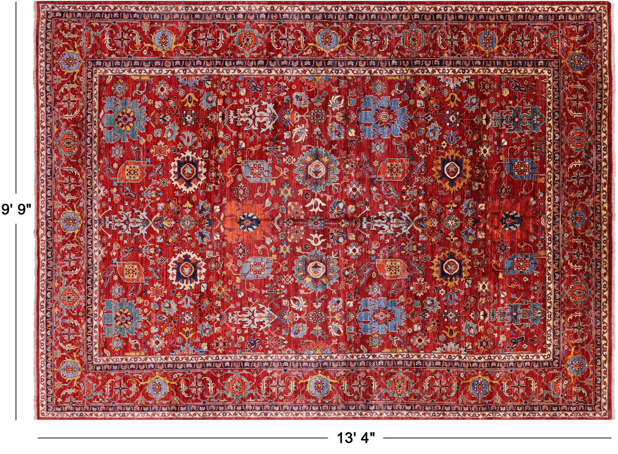 Red 9' 9" X 13' 4" Handmade Persian Fine Serapi Wool Rug - Q12636