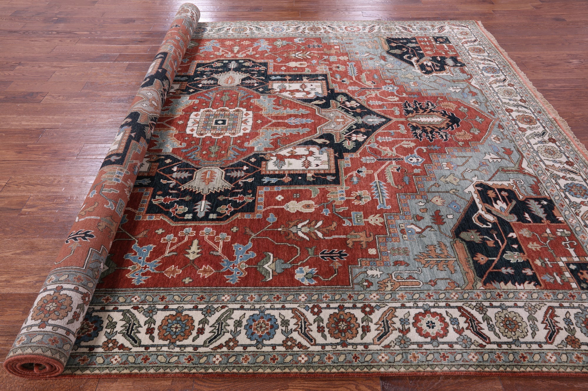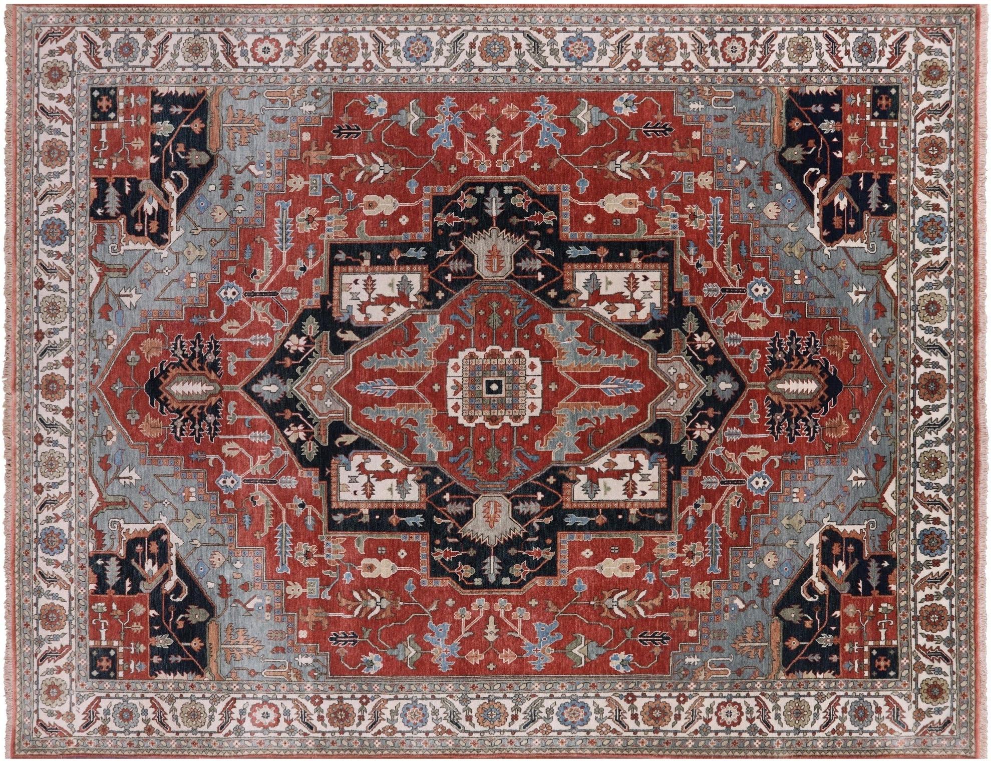 Red 9' 0" X 11' 10" Handmade Persian Fine Serapi Wool Rug - Q16025