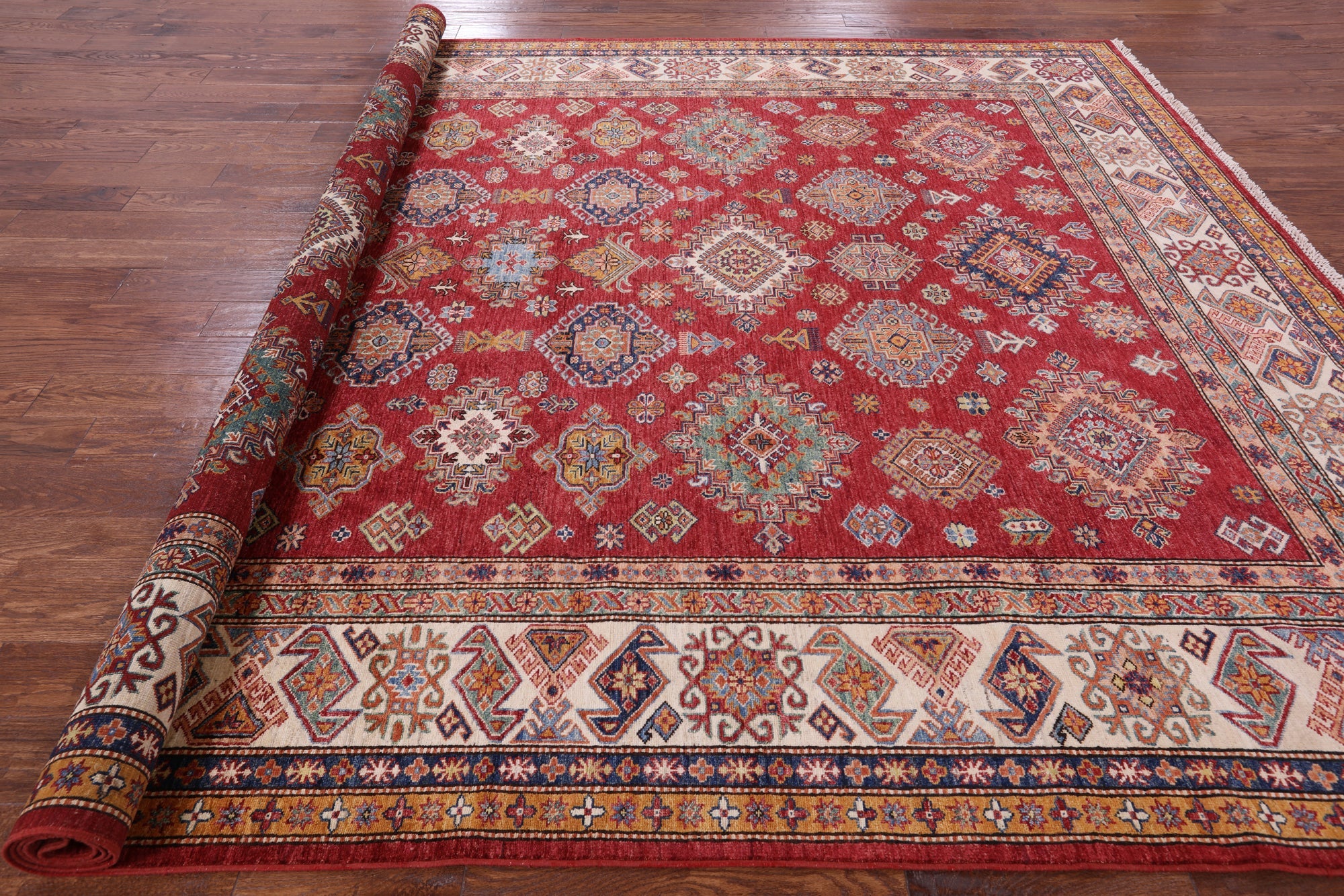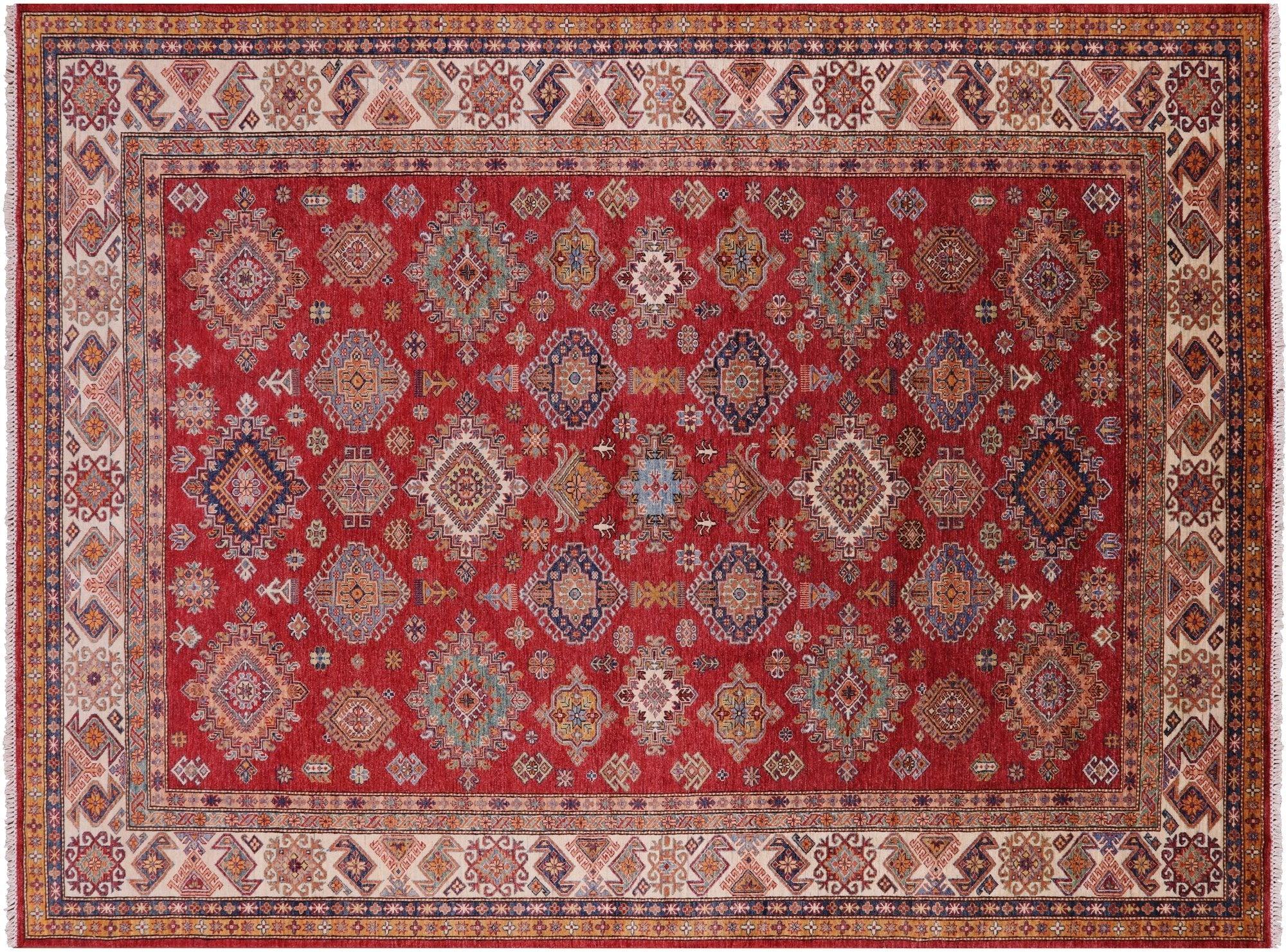 Red 9' 0" X 12' 0" Handmade Super Kazak Wool Rug - Q4915