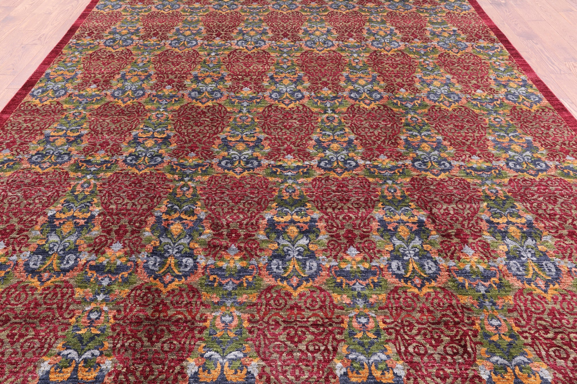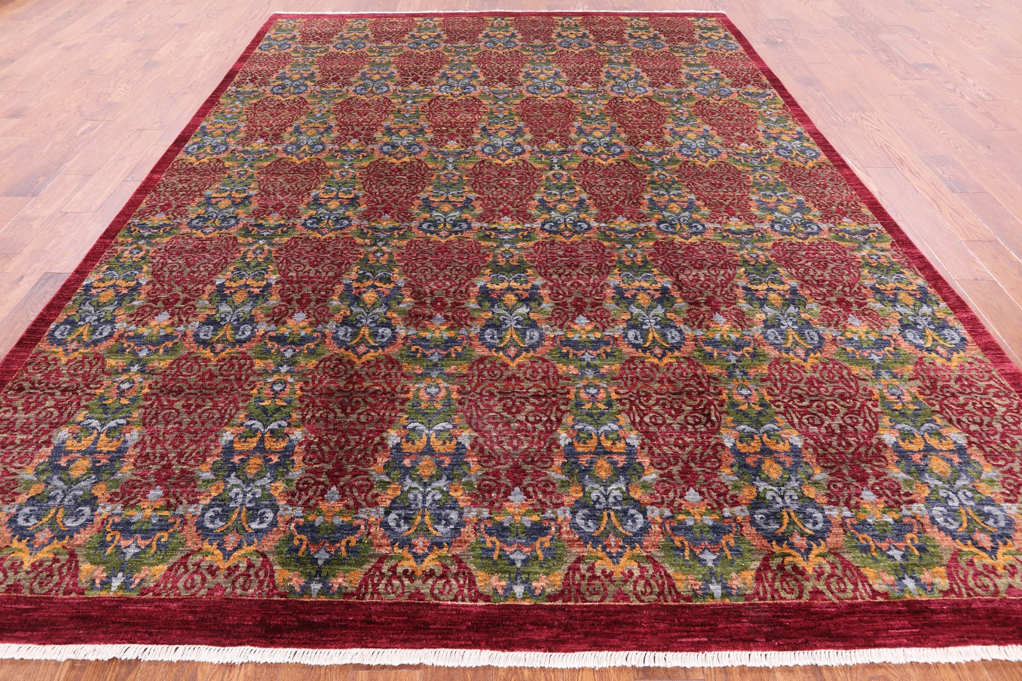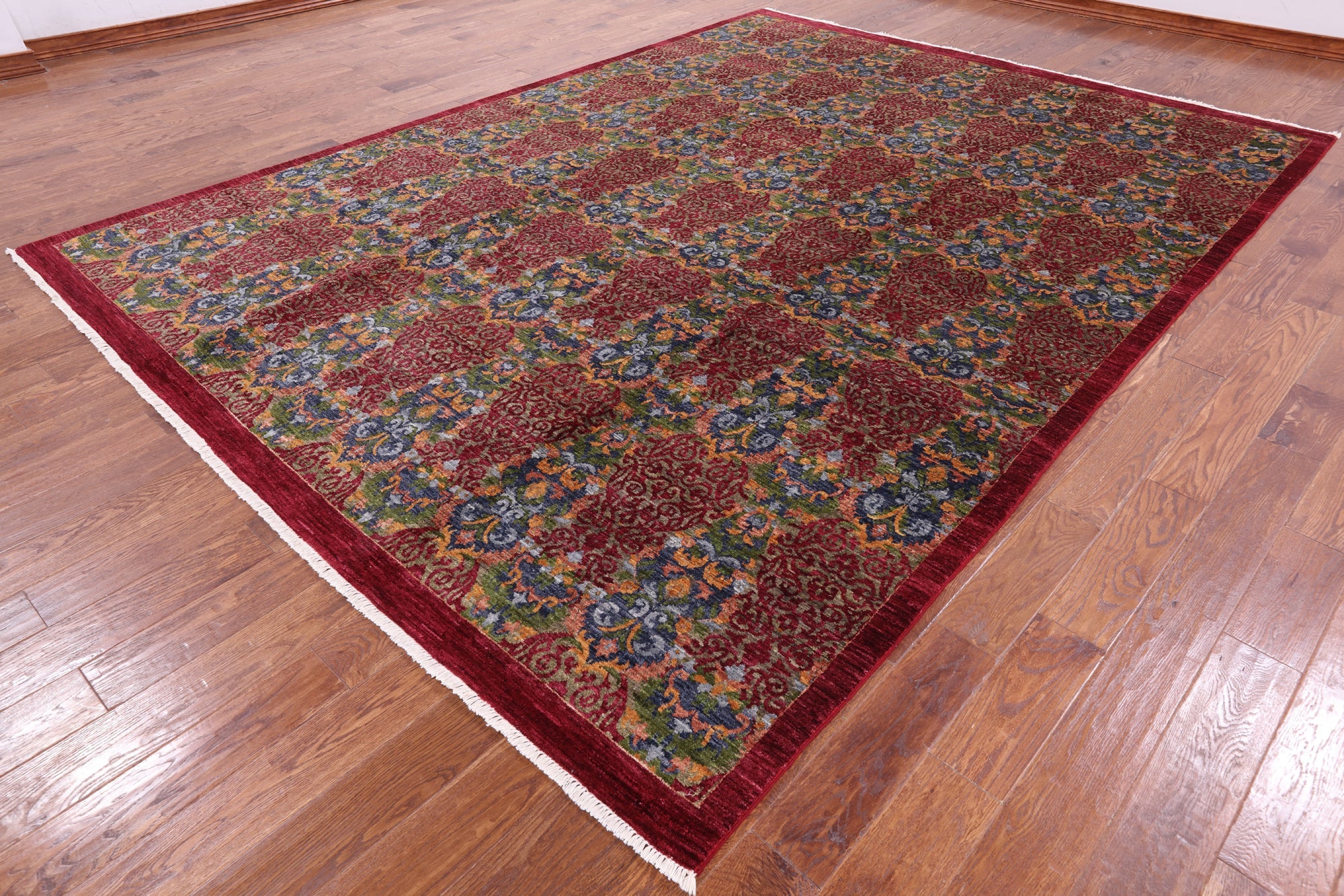 Red Handmade William Morris Wool Rug 9' 0" X 12' 0" - P3442 is backordered and will ship as soon as it is back in stock.