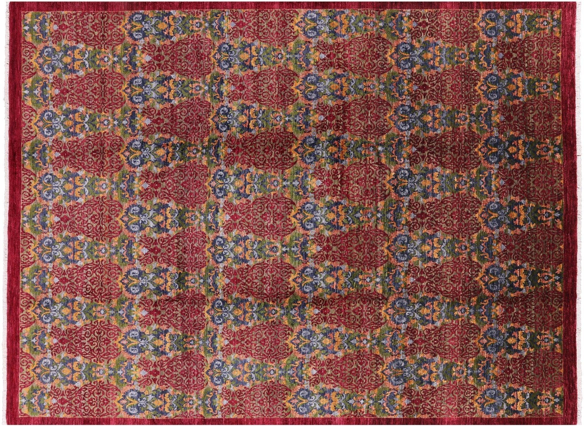 Red Handmade William Morris Wool Rug 9' 0" X 12' 0" - P3442