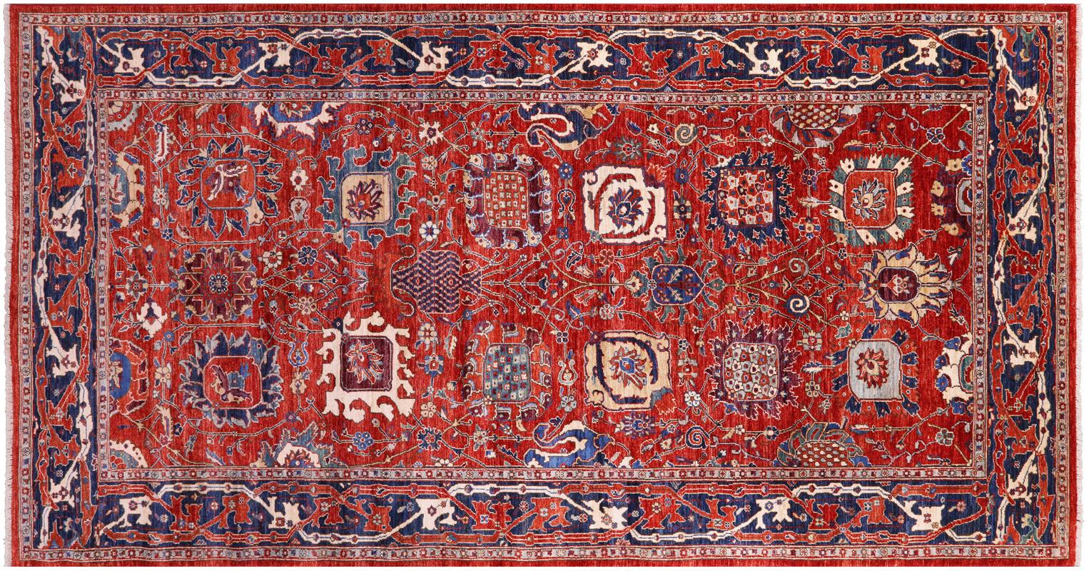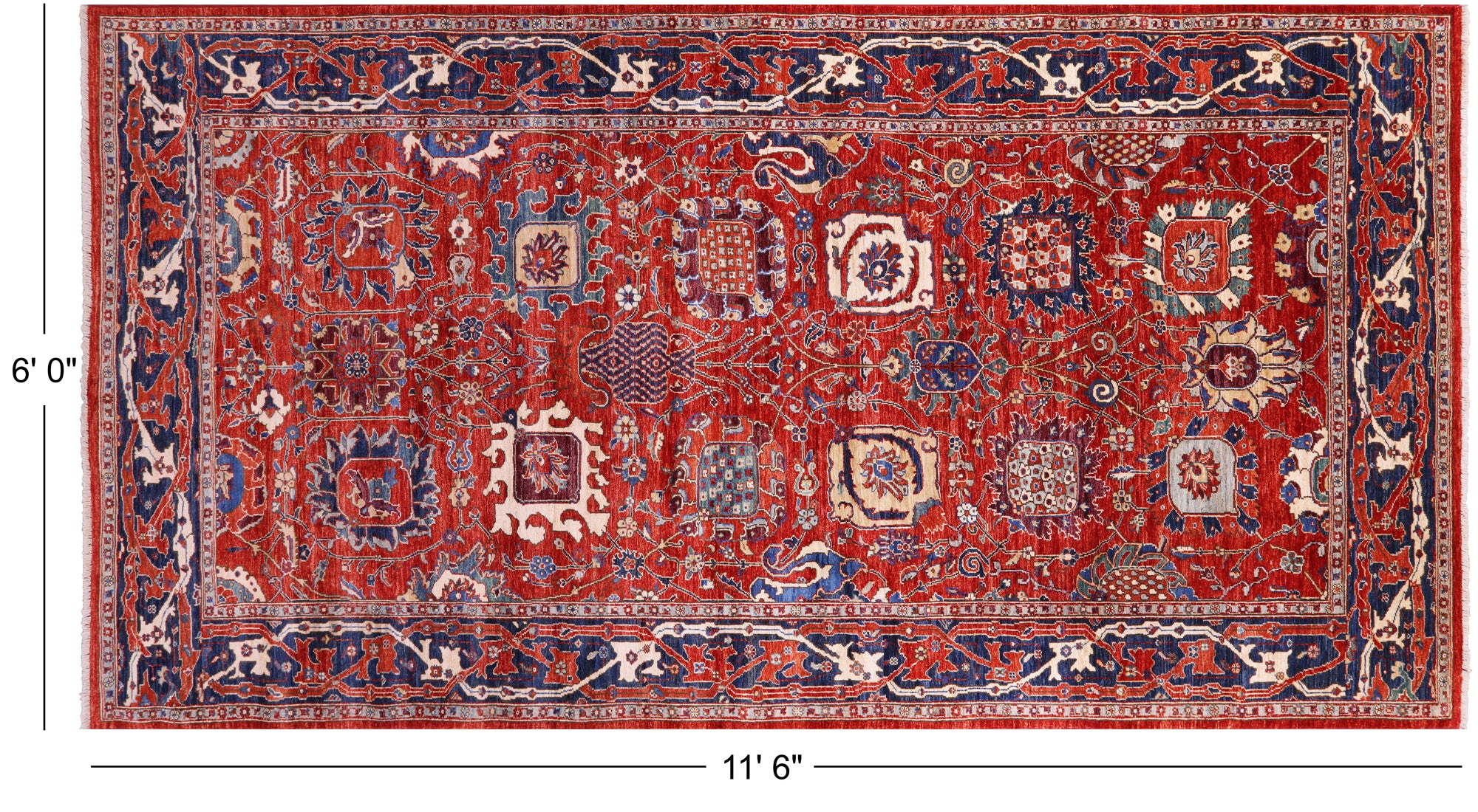 Red Persian Heriz Serapi Handmade Wool Rug 6' 0" X 11' 6" - Q23013