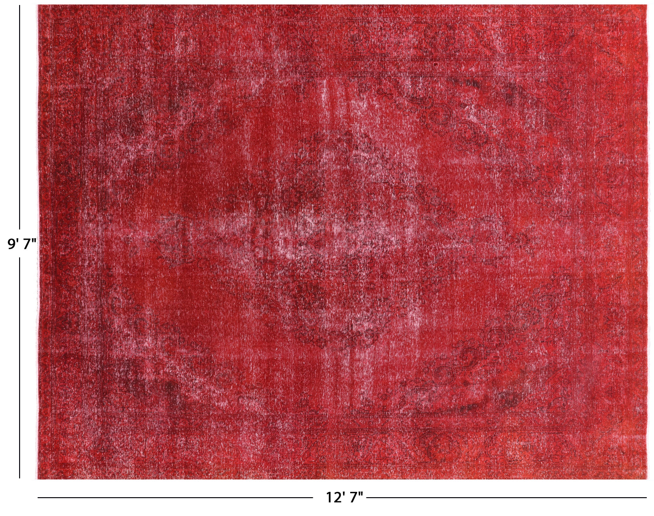 Red Persian Overdyed Hand Knotted Wool Rug 9' 7" X 12' 7" - Q19457