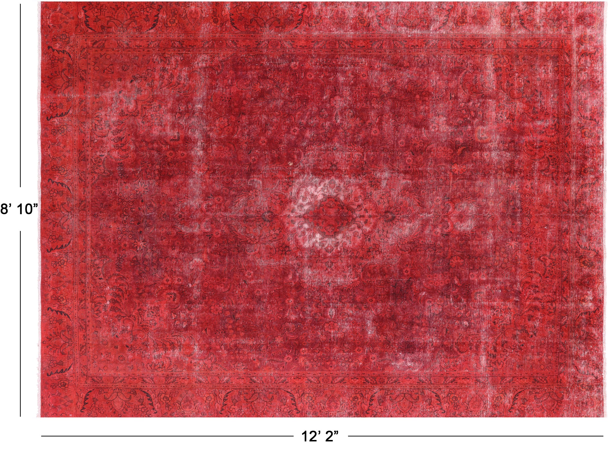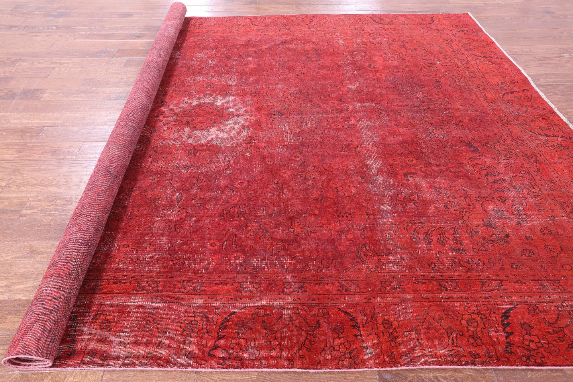 Red 8' 10" X 12' 2" Persian Overdyed Hand-Knotted Wool Rug - Q19482