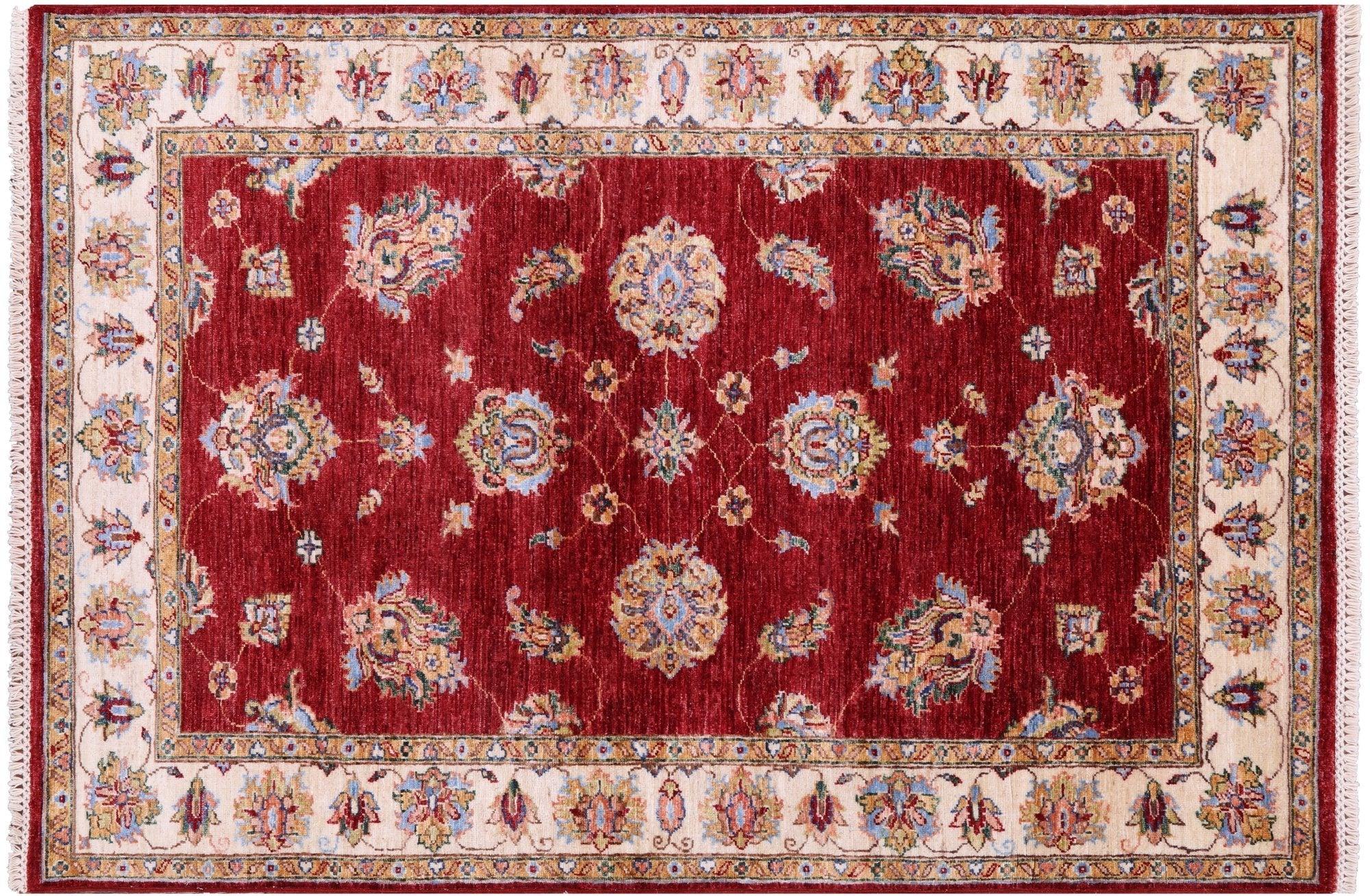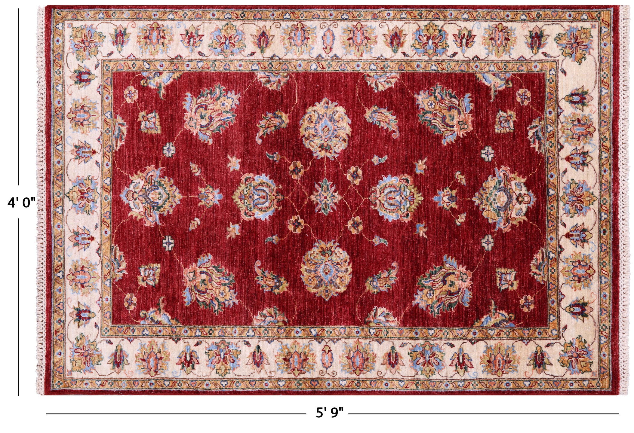 Red 4' 0" X 5' 9" Persian Tabriz Handmade Wool Rug - Q12783