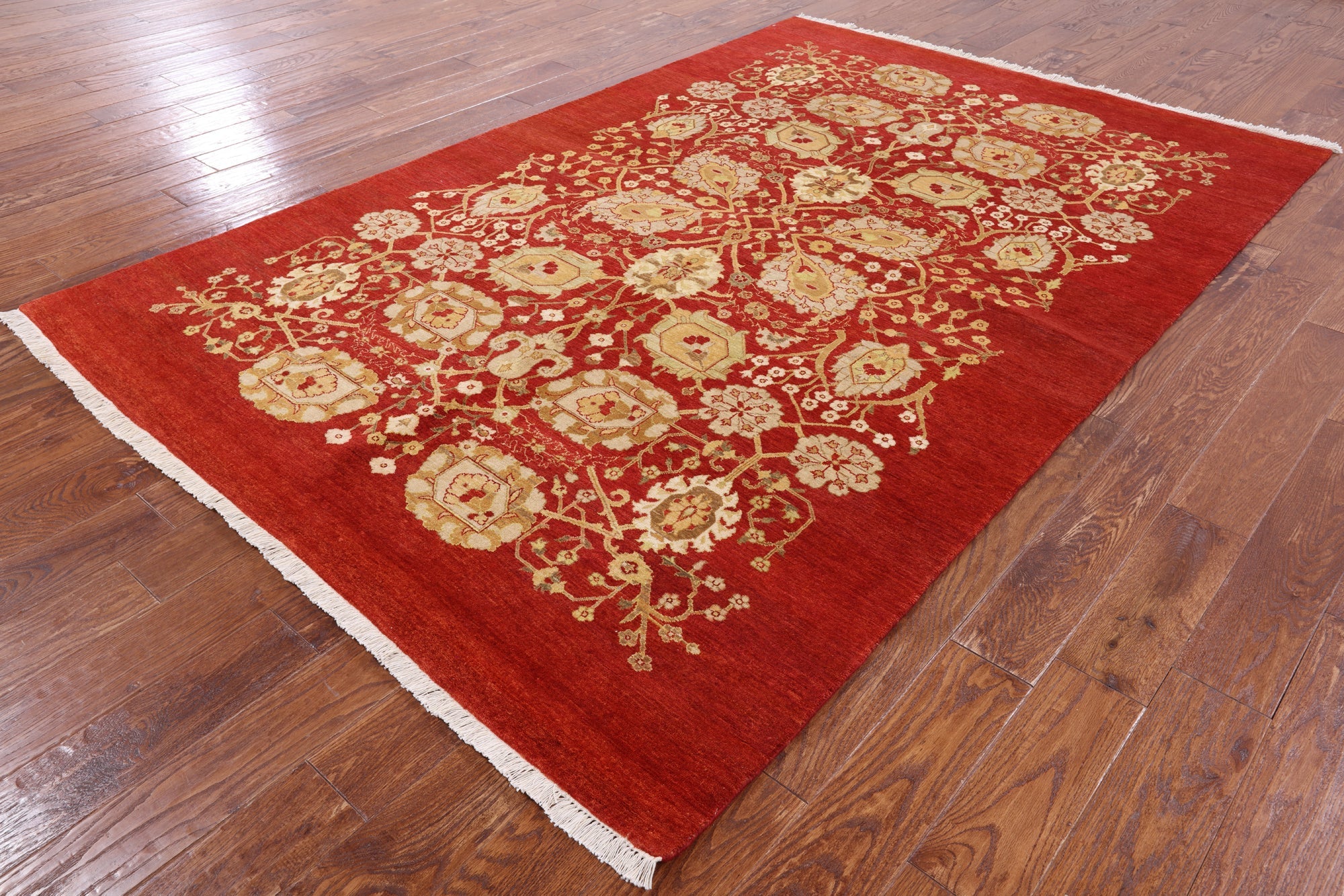 Red Peshawar Hand Knotted Wool Rug 5' 10" X 8' 10" - W1463