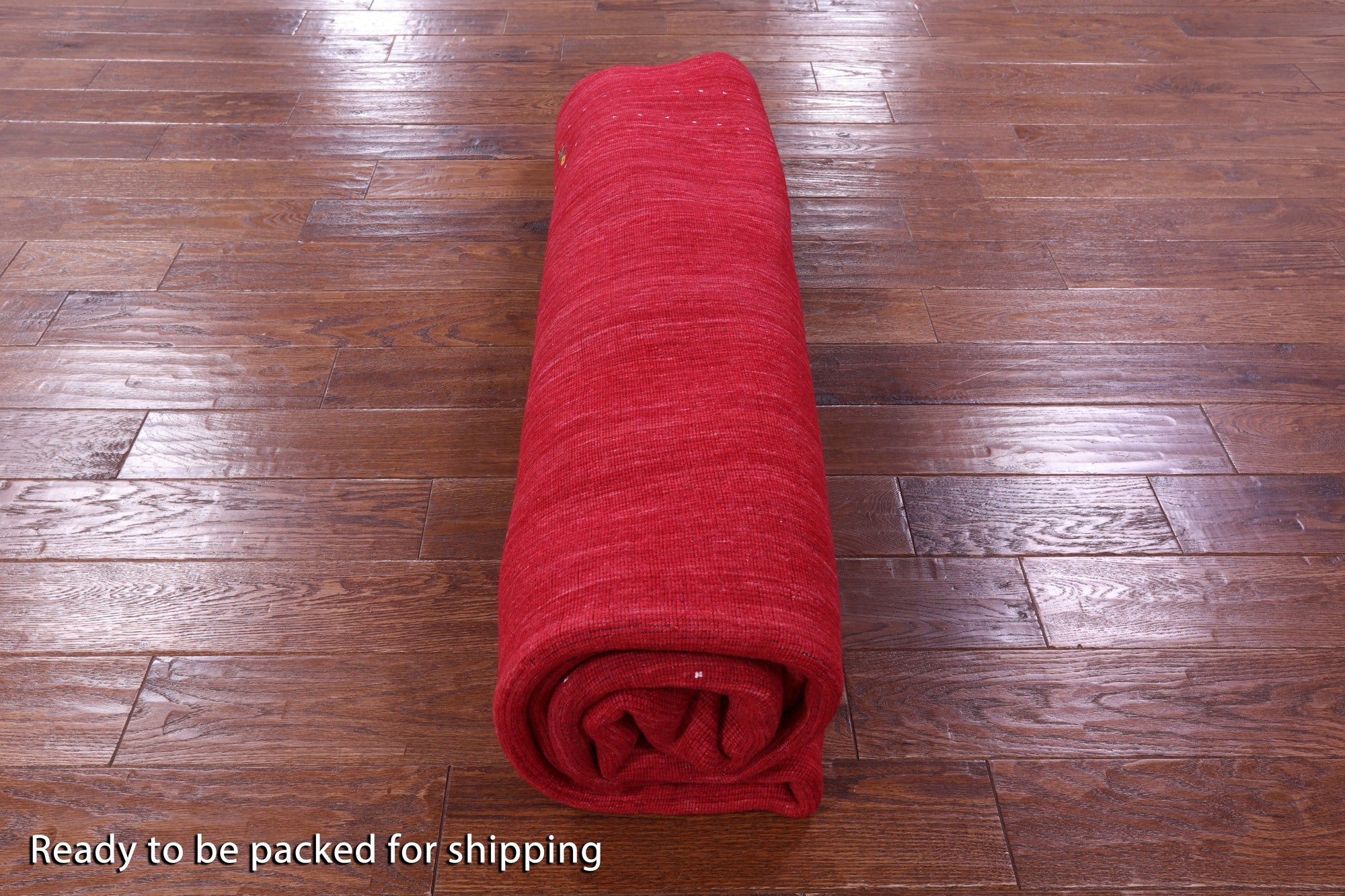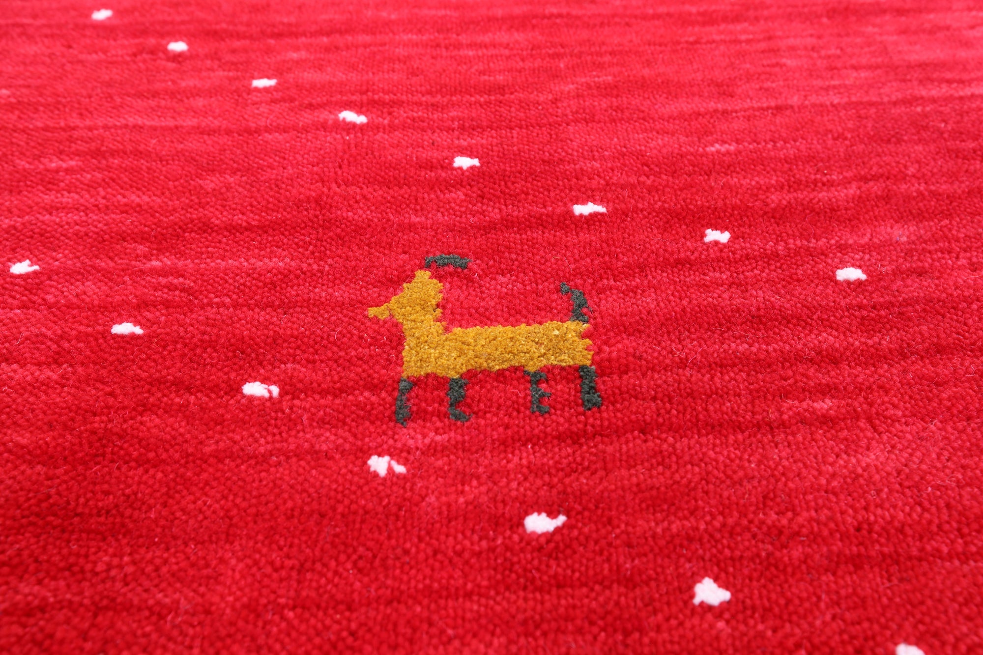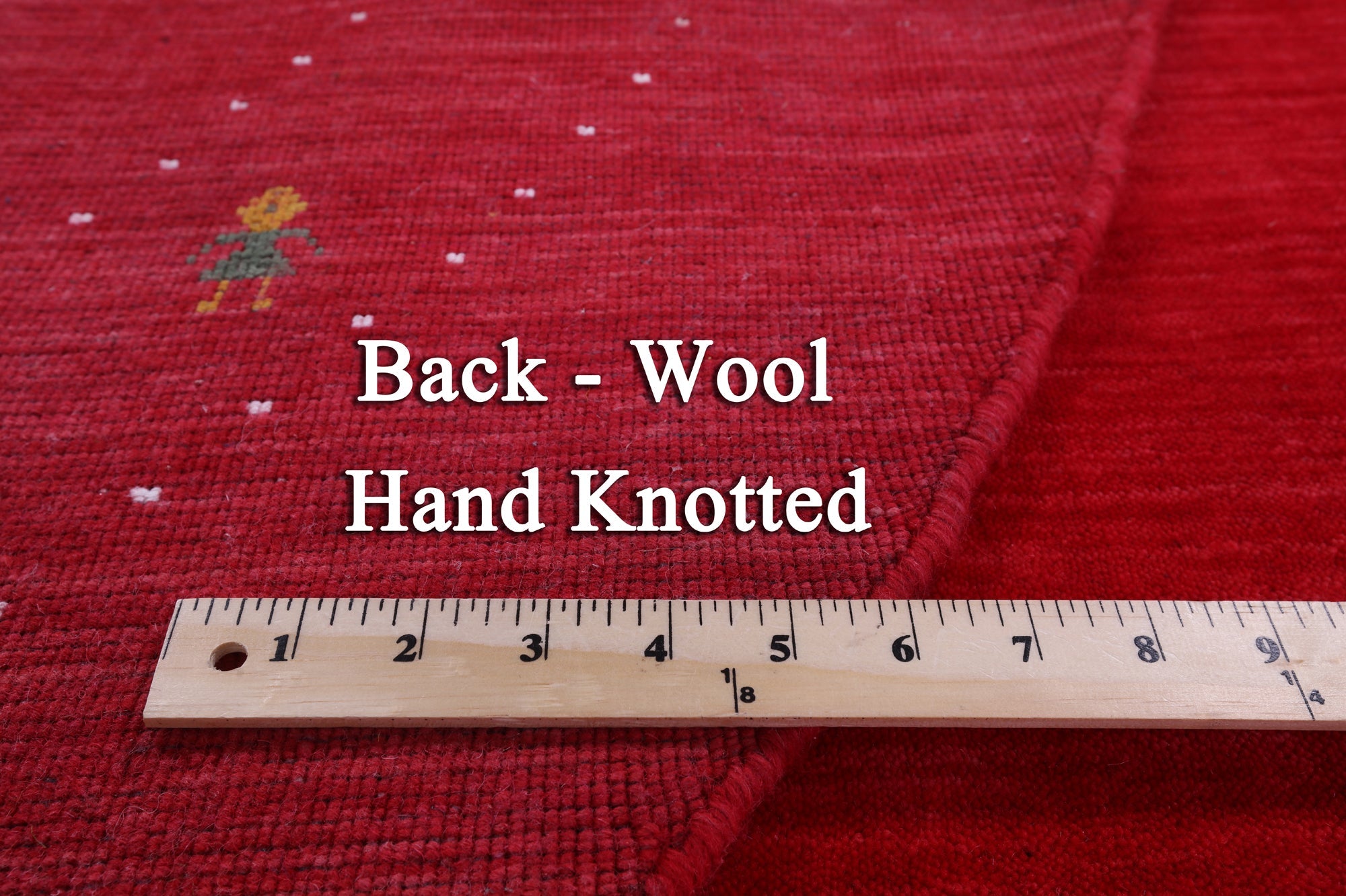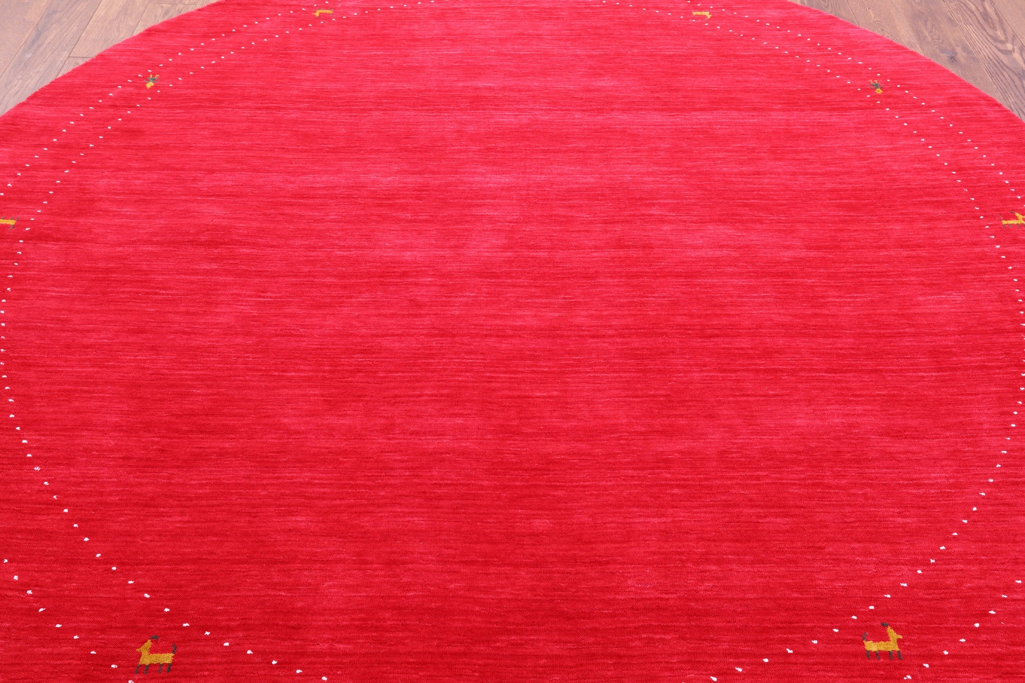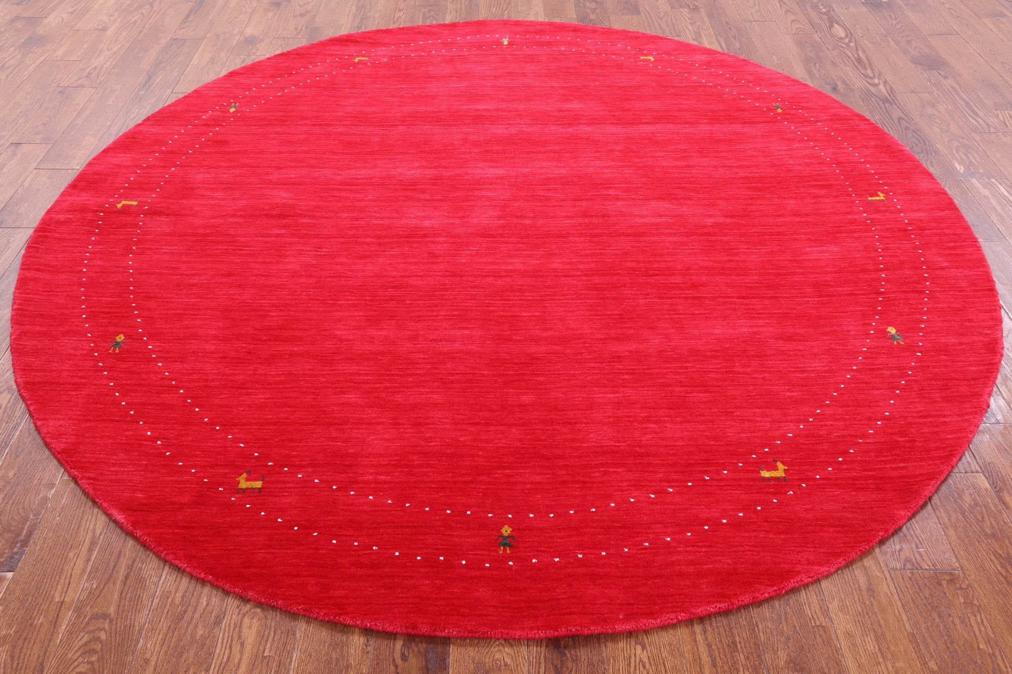 Red 8' Round Persian Gabbeh Hand Knotted Wool Rug - Q15023