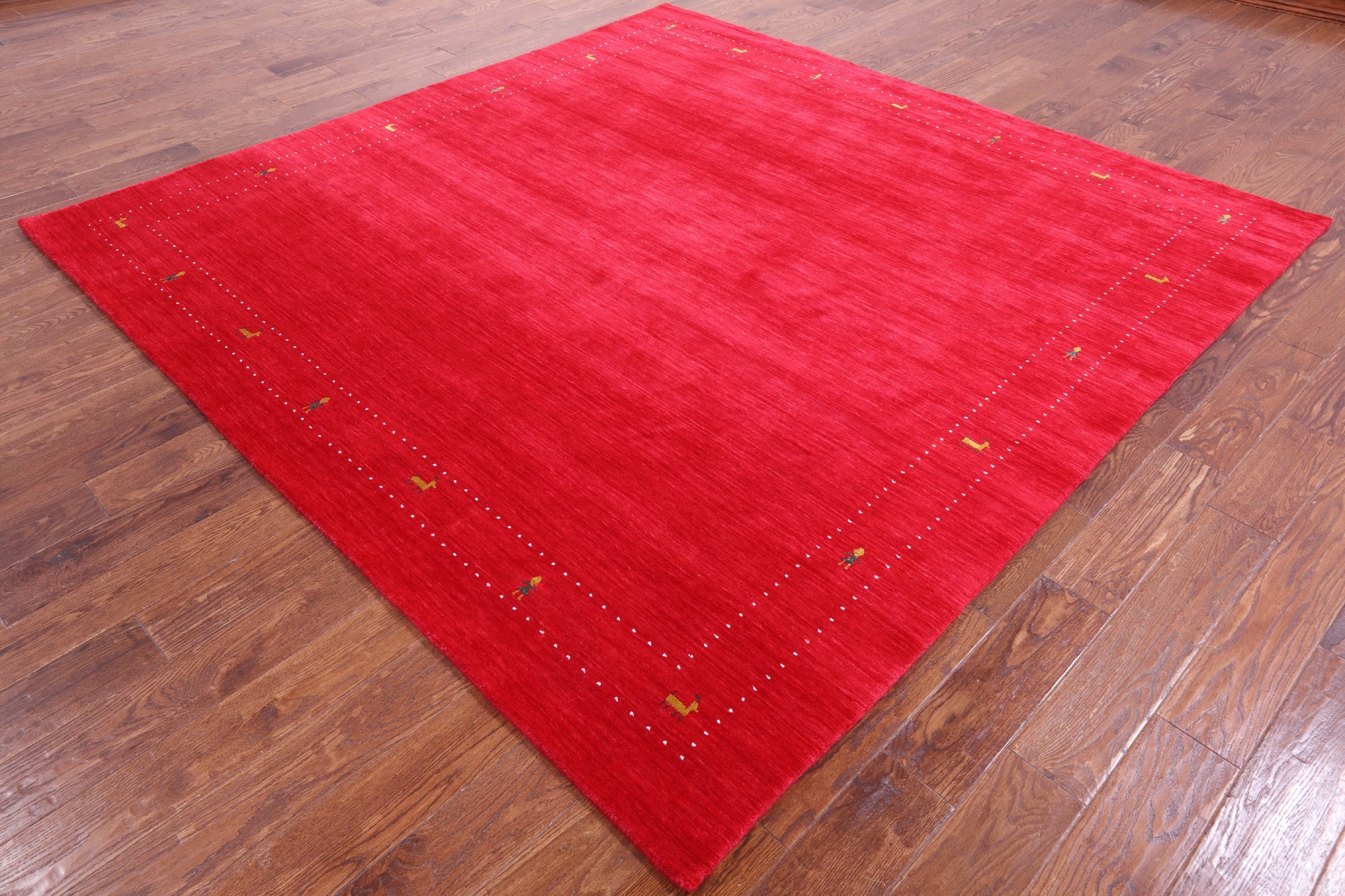 Red 8' Square Persian Gabbeh Hand Knotted Wool Rug - Q15026 is backordered and will ship as soon as it is back in stock.