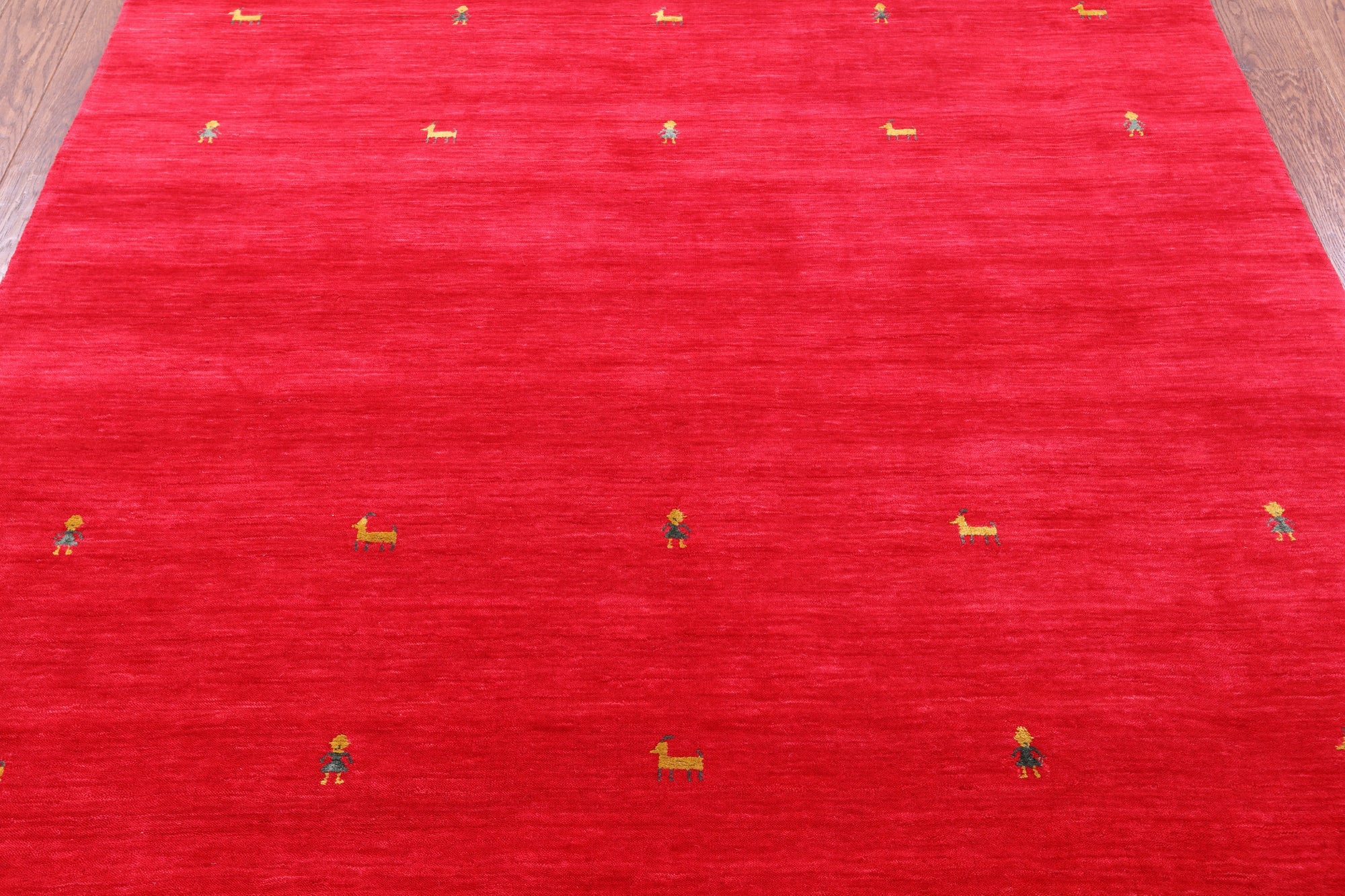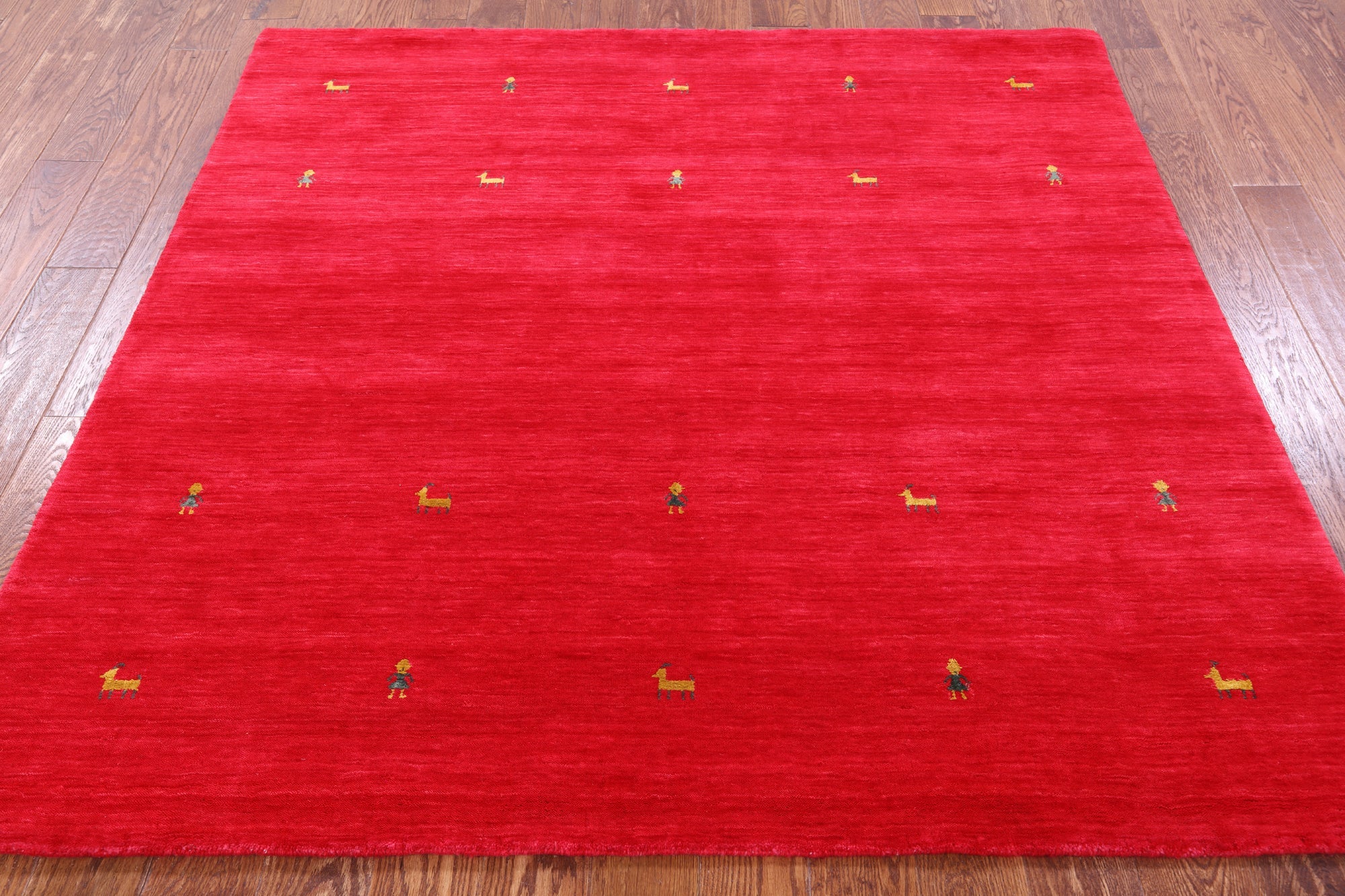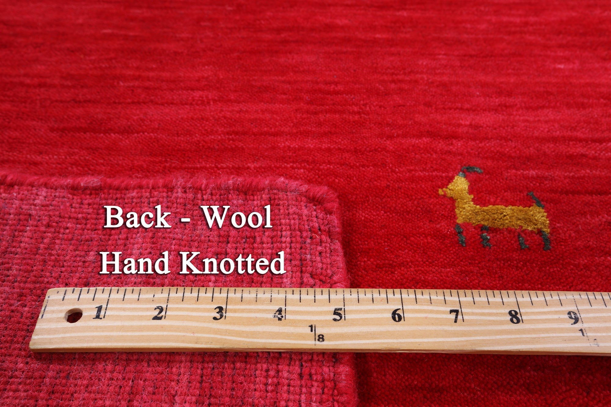 Red 6' Square Persian Gabbeh Hand Knotted Wool Rug - Q15264