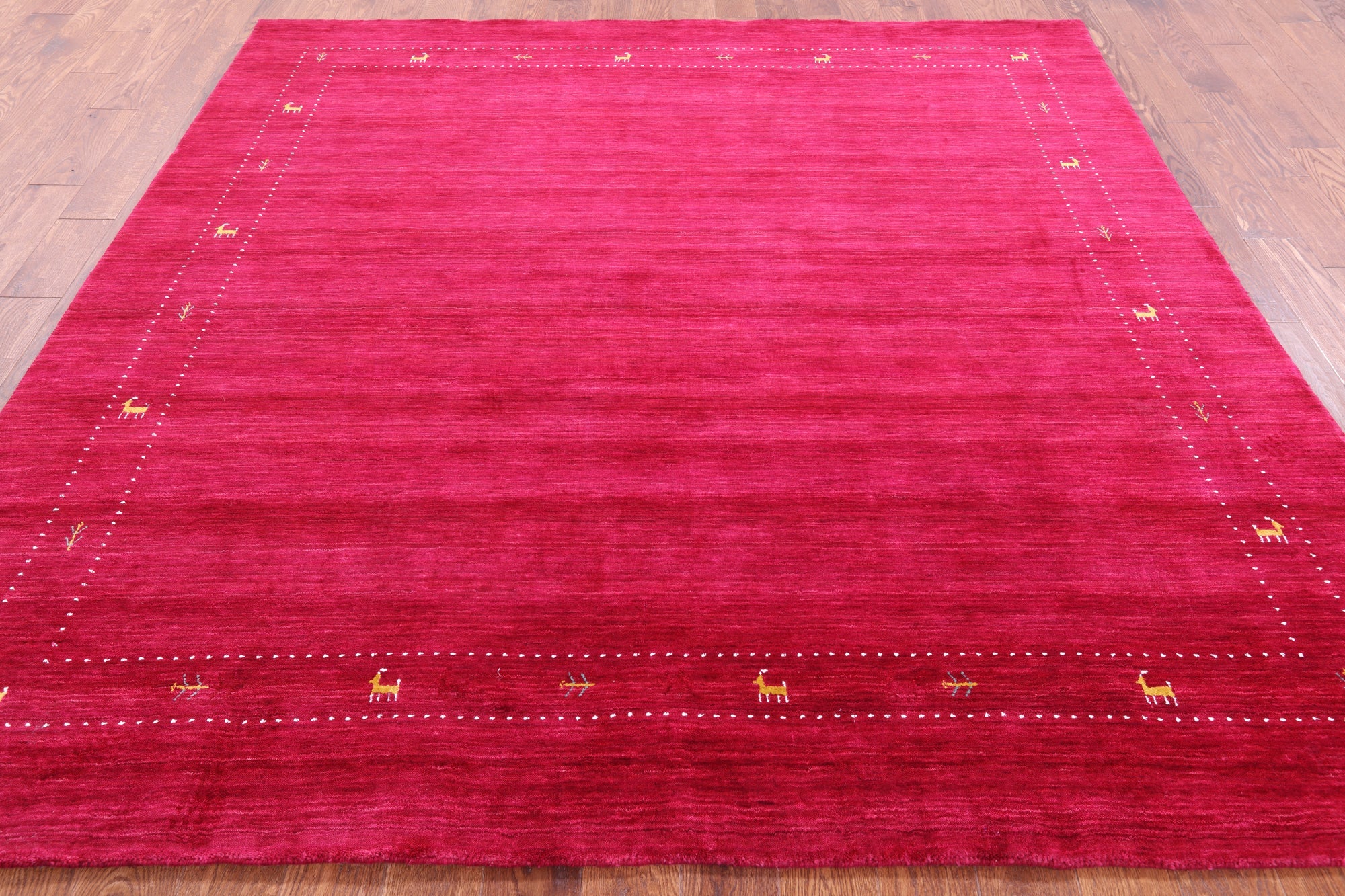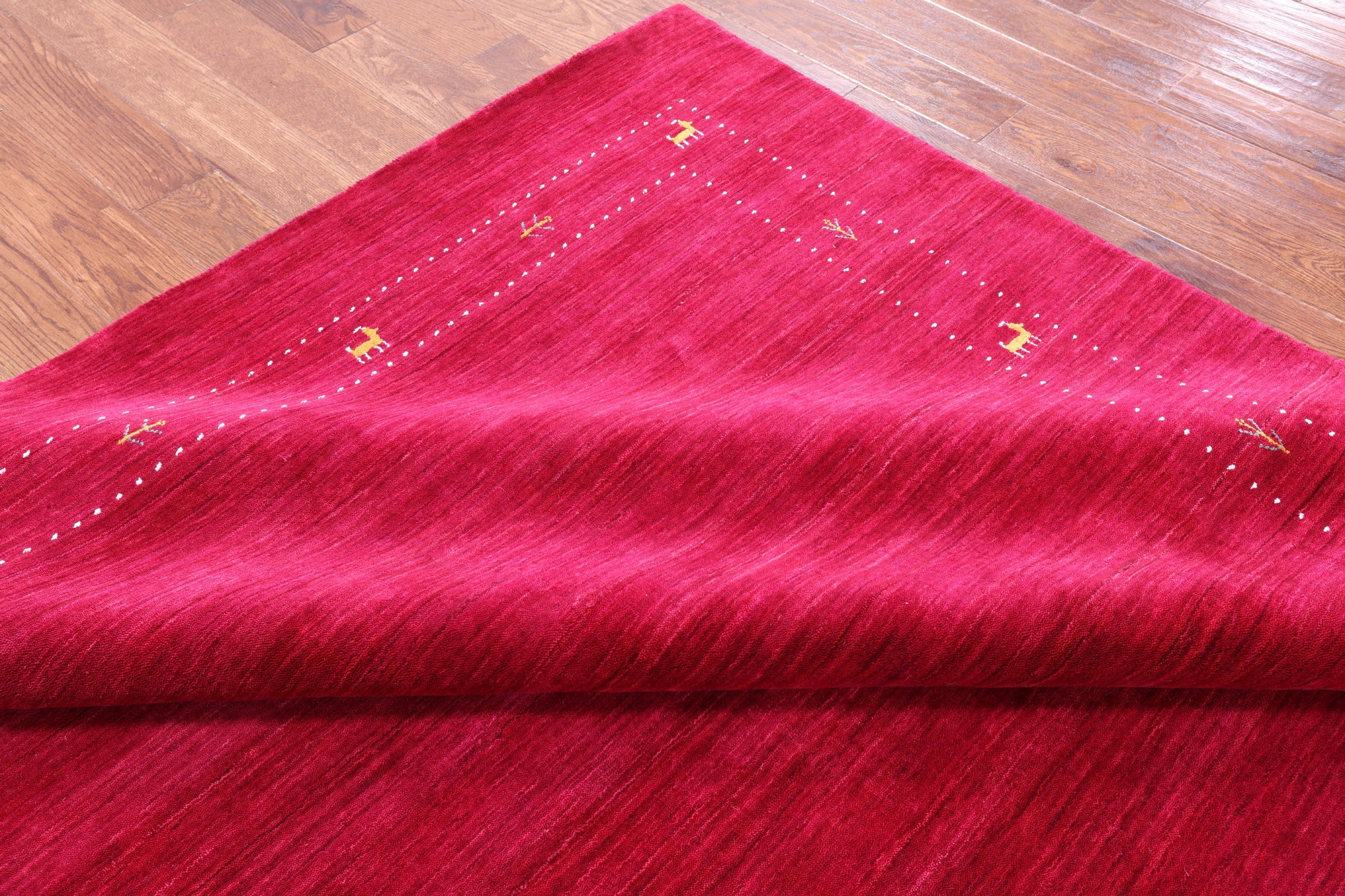 Red 8' Square Persian Gabbeh Handmade Wool Rug - Q15222 is backordered and will ship as soon as it is back in stock.