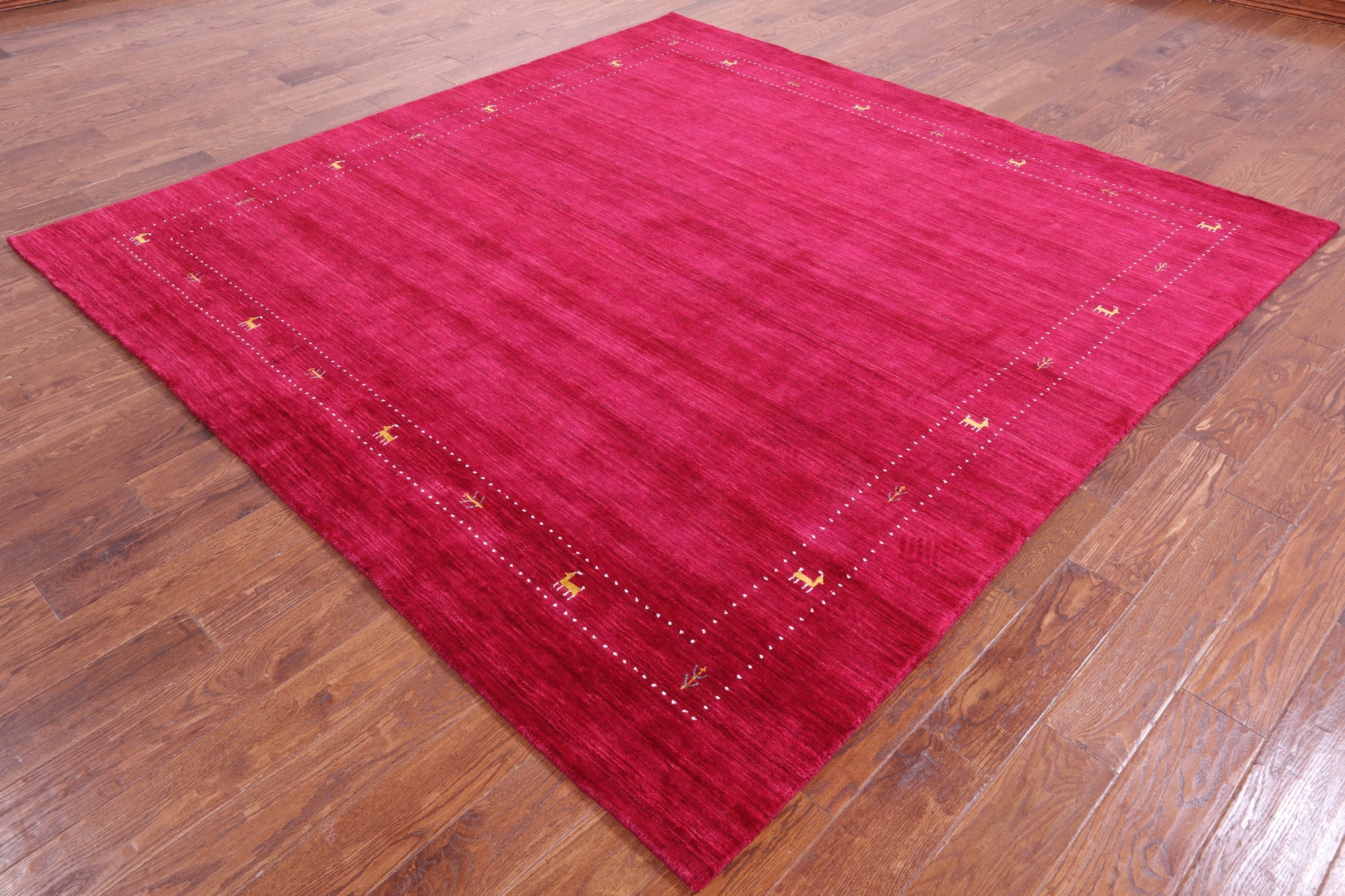 Red 8' Square Persian Gabbeh Handmade Wool Rug - Q15222