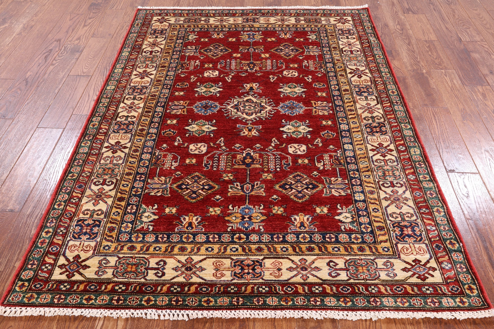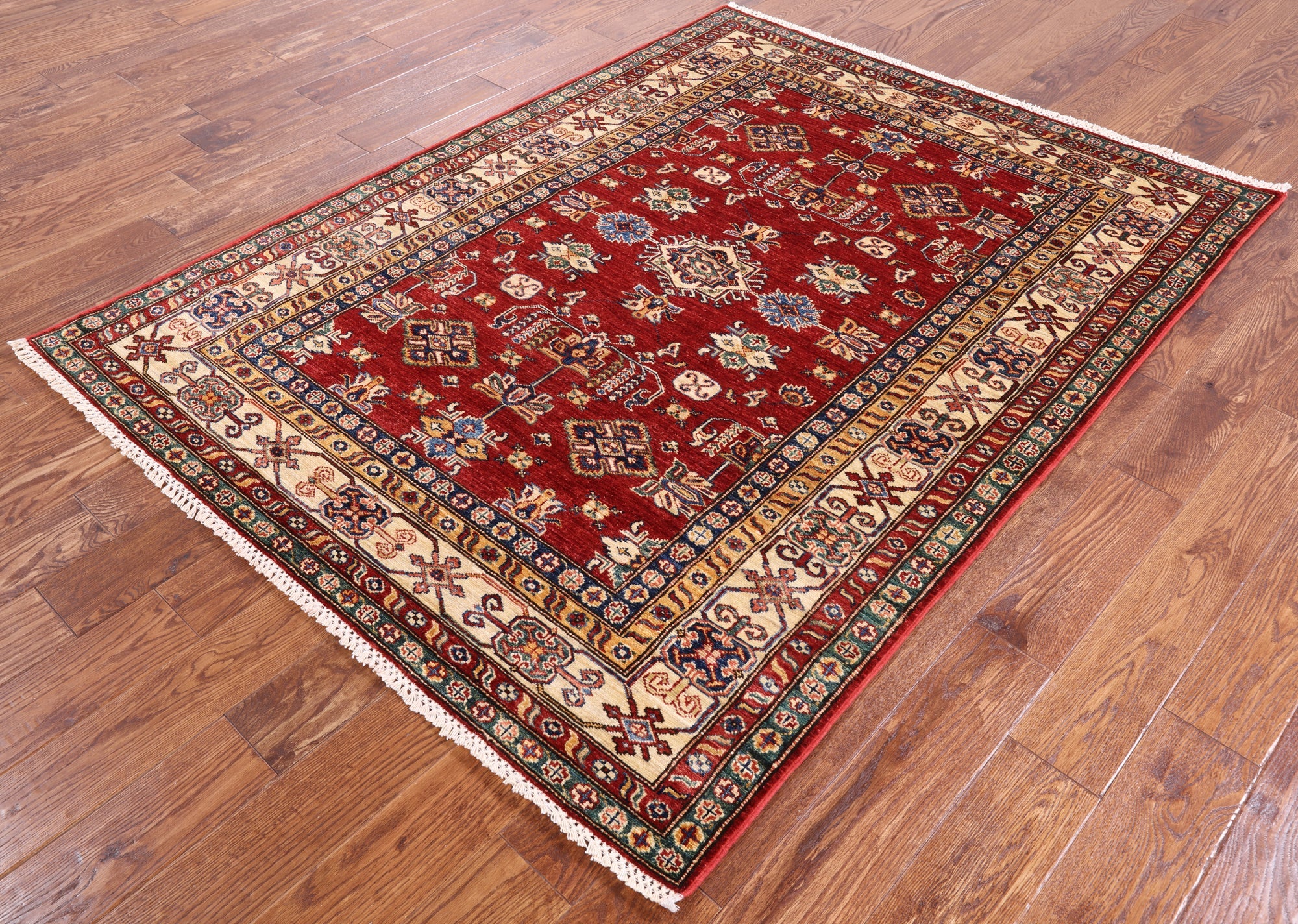 Red Super Kazak Hand Knotted Area Rug 5' 0" X 6' 6" - P9006