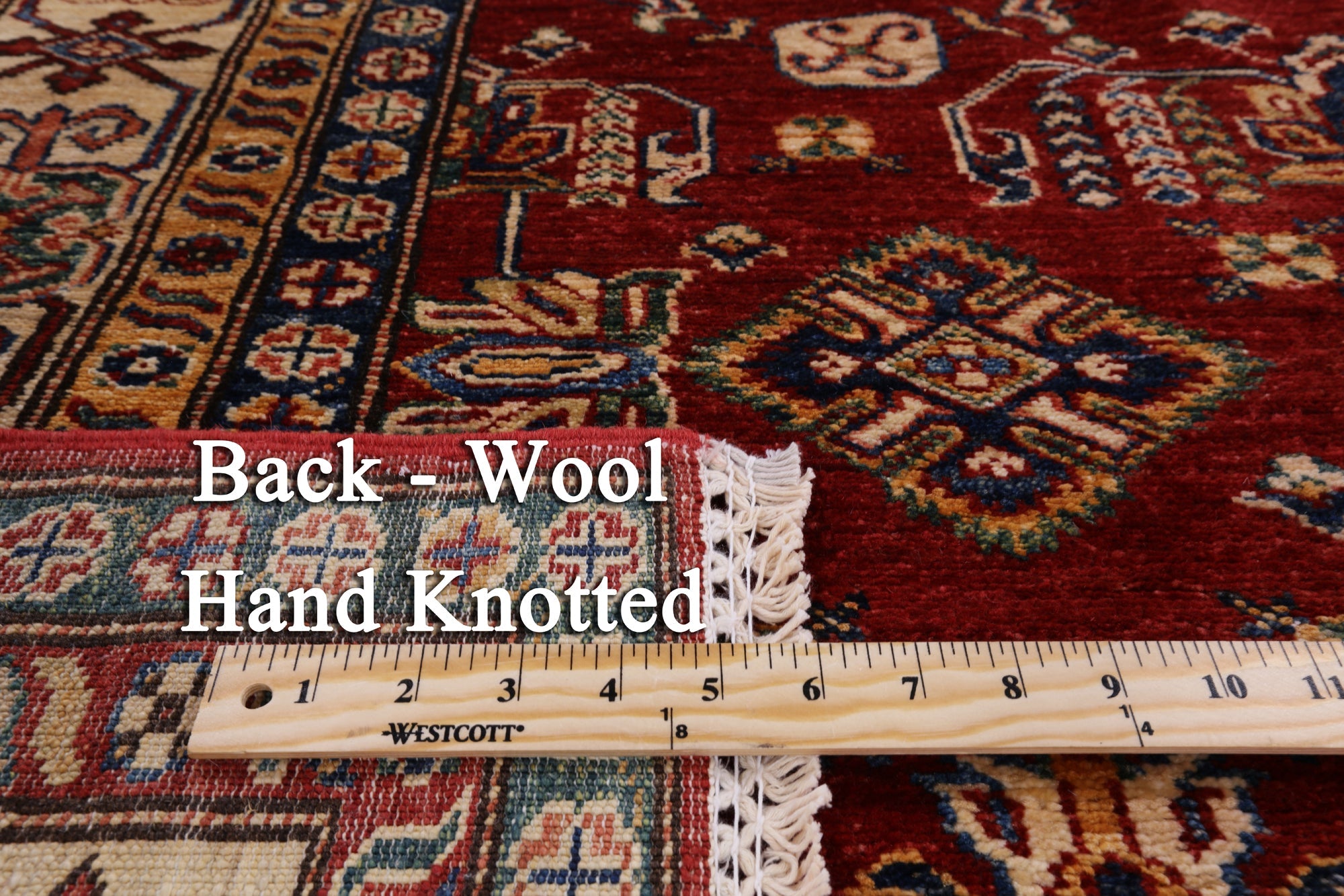 Red Super Kazak Hand Knotted Area Rug 5' 0" X 6' 6" - P9006 is backordered and will ship as soon as it is back in stock.