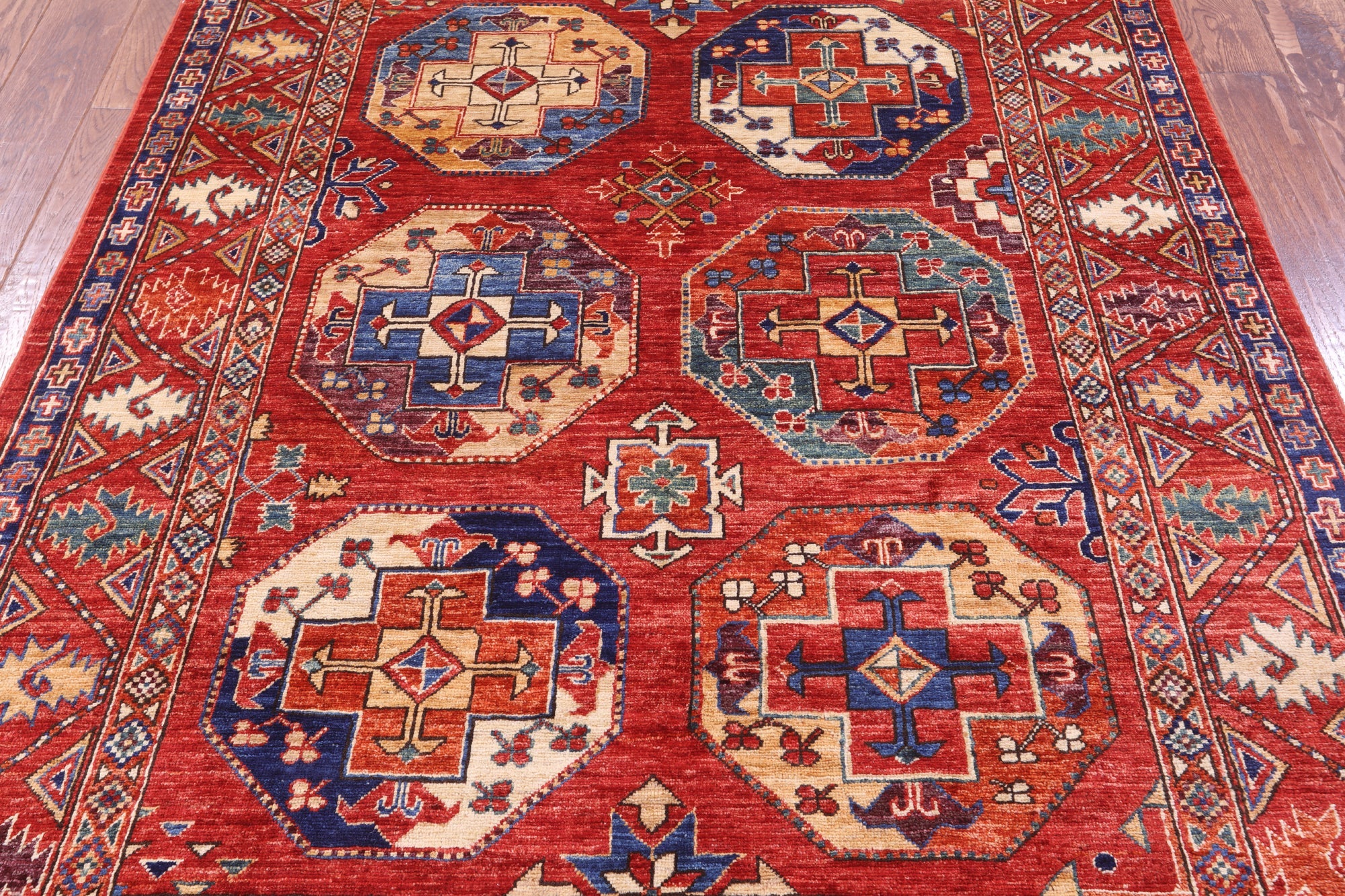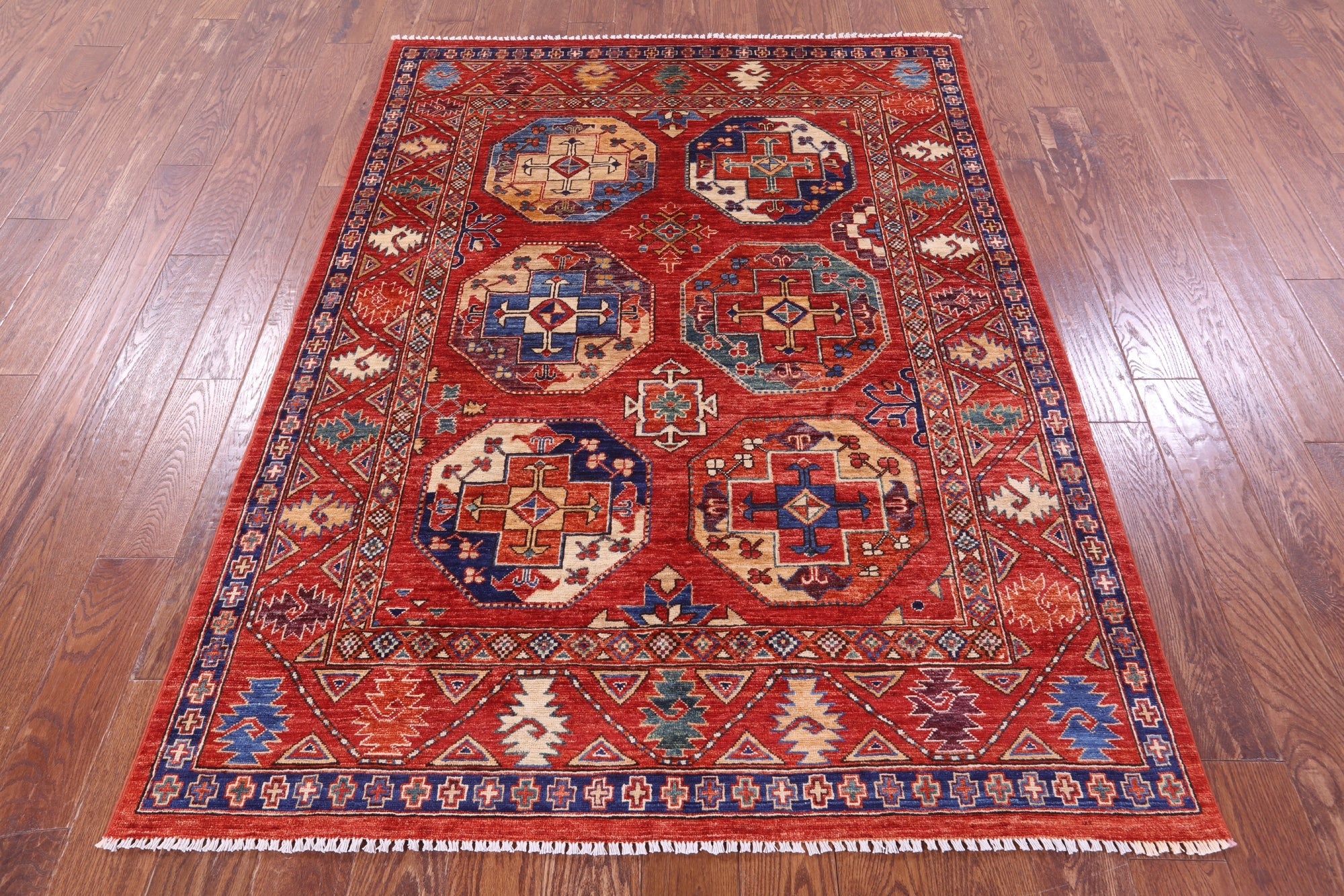 Red Super Turkmen Ersari Hand Knotted Wool Rug 4' 10" X 6' 7" - Q21049 is backordered and will ship as soon as it is back in stock.