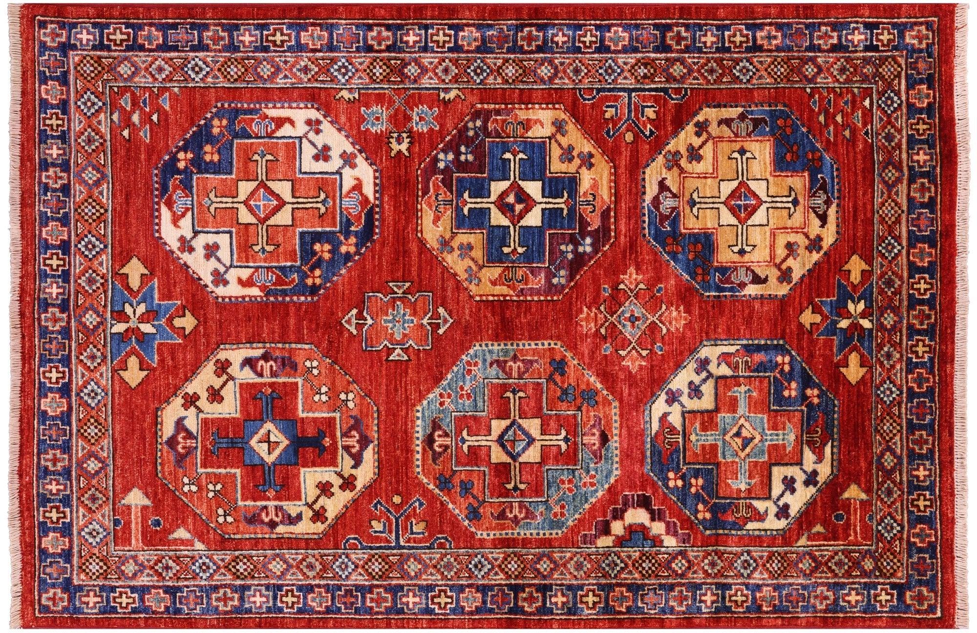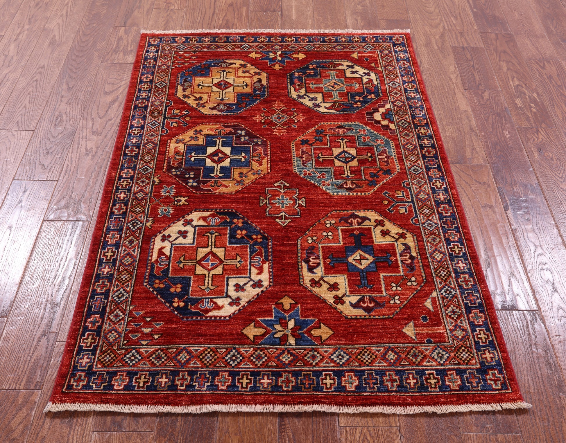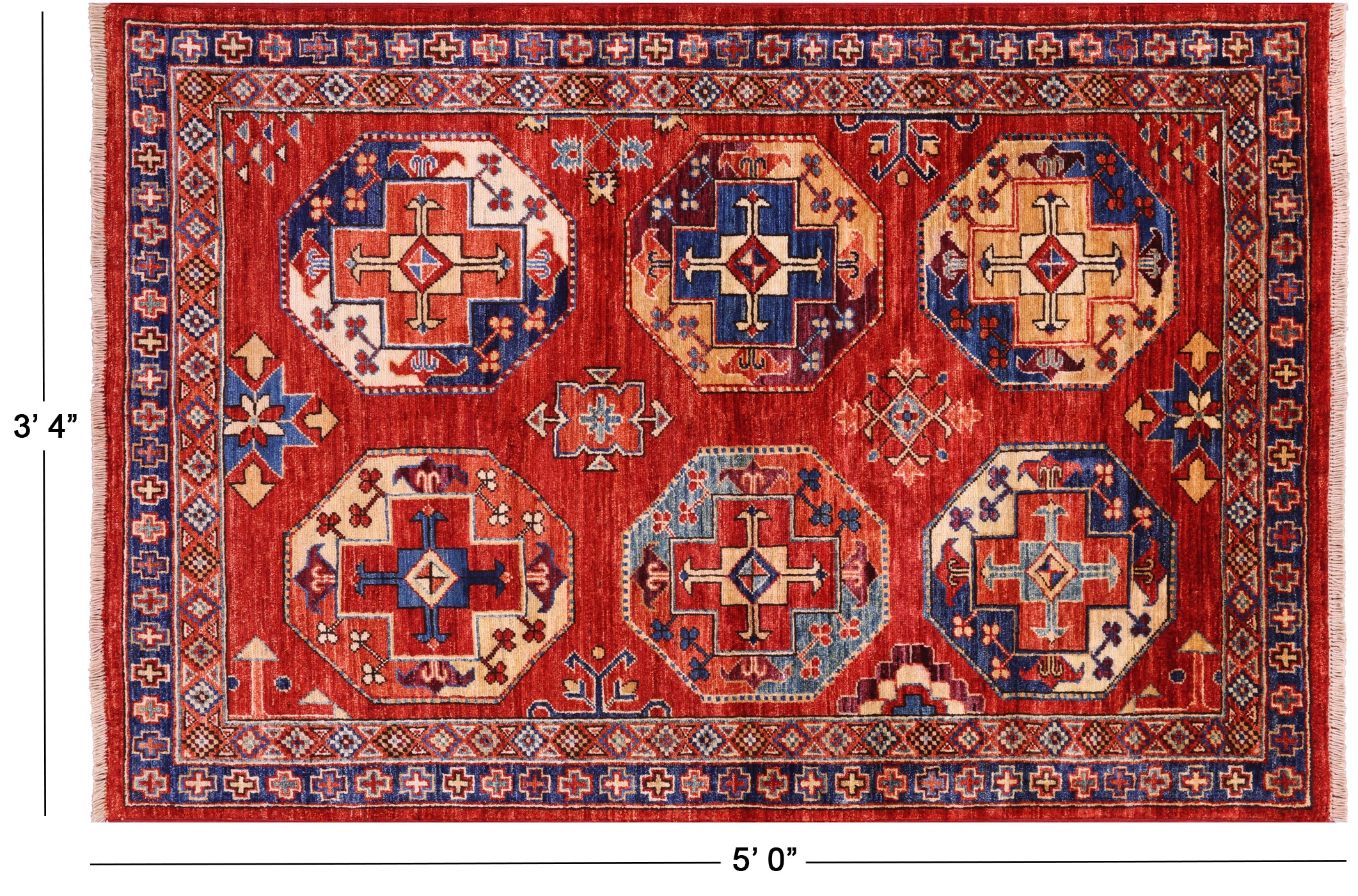 Red Super Turkmen Ersari Handmade Wool Rug 3' 4" X 5' 0" - Q20972
