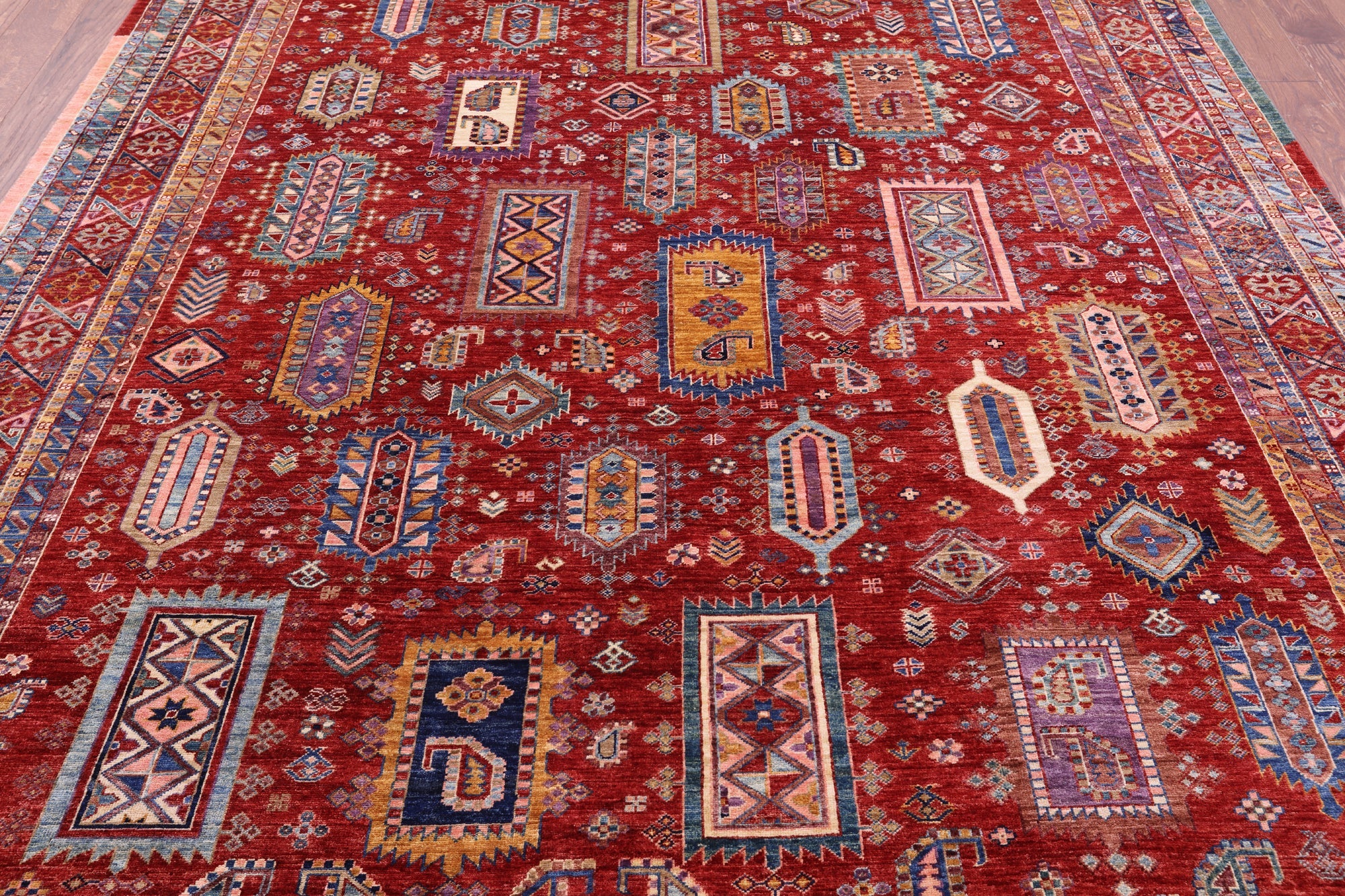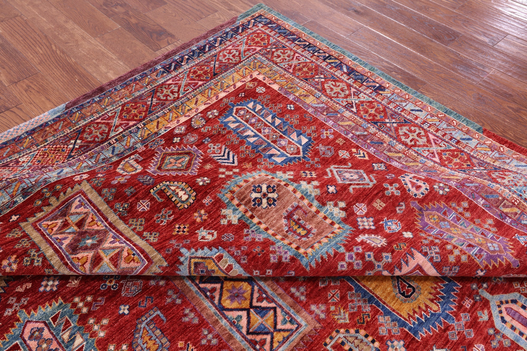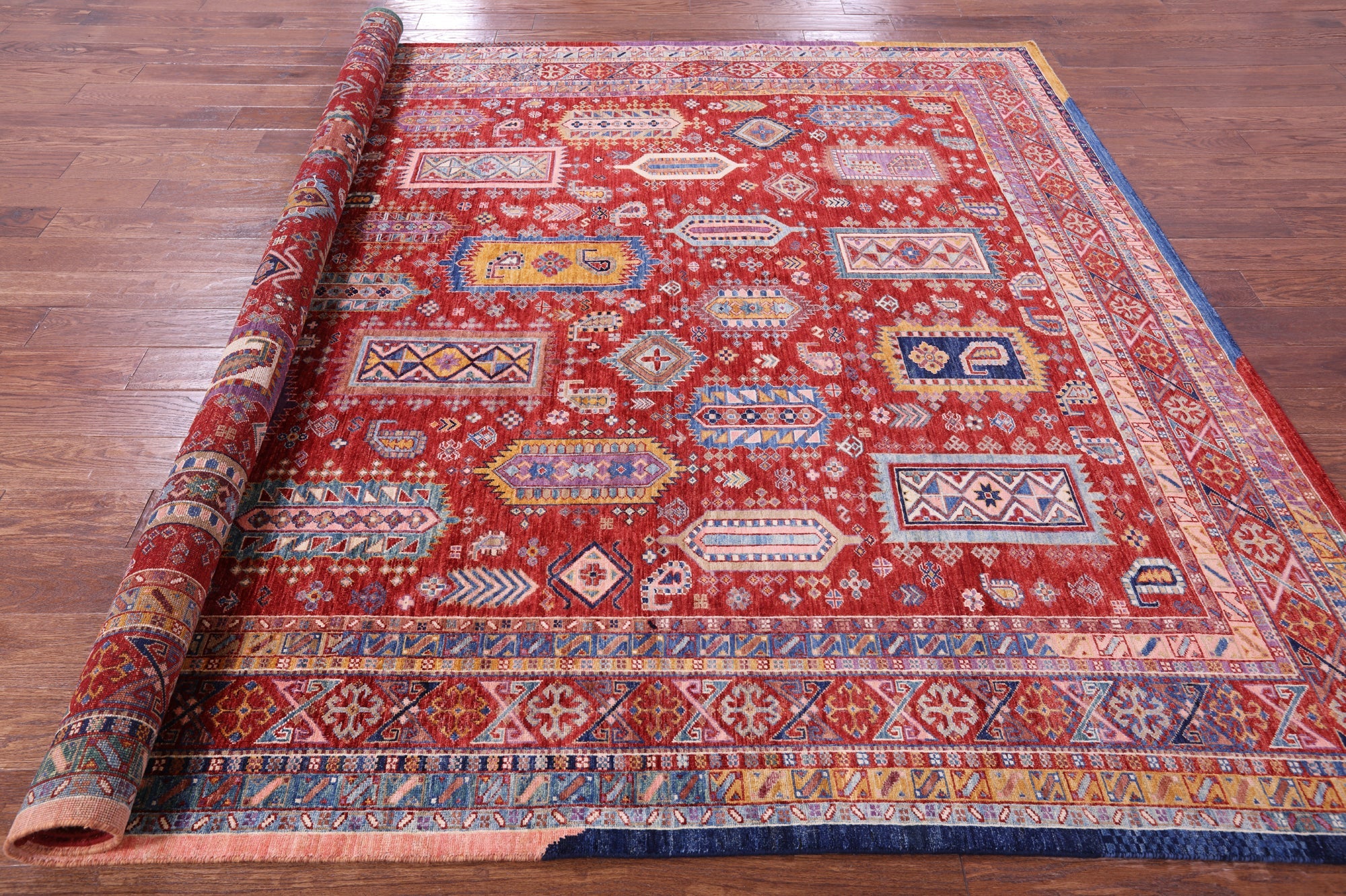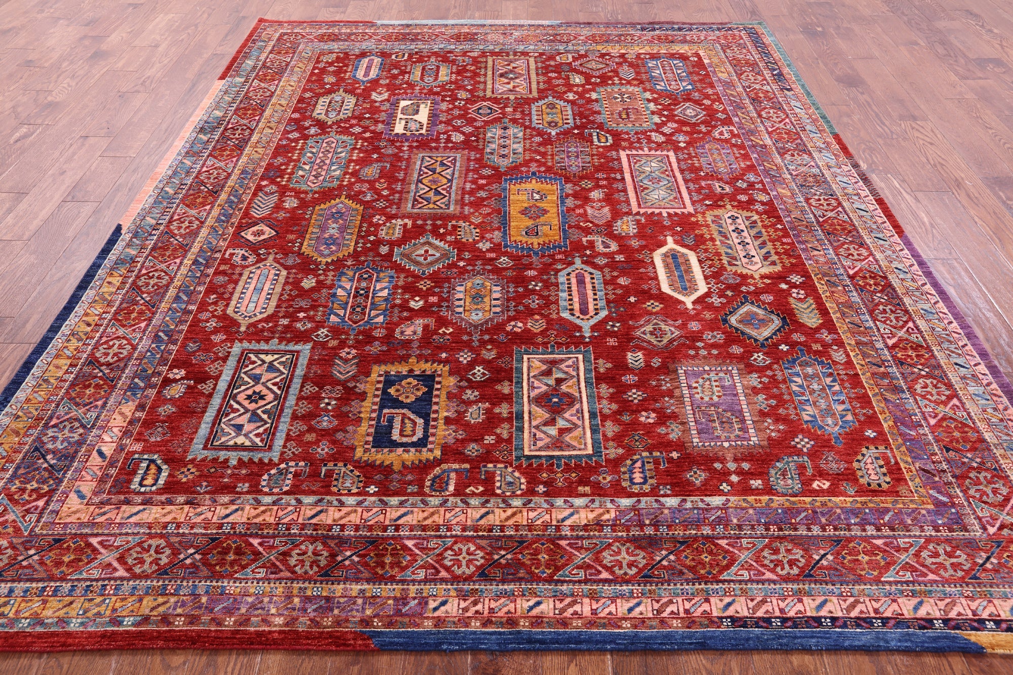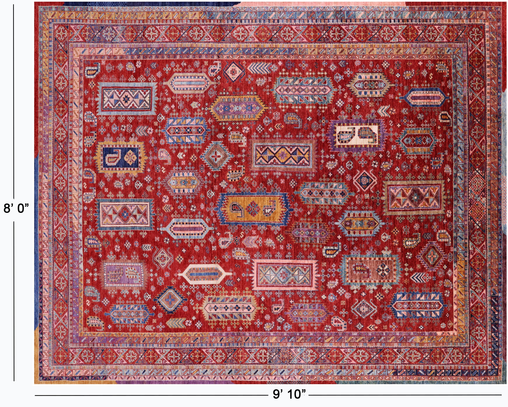 Red 8' 0" X 9' 10" Tribal Fine Serapi Hand Knotted Wool Rug - Q20874
