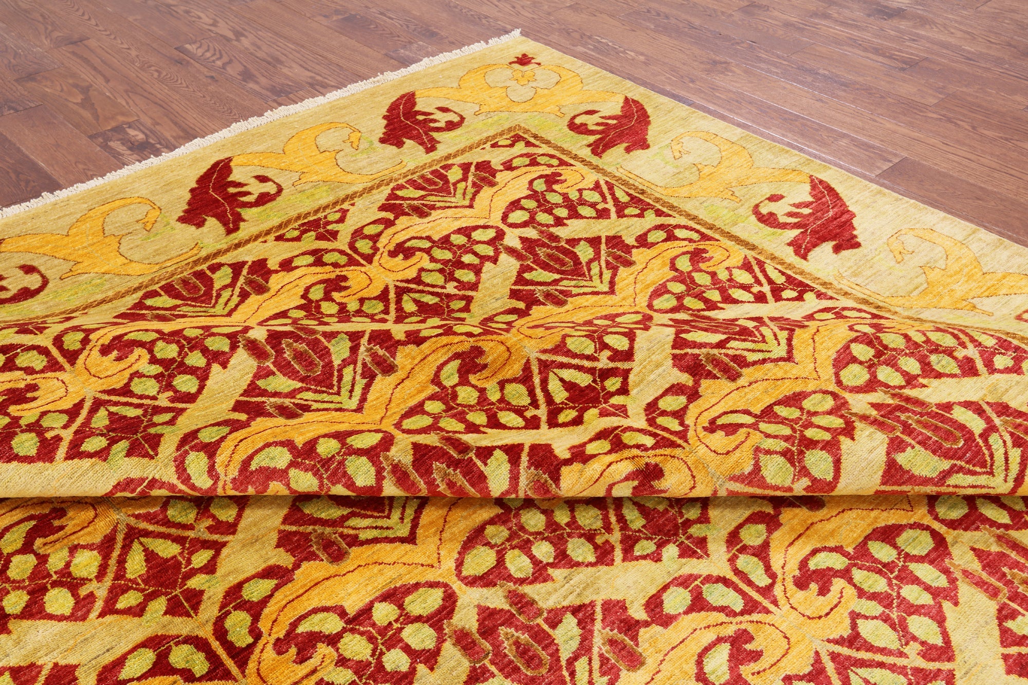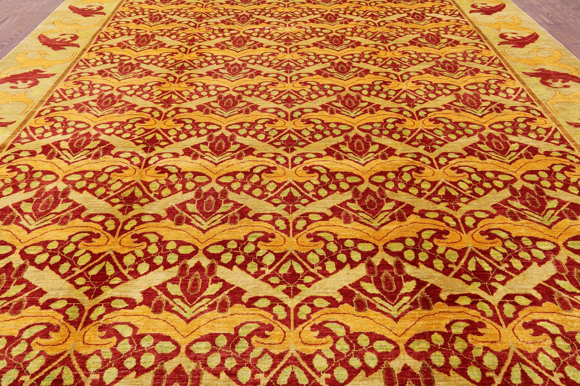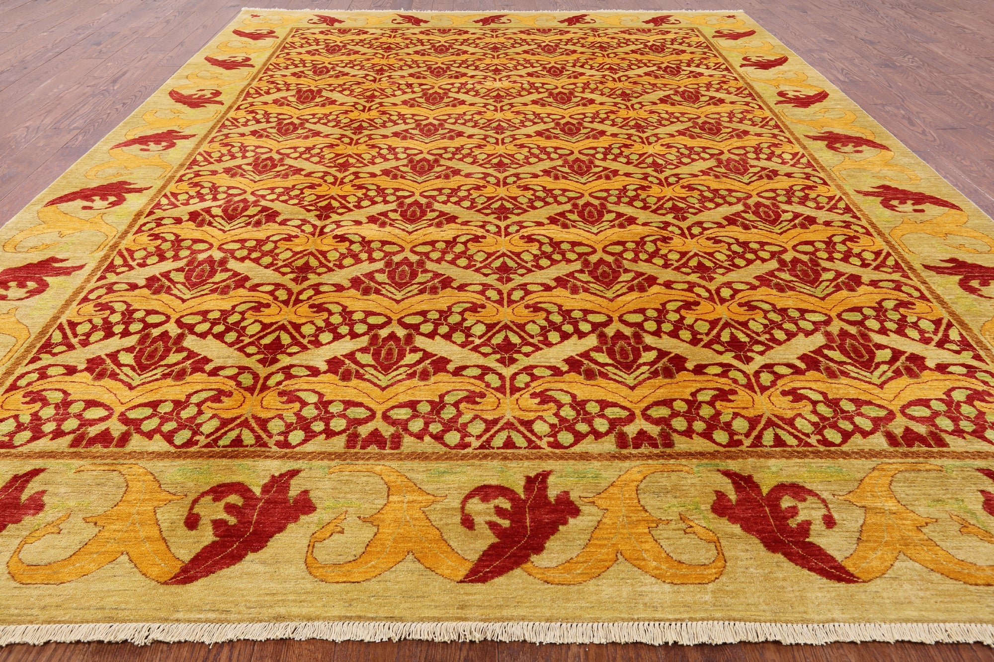 William Morris design are part of arts and crafts movement often including natural forms. These 19th and early 20th century designs are distinctive for their stylized natural forms, their symmetry and their vibrant colors. William Morris patterns are based on nature such thistles, ginkgo leaves, willow trees and flowers. These modern hand knotted rugs are woven with high quality wool, silk or both.