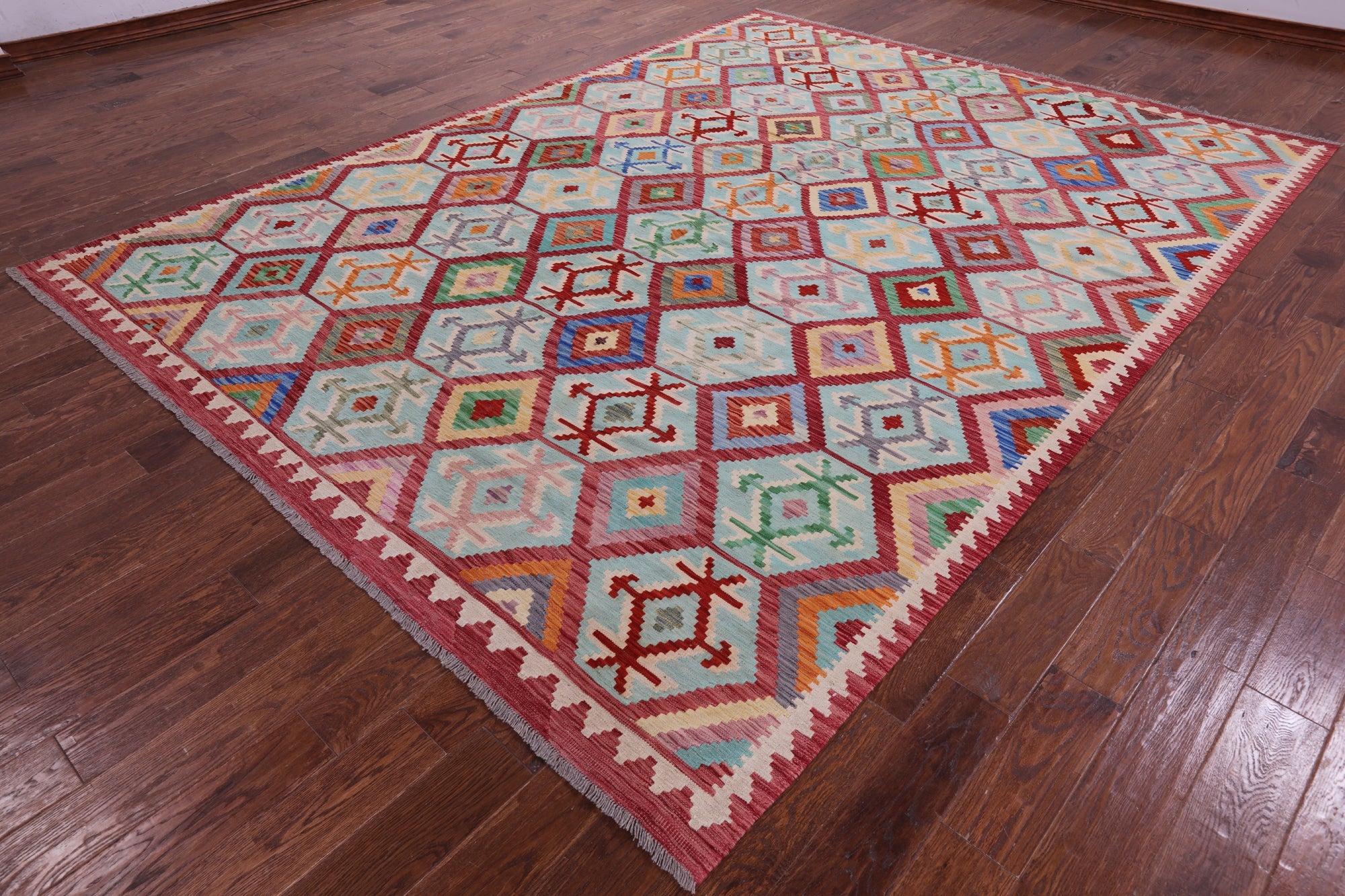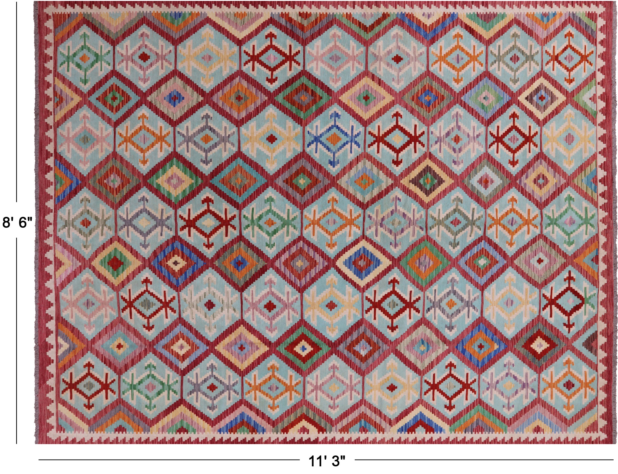 8' 6" X 11' 3" Reversible Wool On Wool Kilim Flat Weave Rug - Q17512