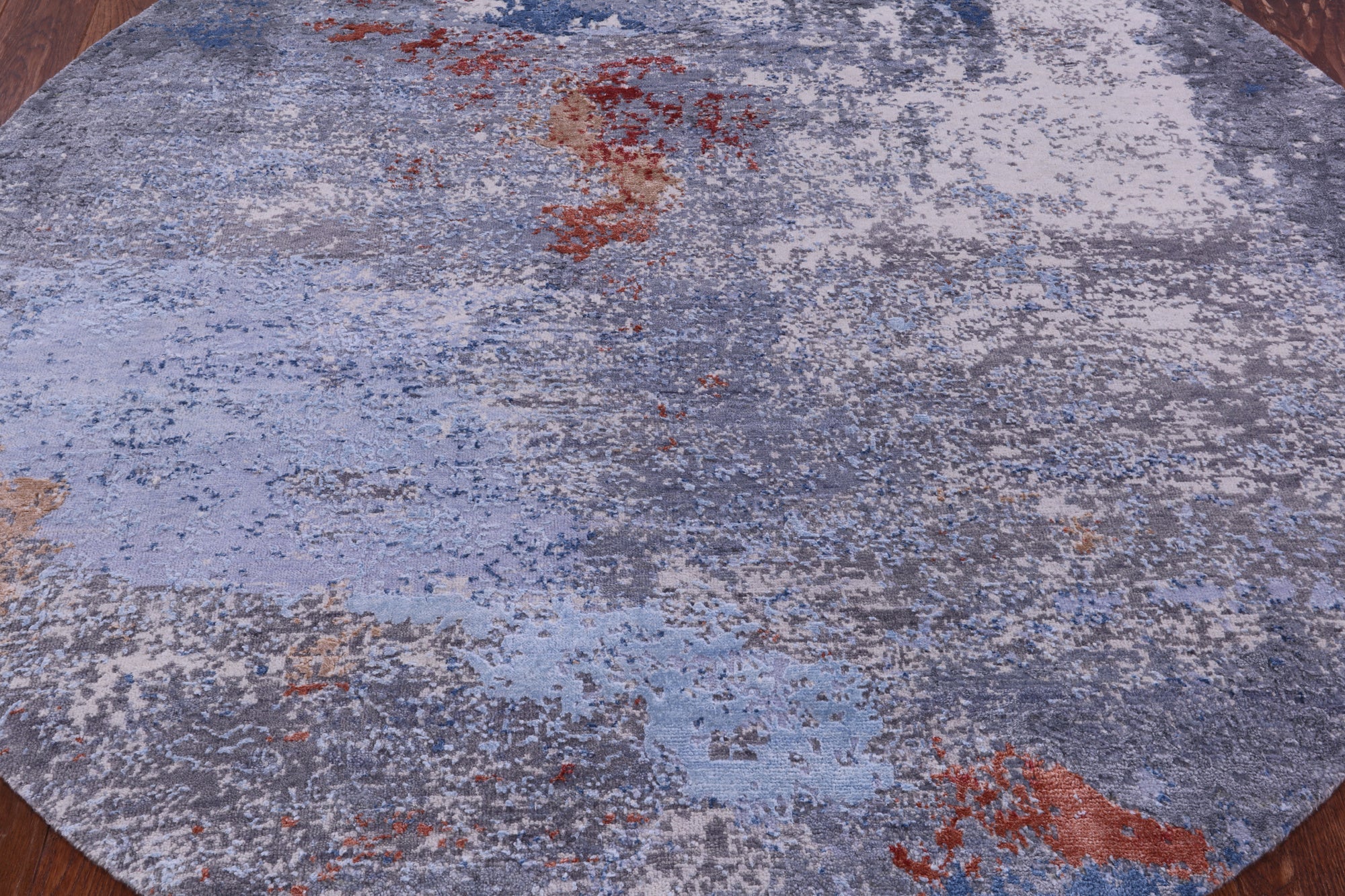 6' Round Wool & Silk Modern Abstract Hand Knotted Rug - Q21364 is backordered and will ship as soon as it is back in stock.