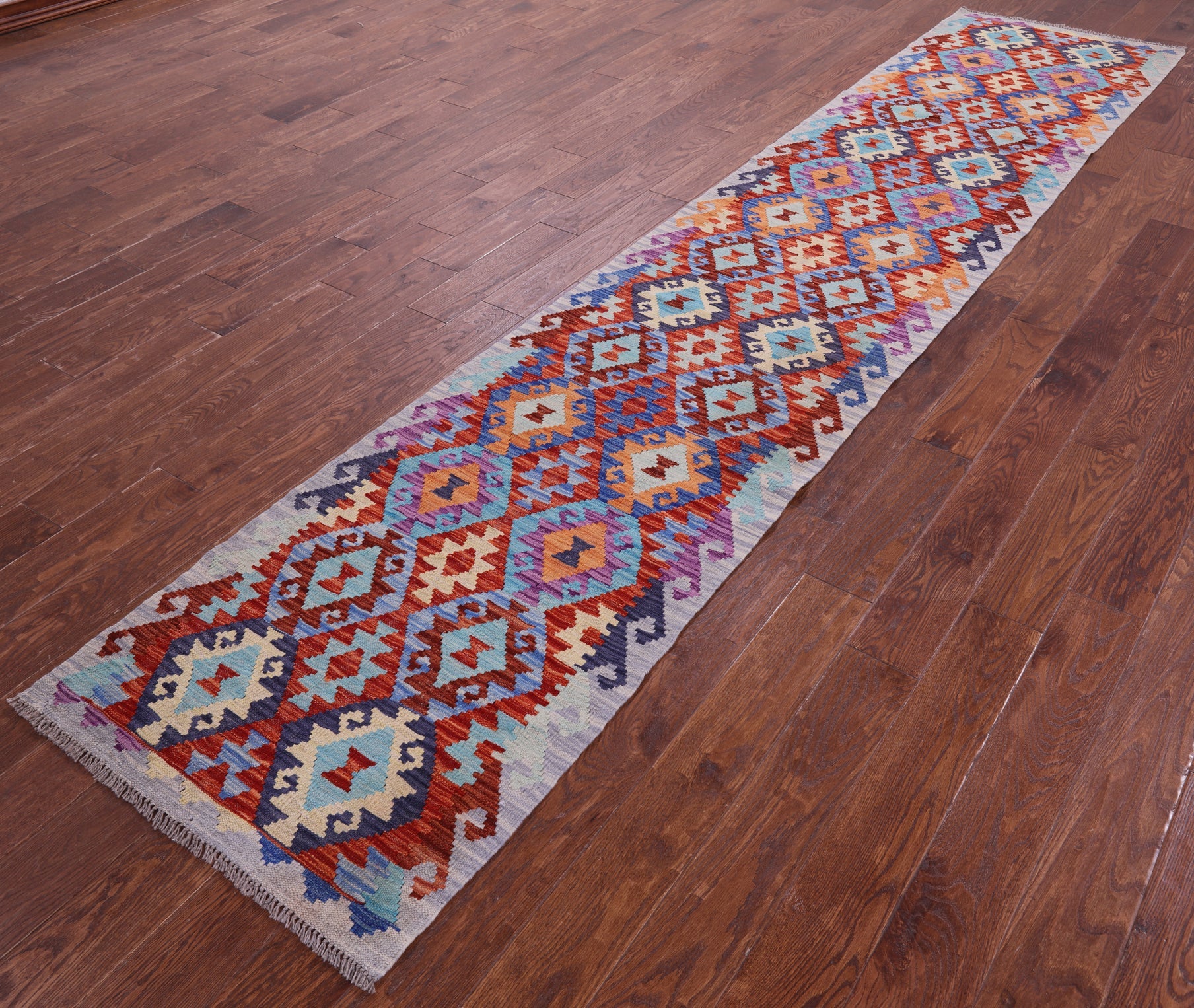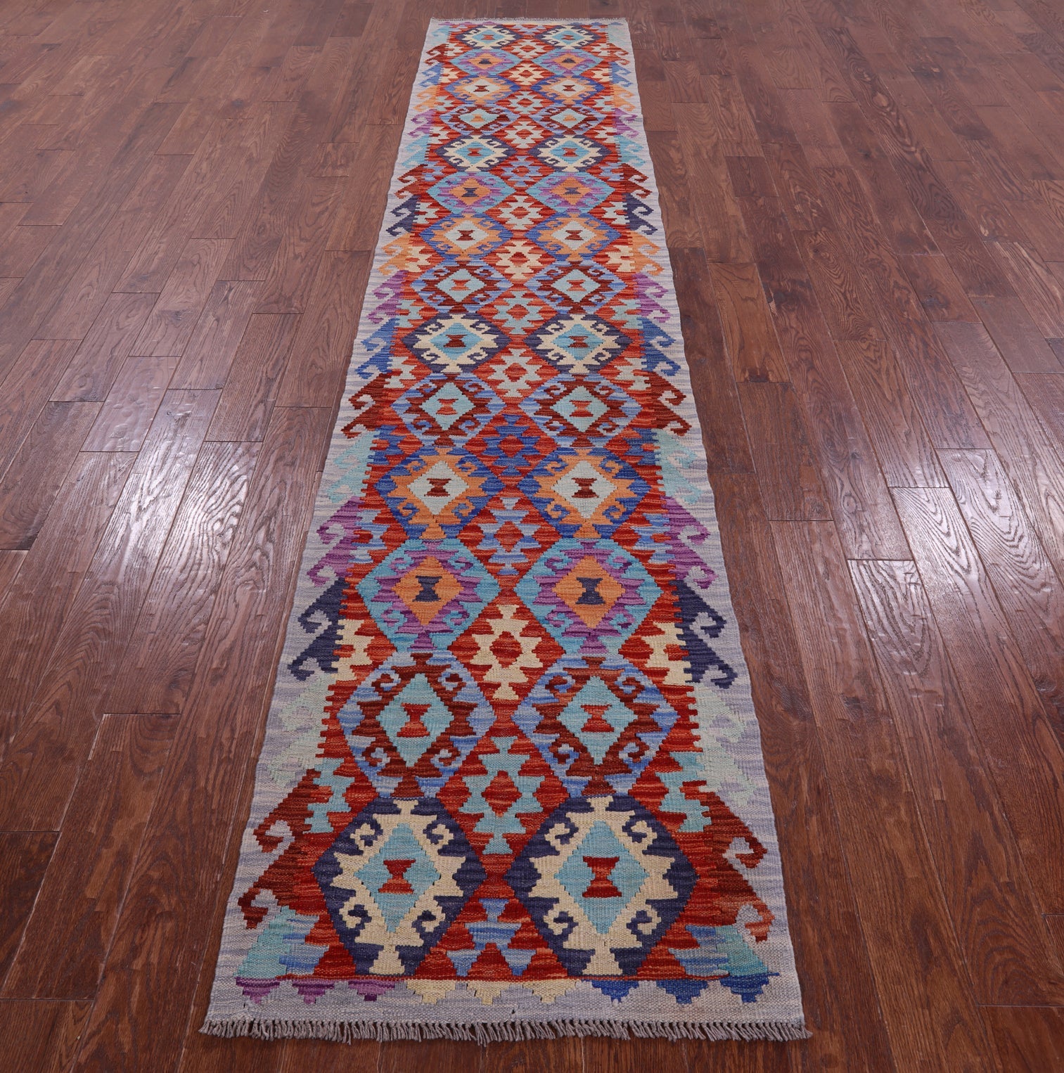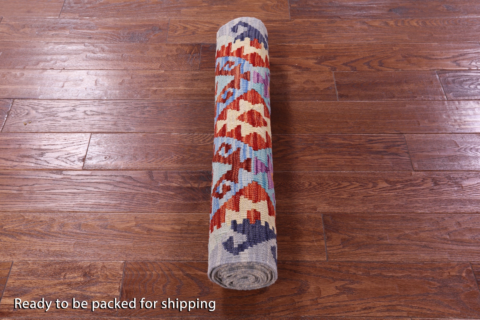 2' 7" X 12' 8" Runner Reversible Kilim Flat Weave Wool On Wool Rug - Q17522 is backordered and will ship as soon as it is back in stock.
