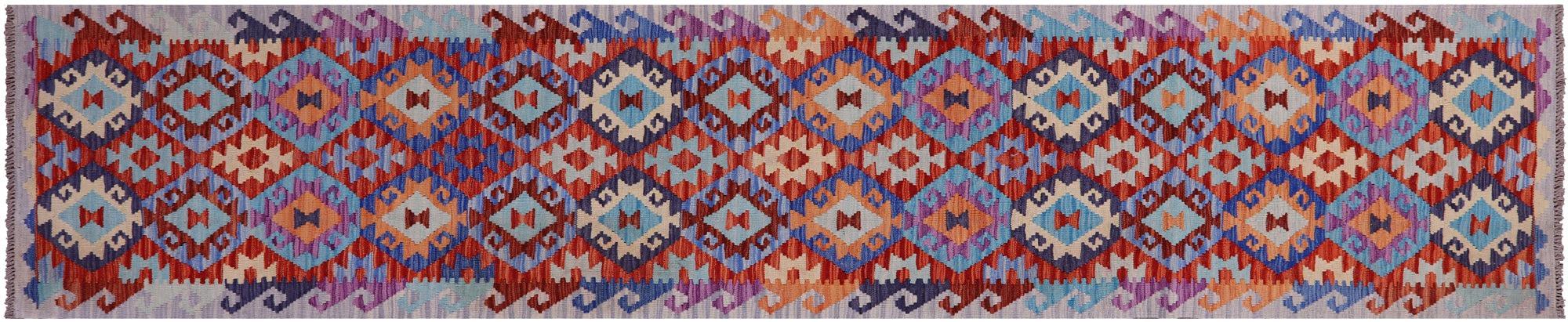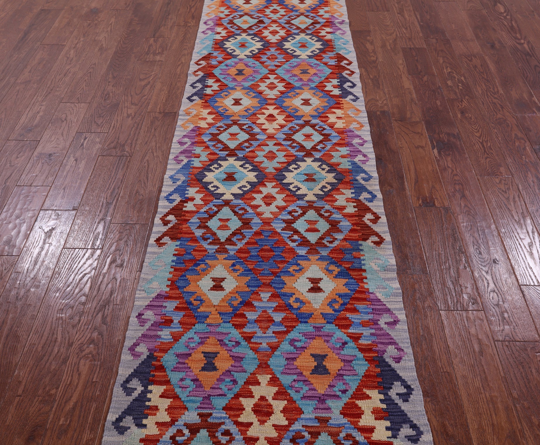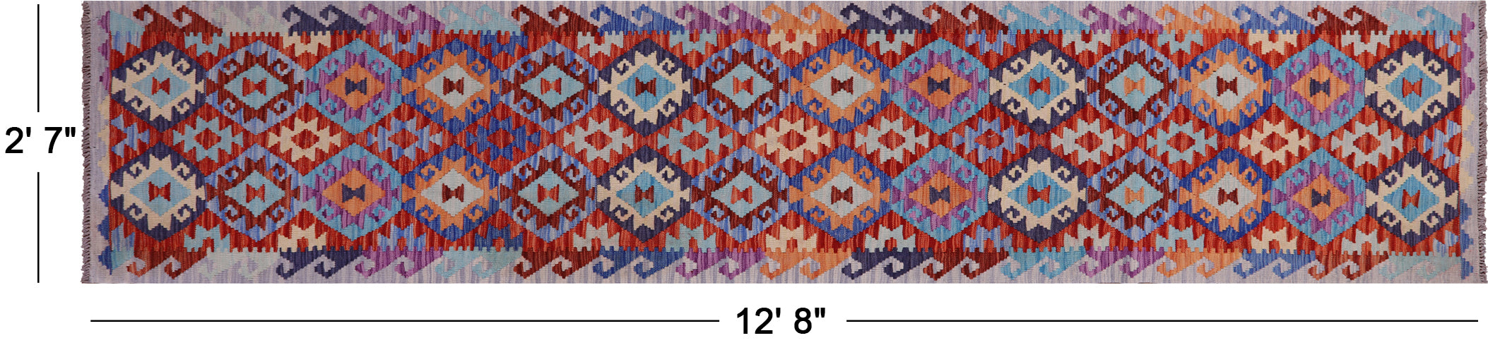 2' 7" X 12' 8" Runner Reversible Kilim Flat Weave Wool On Wool Rug - Q17522