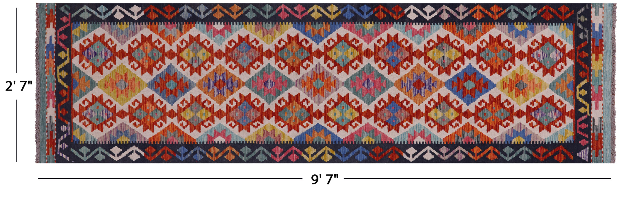Runner Reversible Kilim Flat Weave Wool On Wool Rug 2' 7" X 9' 7" - Q18127