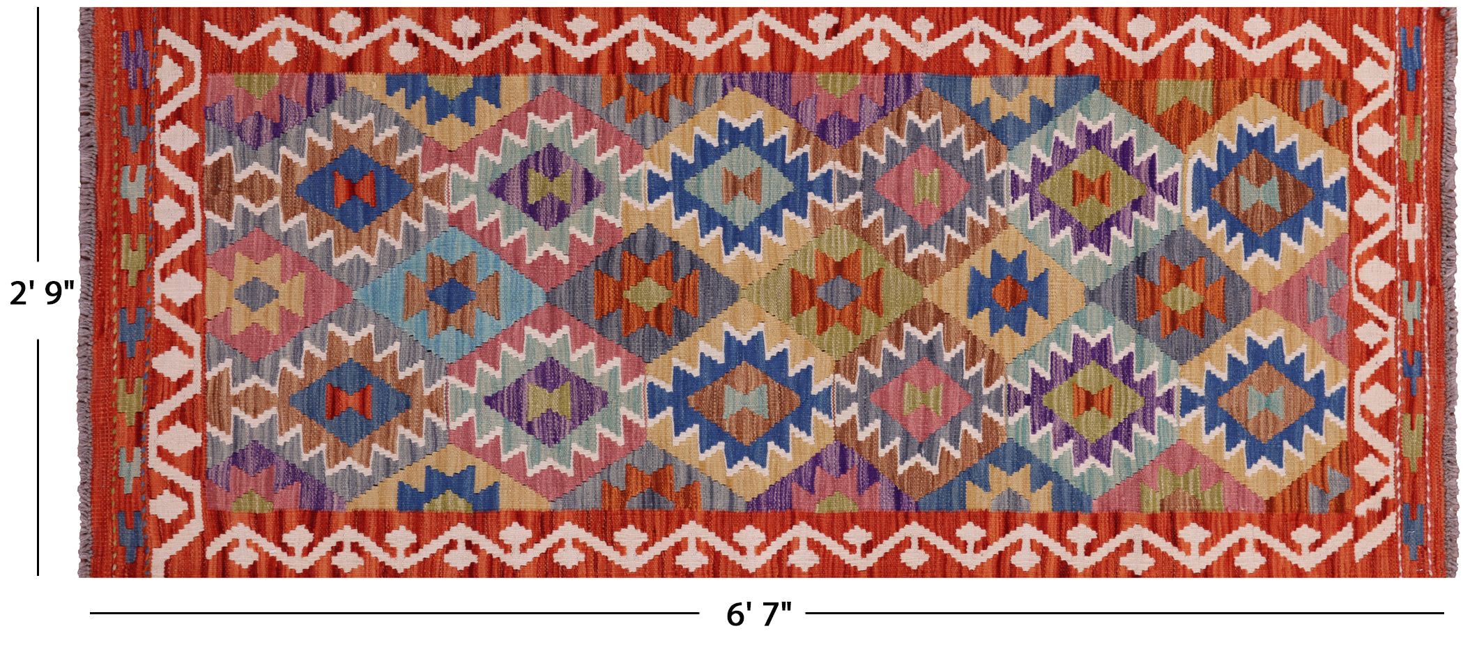 Runner Reversible Wool On Wool Kilim Flat Weave Rug 2' 9" X 6' 7" - Q17975