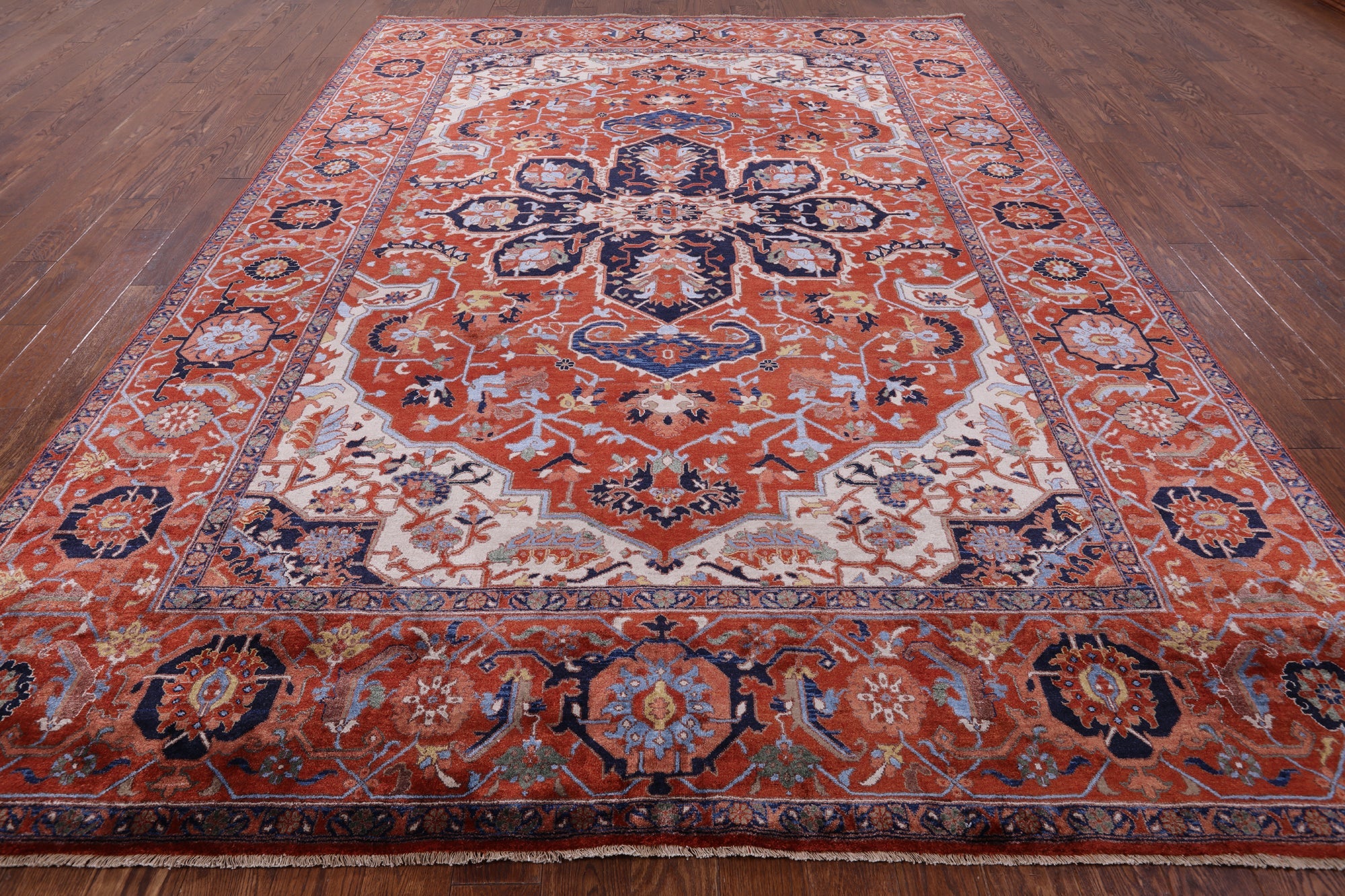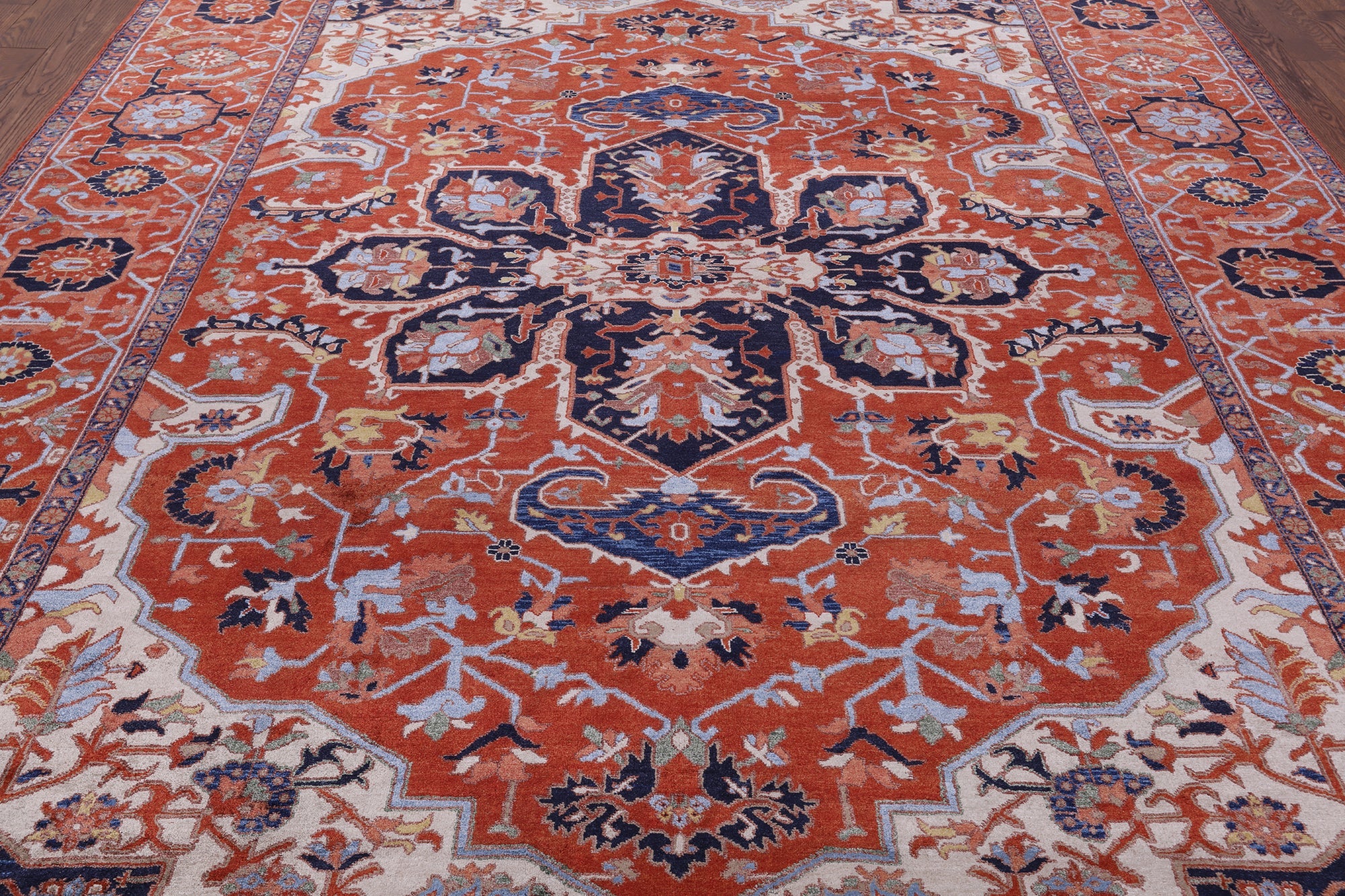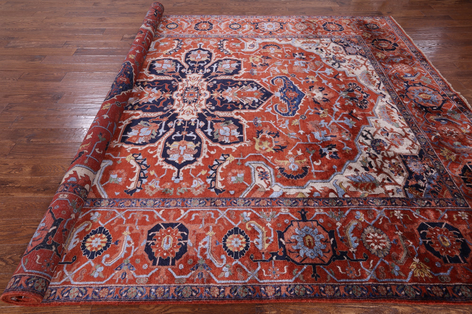 Rust 8' 11" X 12' 0" Hand Knotted Silk Persian Serapi Rug - Q4220 is backordered and will ship as soon as it is back in stock.