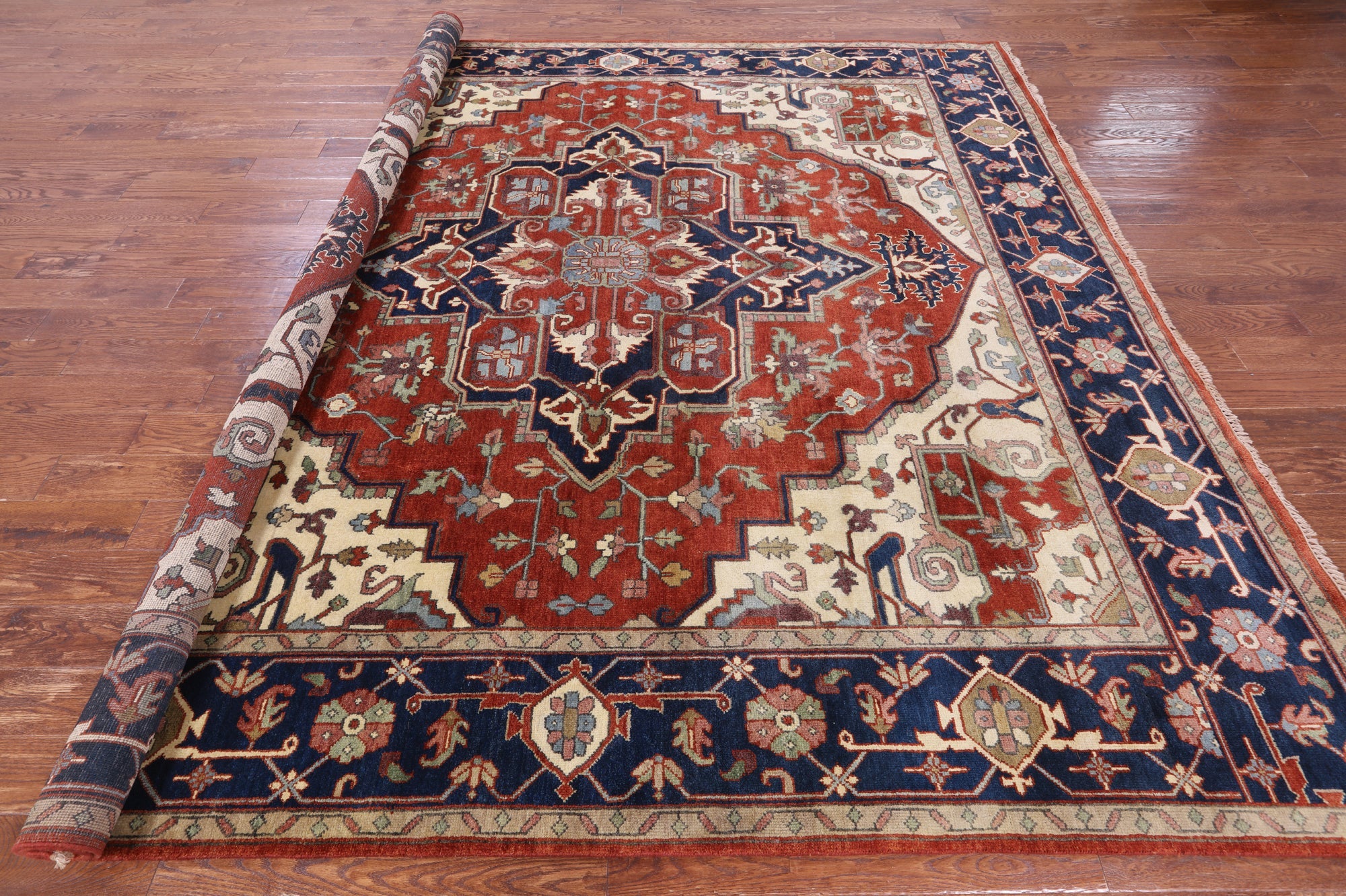 Heriz, Serapi rugs are well known for their bold and angular designs. Many being symmetric, they withhold boldly done geometric and floral-inspired shapes. These shapes are brought out with rich reds, blues, greens, and yellows contrasted against ivory. Heriz, Serapi rugs are very elegant and durable, perfect for a variety of different rooms and spaces within a home.