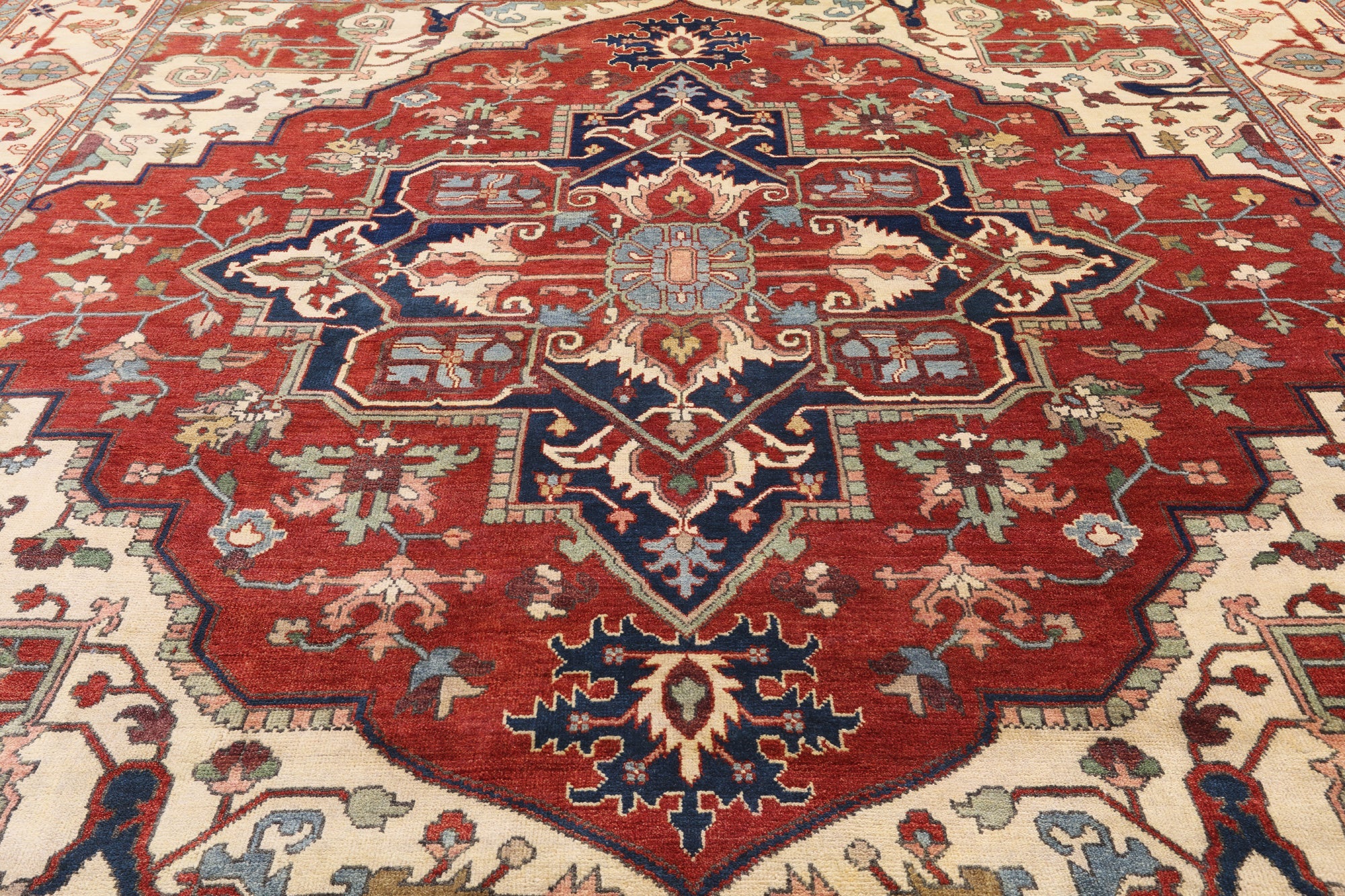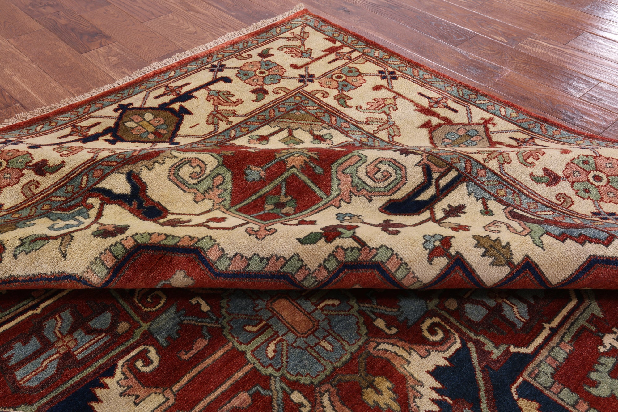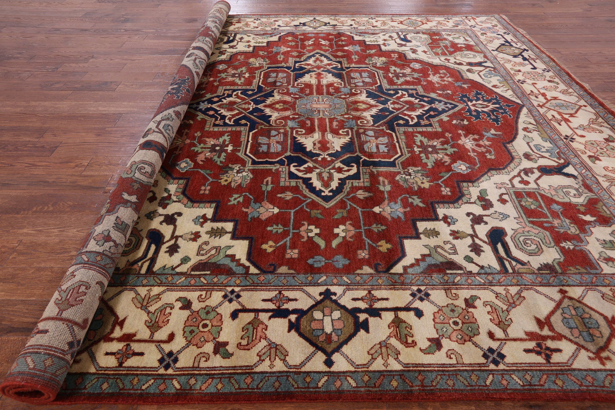 Heriz/Serapi rugs are among the most desirable rugs, due to their durable nature under heavy wear and tear. Weavers of Heriz/Serapi rugs often portray geometric patterns or medallions in their designs. They often have an antique style, and come in a vast variety of colors. Heriz/Serapi rugs are hand knotted from thick piles of wool, which gives them a soft plush feel.