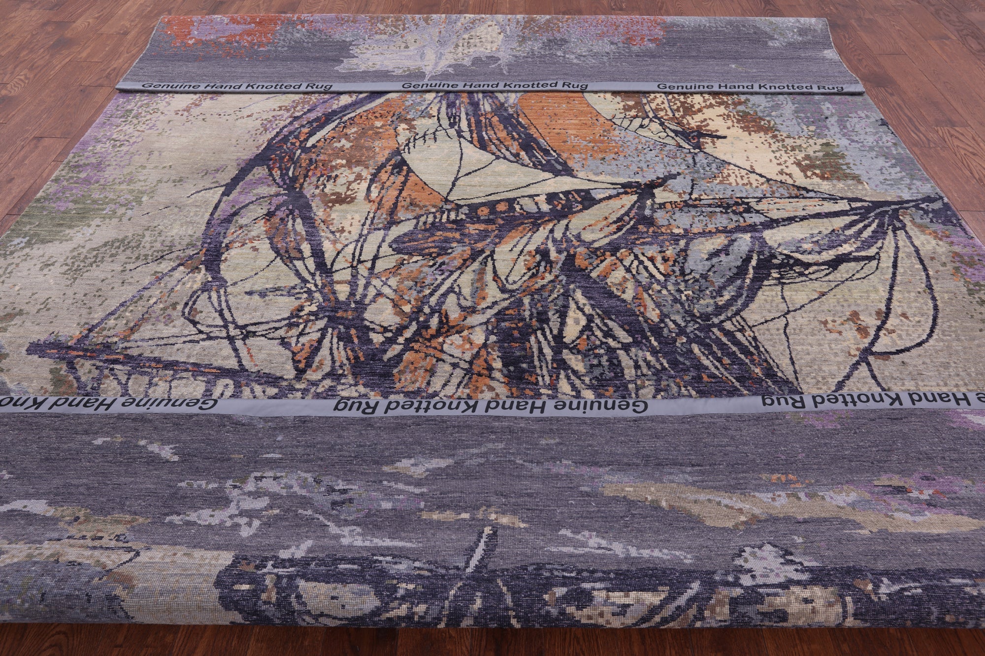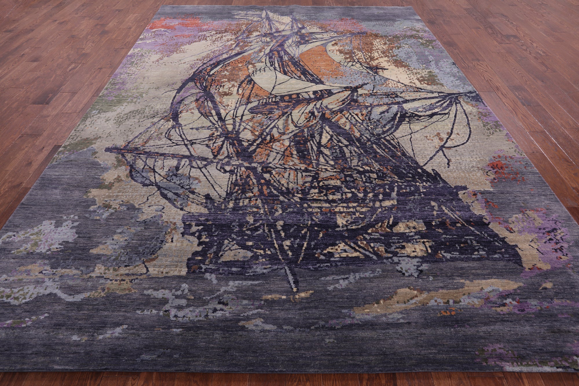9' 0" X 12' 0" Sailing Ship Hand Knotted Wool & Silk Rug - Q8648 is backordered and will ship as soon as it is back in stock.