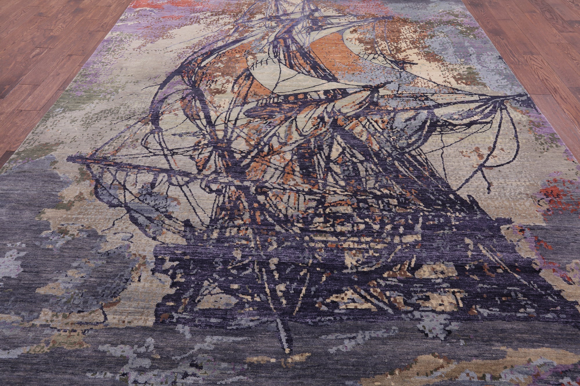 9' 0" X 12' 0" Sailing Ship Hand Knotted Wool & Silk Rug - Q8648