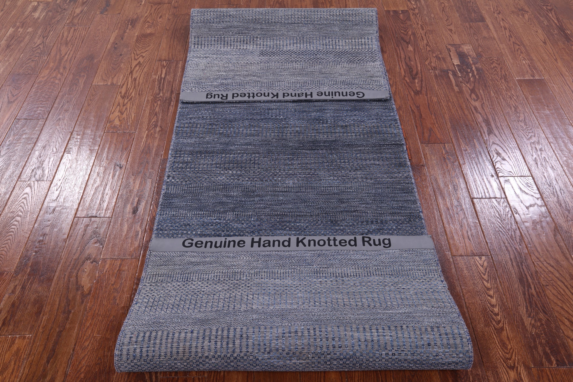 3' 0" X 10' 2" Savannah Grass Hand Knotted Wool & Silk Runner Rug - Q11949