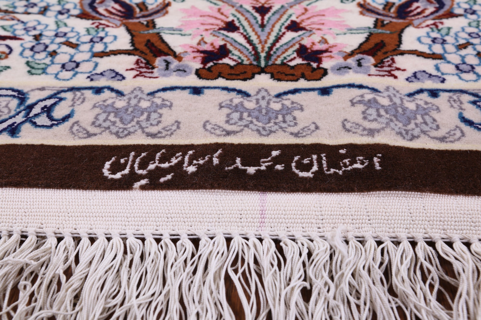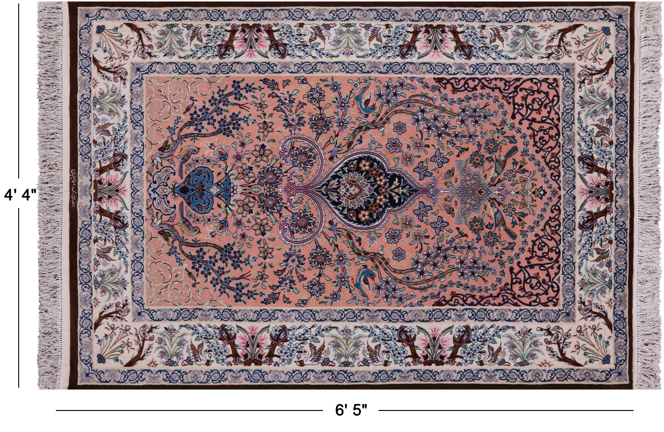 Signed Persian Isfahan Handmade Wool & Silk Area Rug 4' 4" X 6' 5" - SA2771