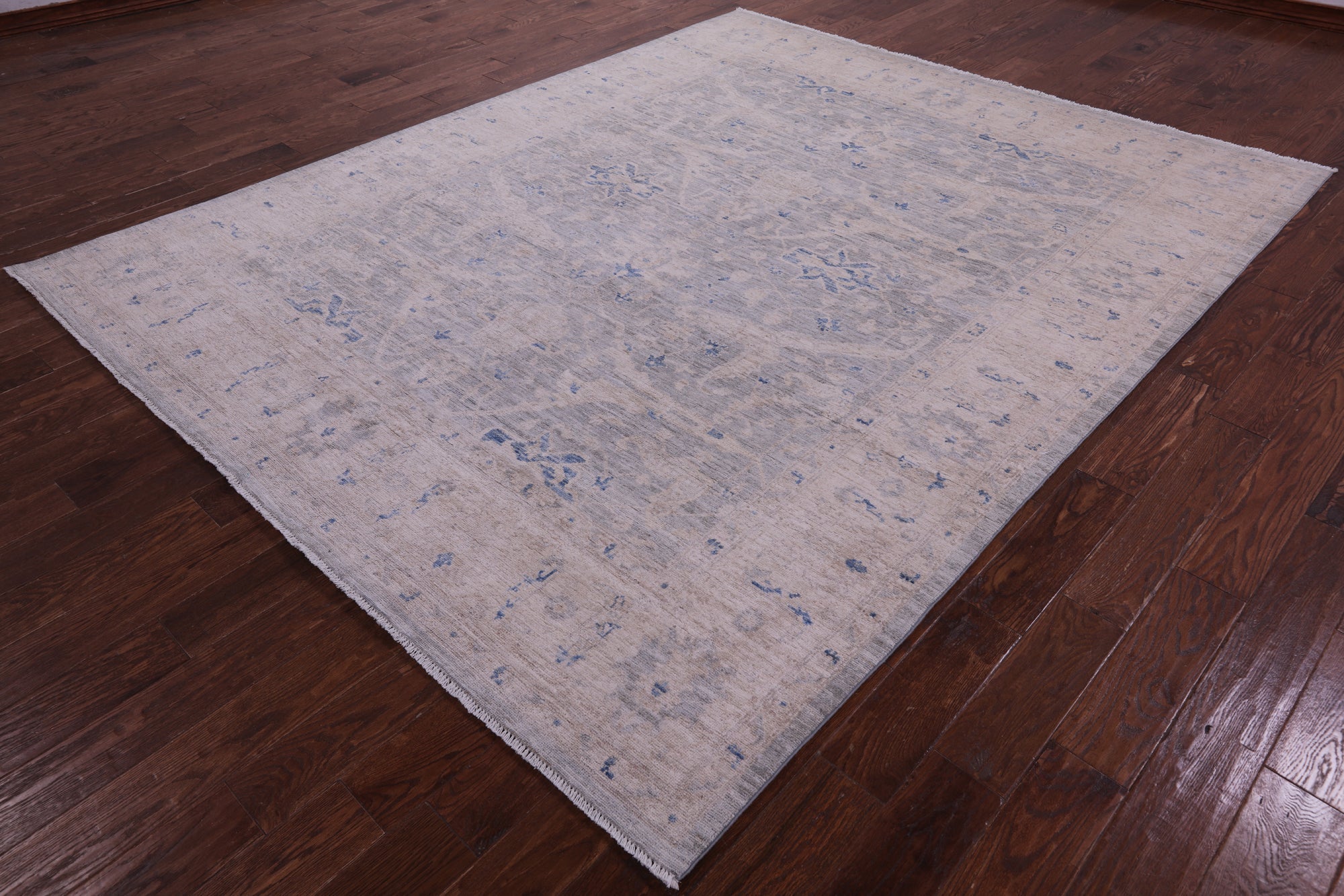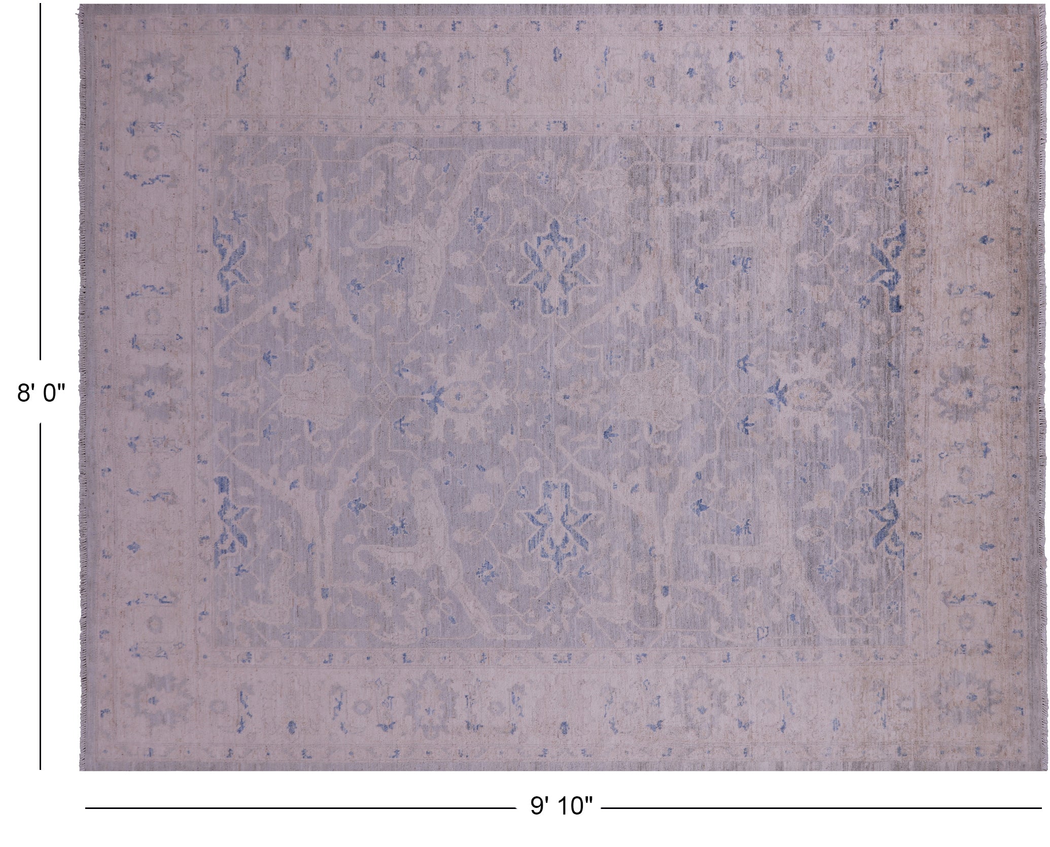 Silver Turkish Oushak Washed Out Handmade Wool Rug 8' 0" X 9' 10" - Q21993