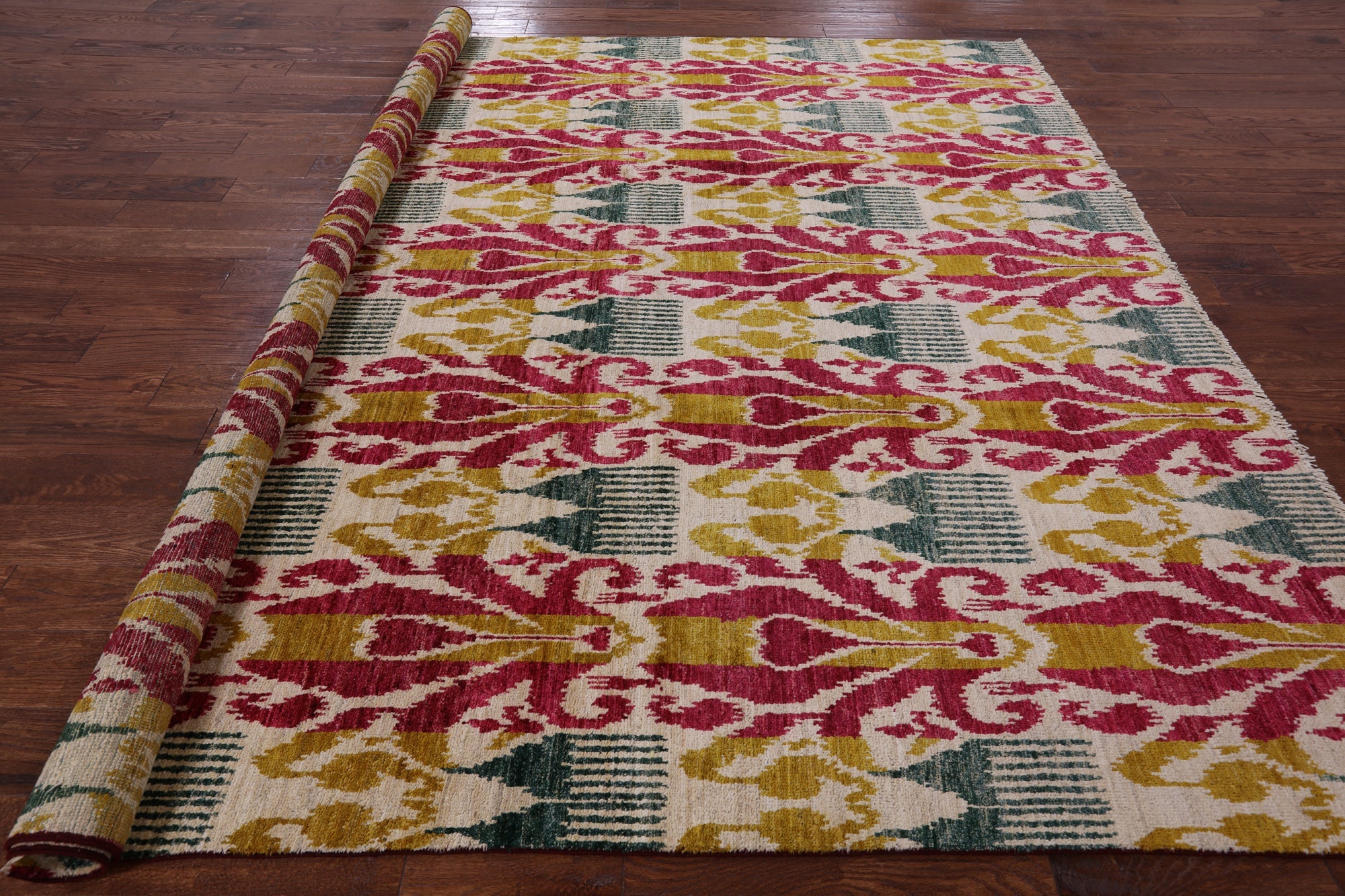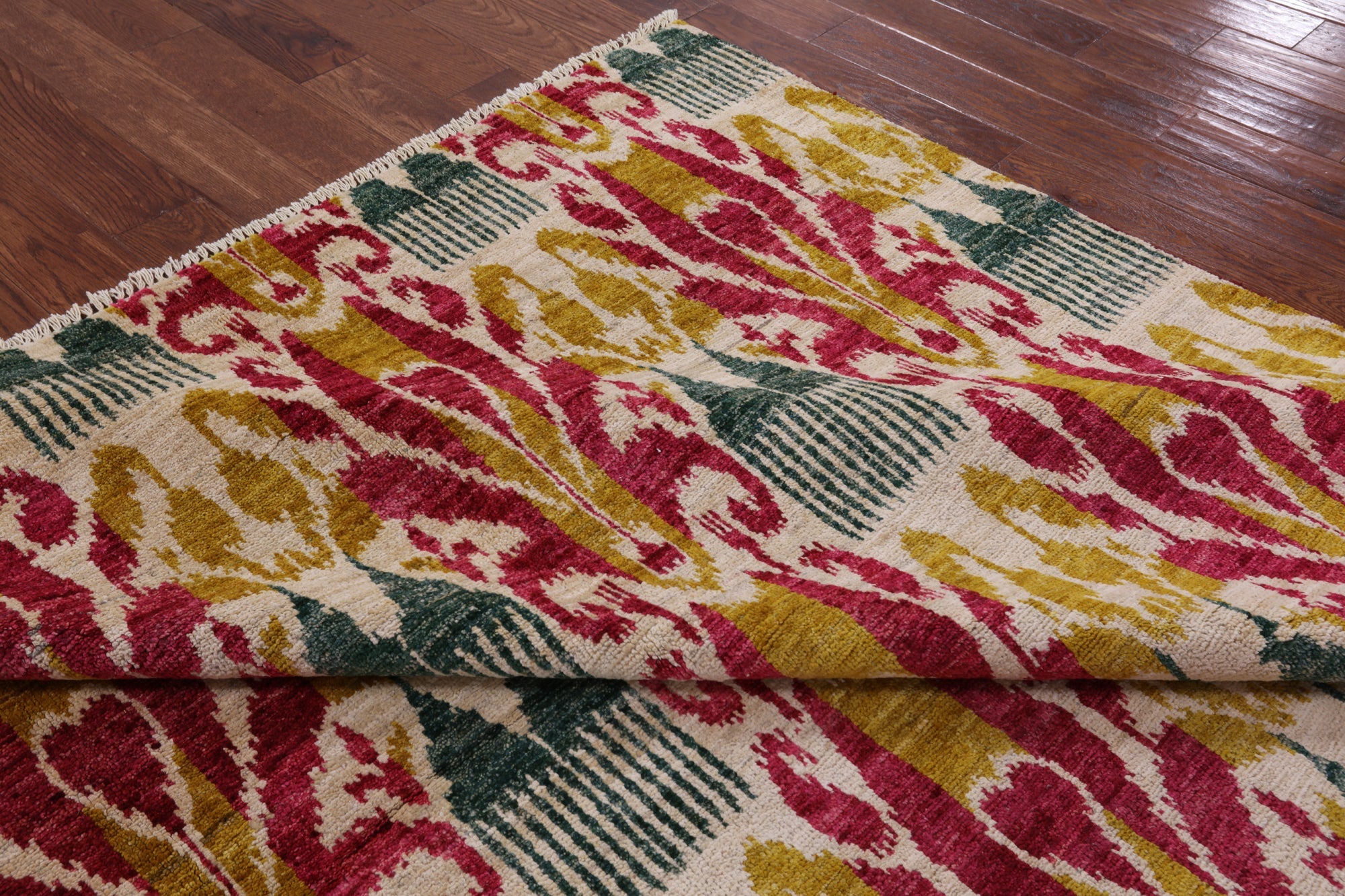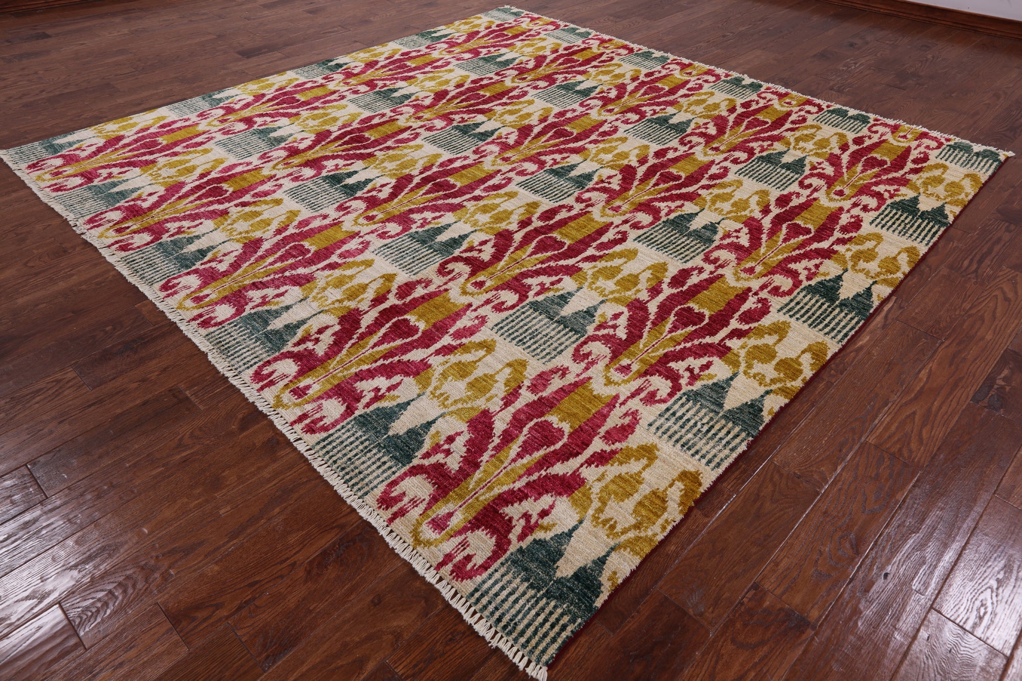 9' Square Hand Knotted Ikat Area Rug - P6071 is backordered and will ship as soon as it is back in stock.